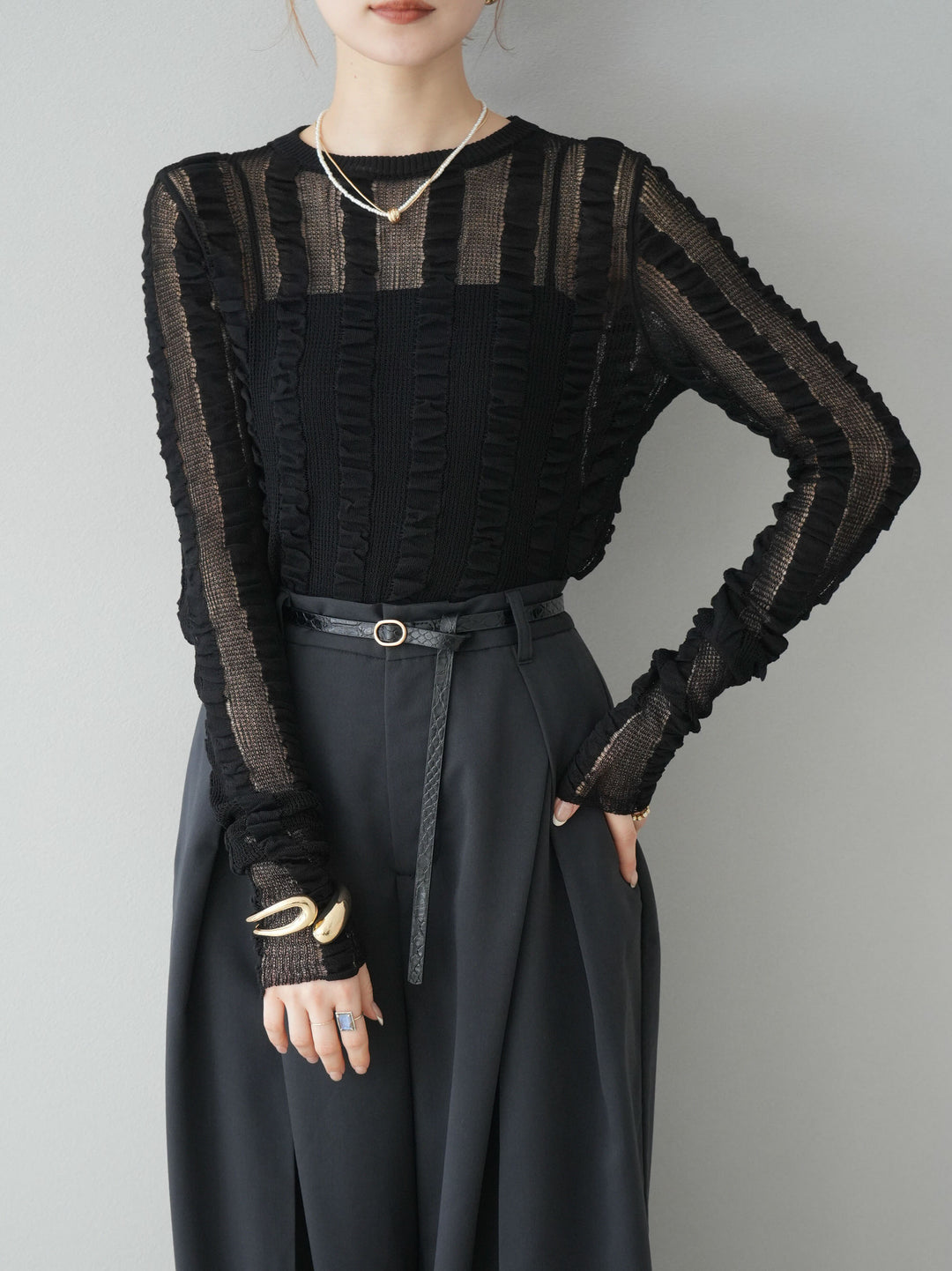 [予約]シアージャガードシャーリングブラウス/ブラック