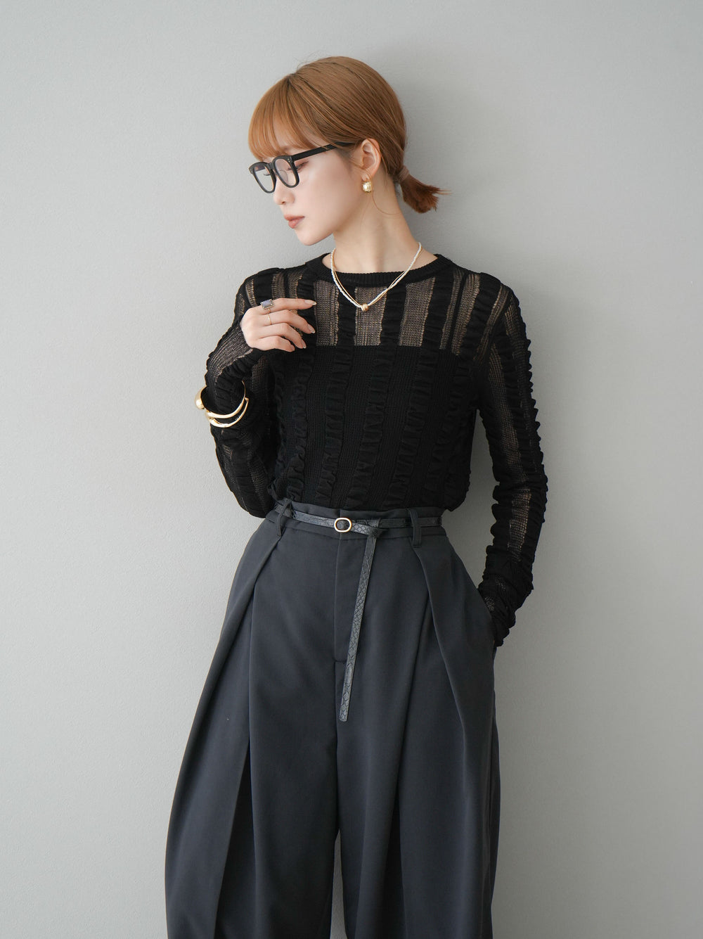 [予約]シアージャガードタックワイドパンツ/ブラック