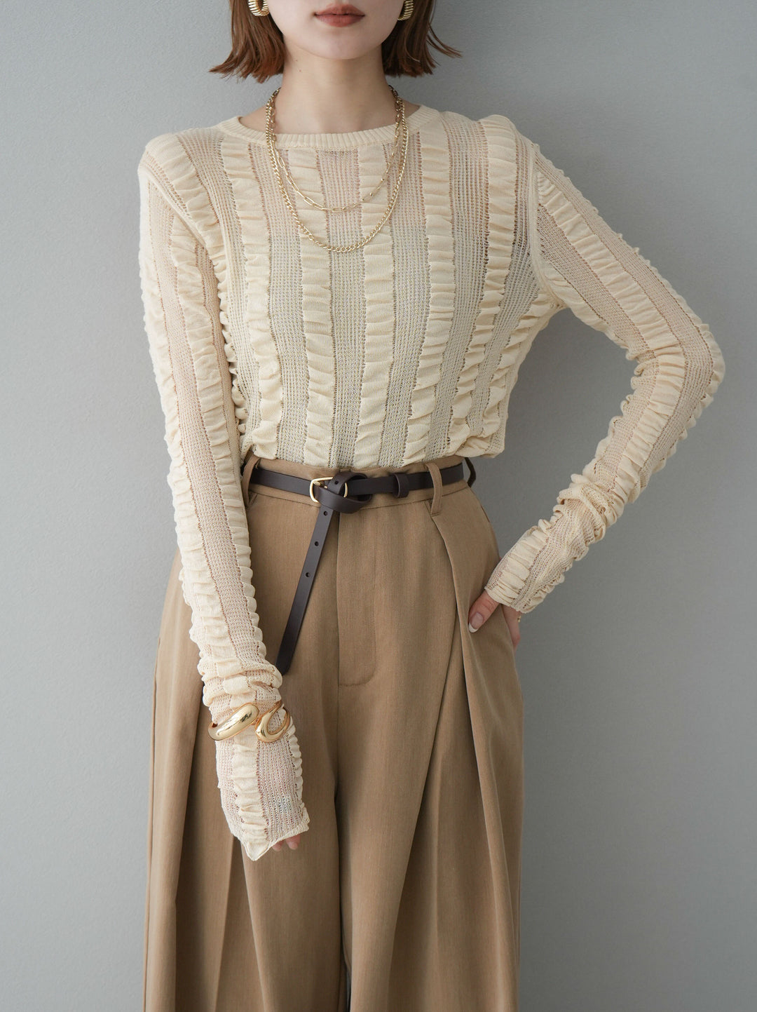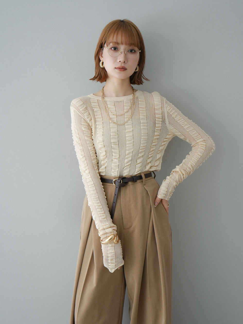 [予約]シアージャガードシャーリングブラウス/アイボリー