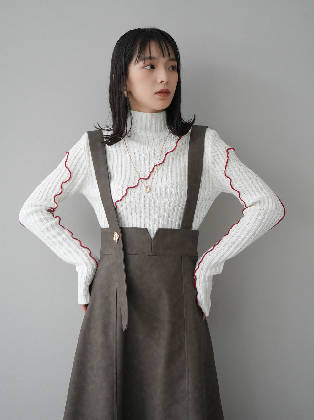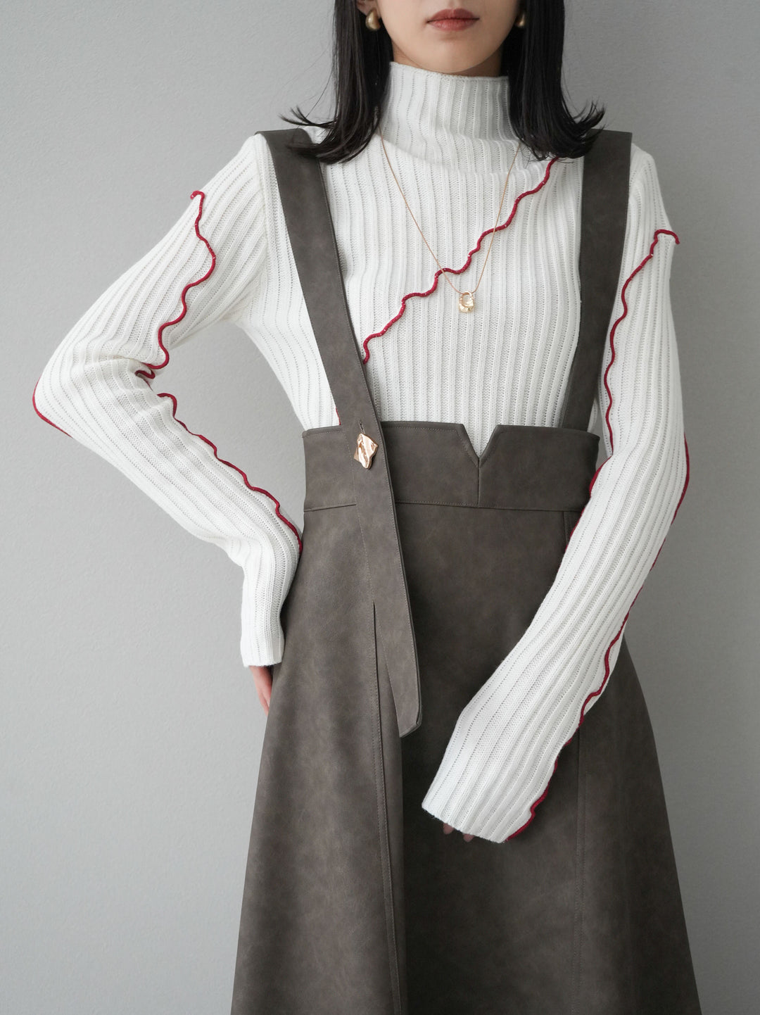 [予約]配色メローハイネックニットトップス/アイボリー