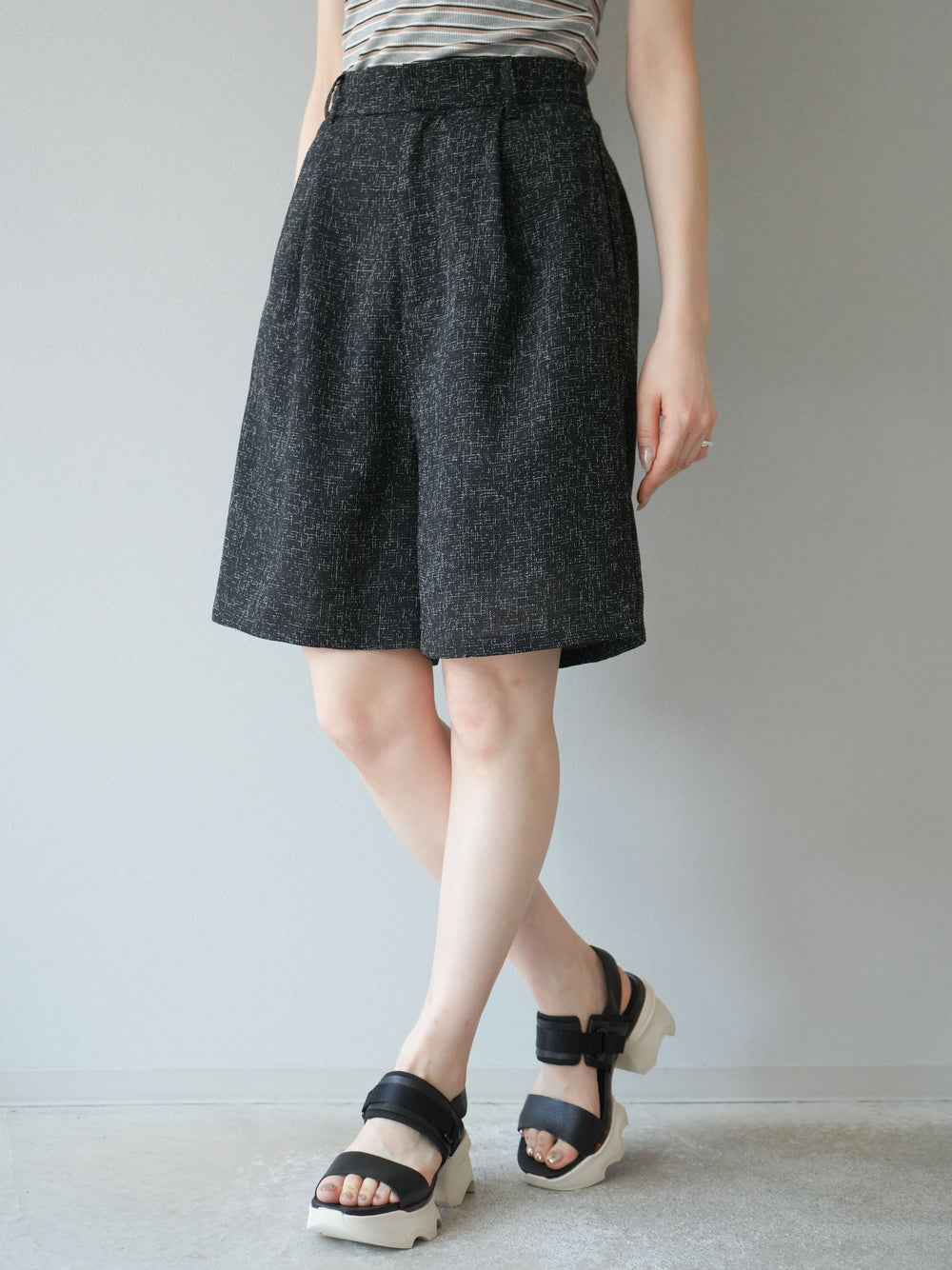 [予約]ベルト付スウェットワイドパンツ/black
