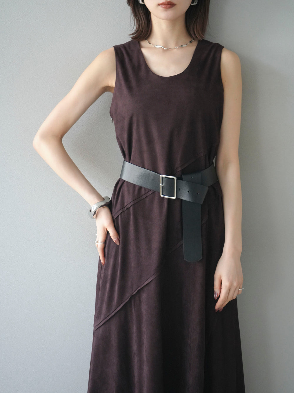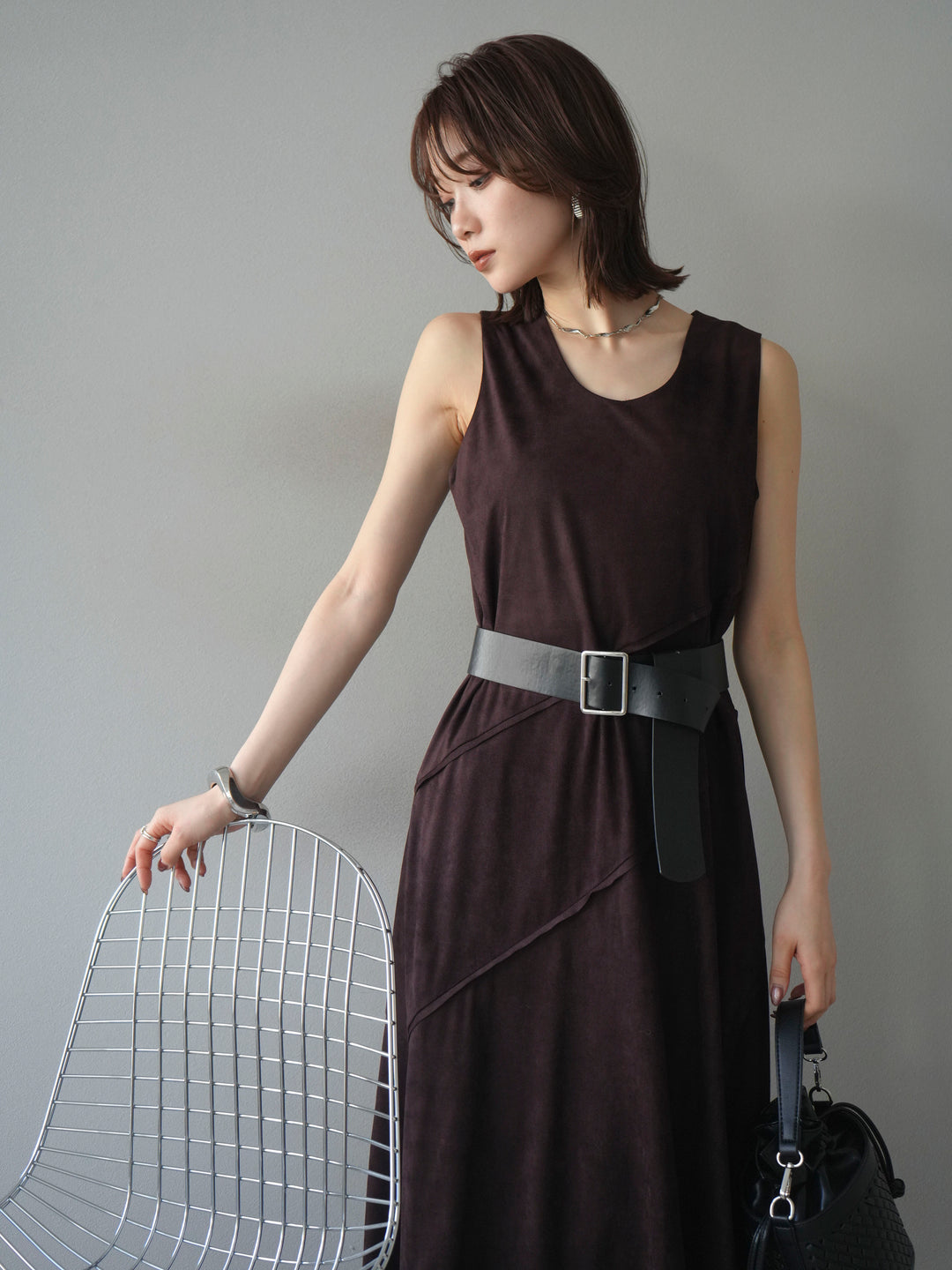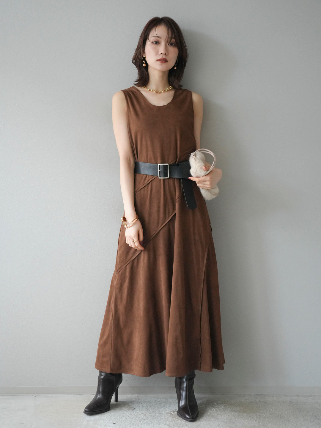 [予約]スエードアウトシームデザインベルト付ワンピース/camel
