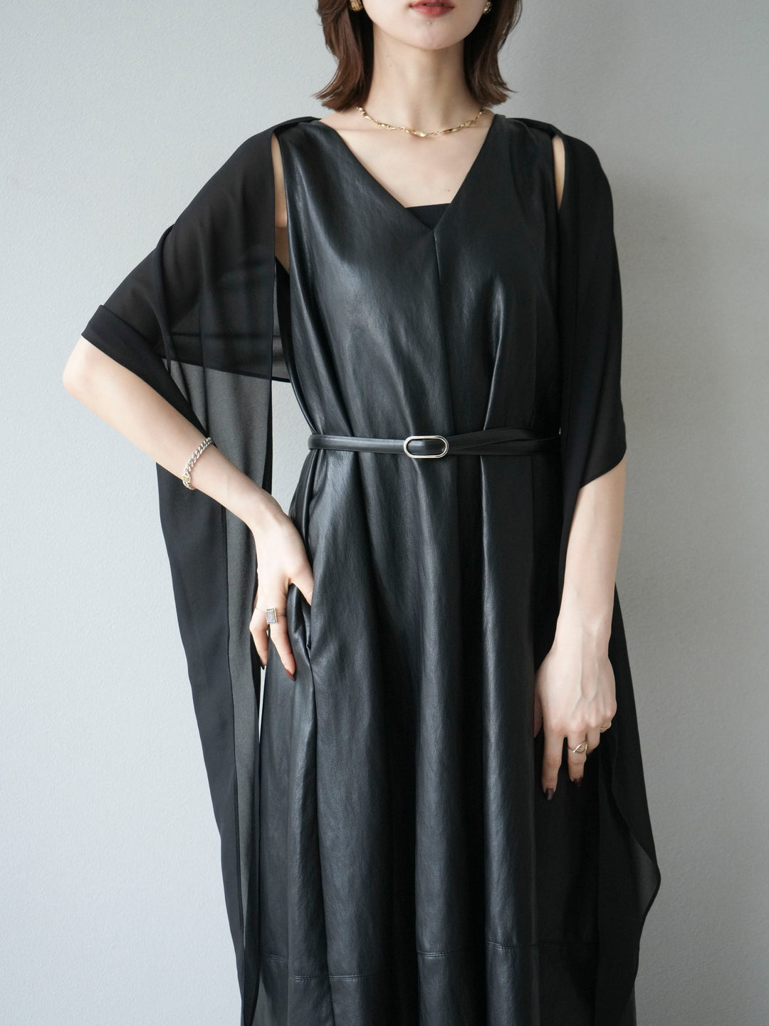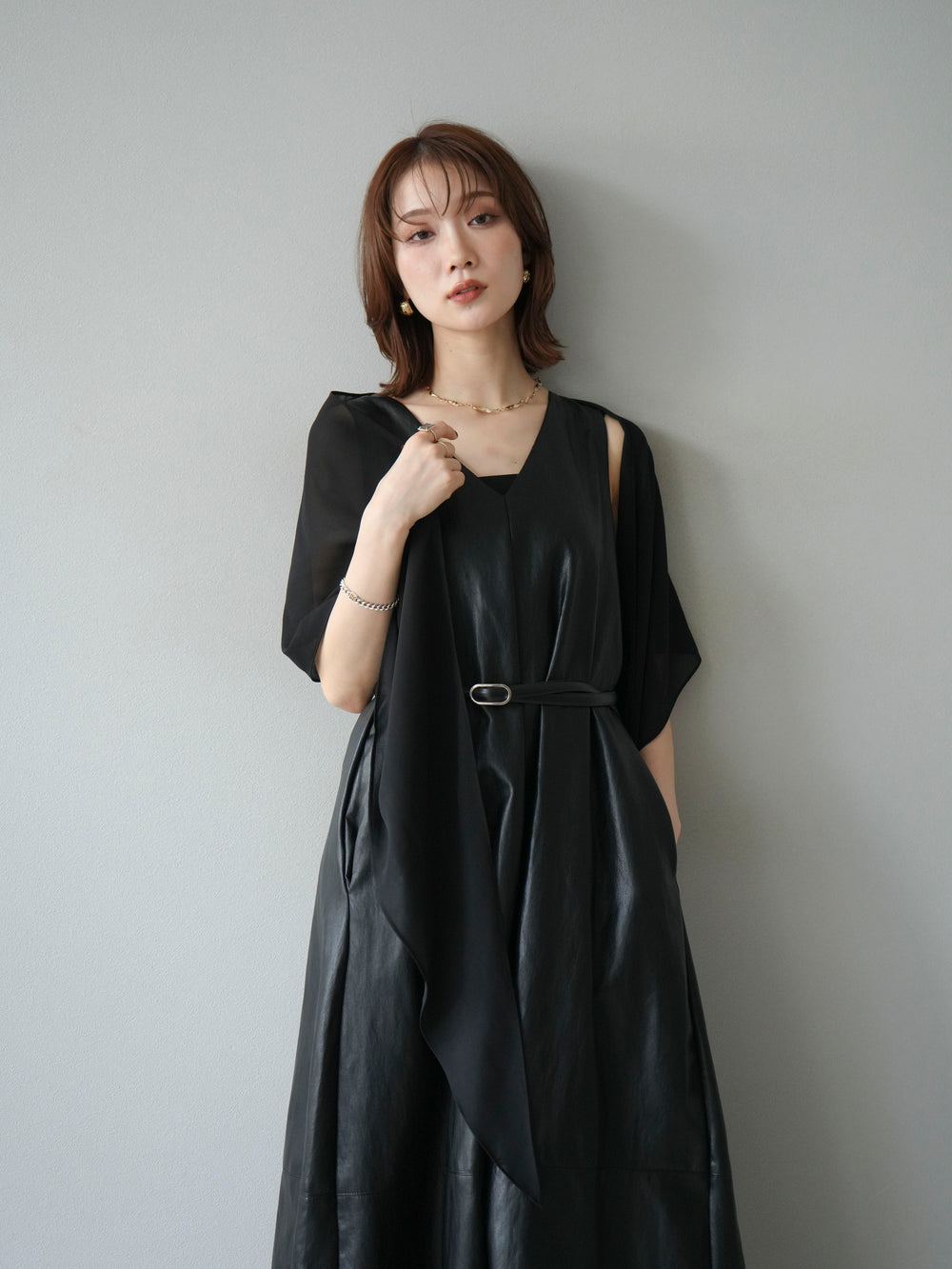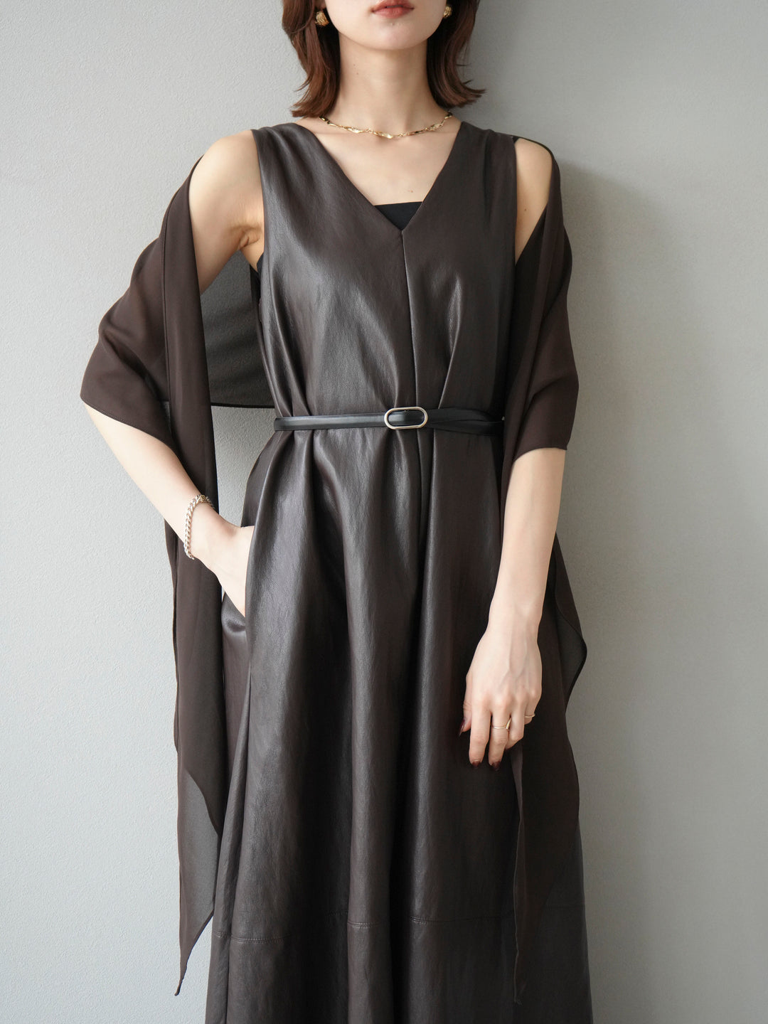 [予約]スエードアウトシームデザインベルト付ワンピース/camel