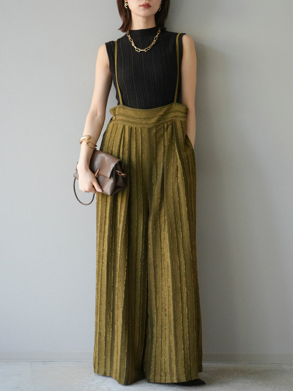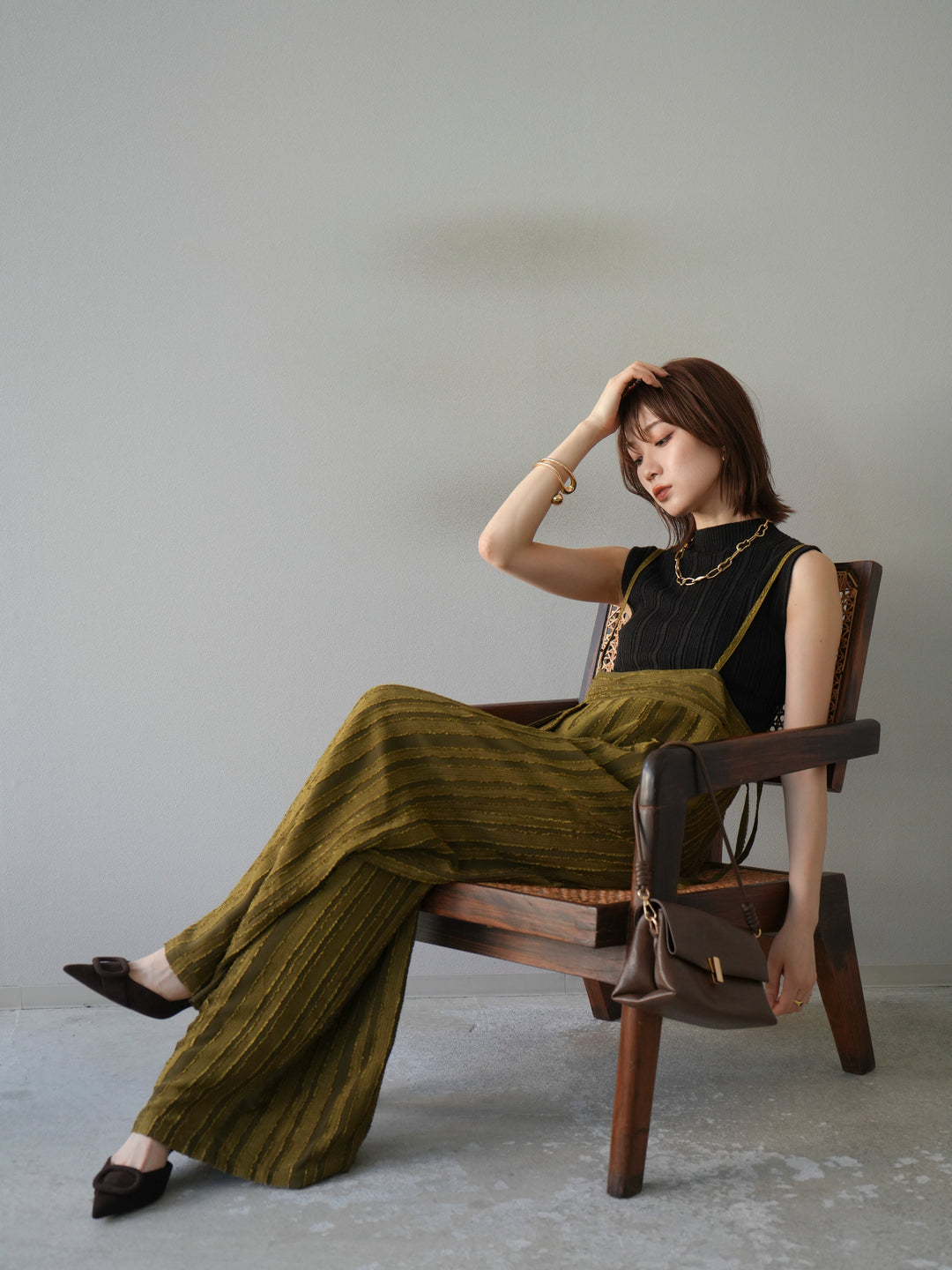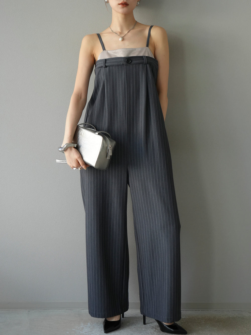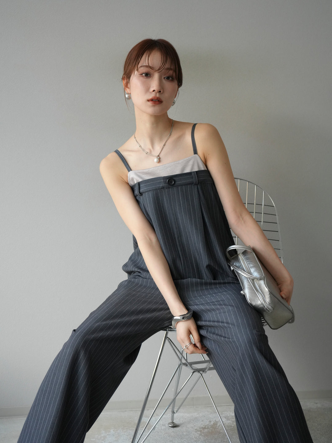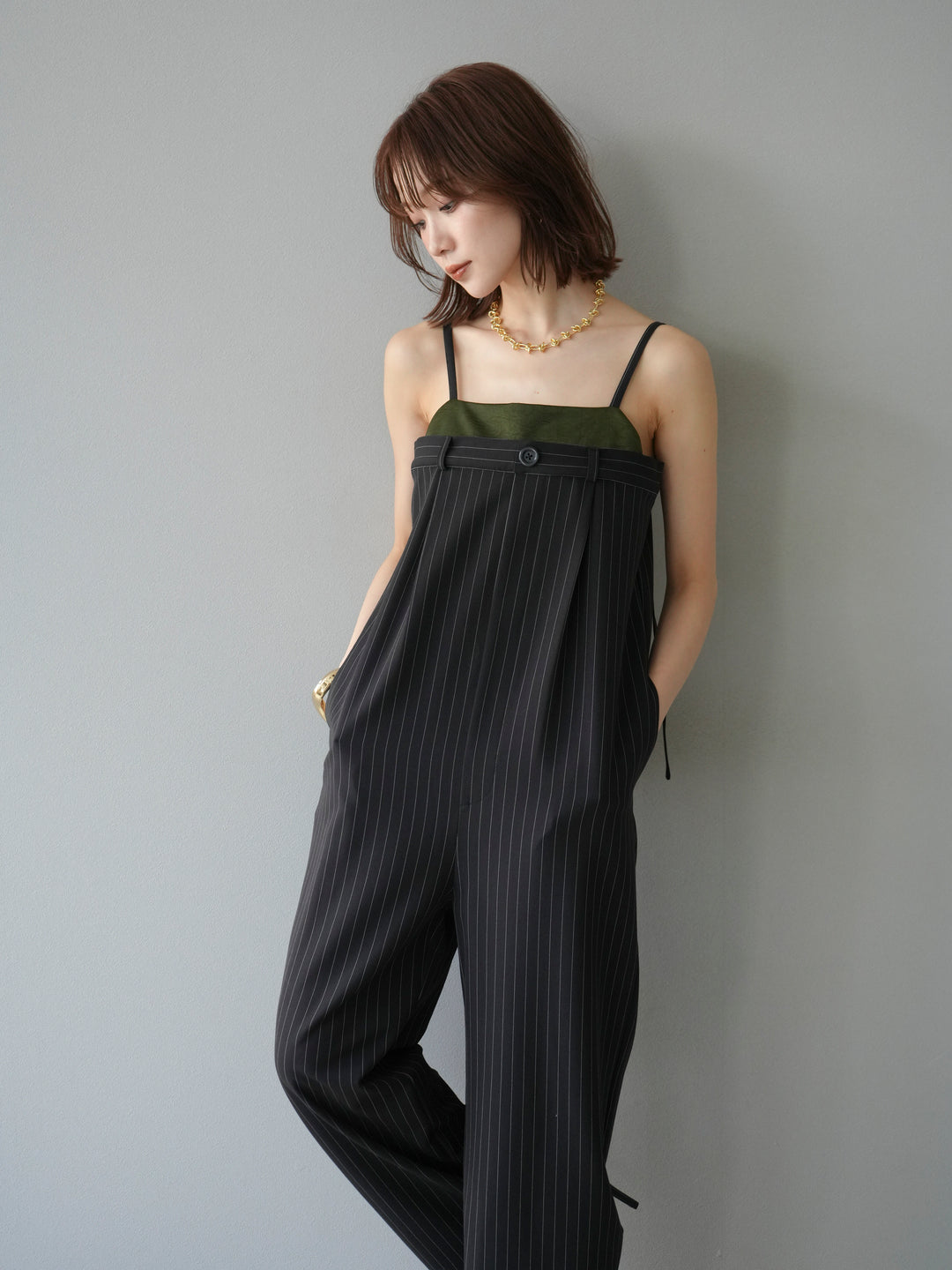 [予約]サテン切替ピンストライプサロペット/ブラック