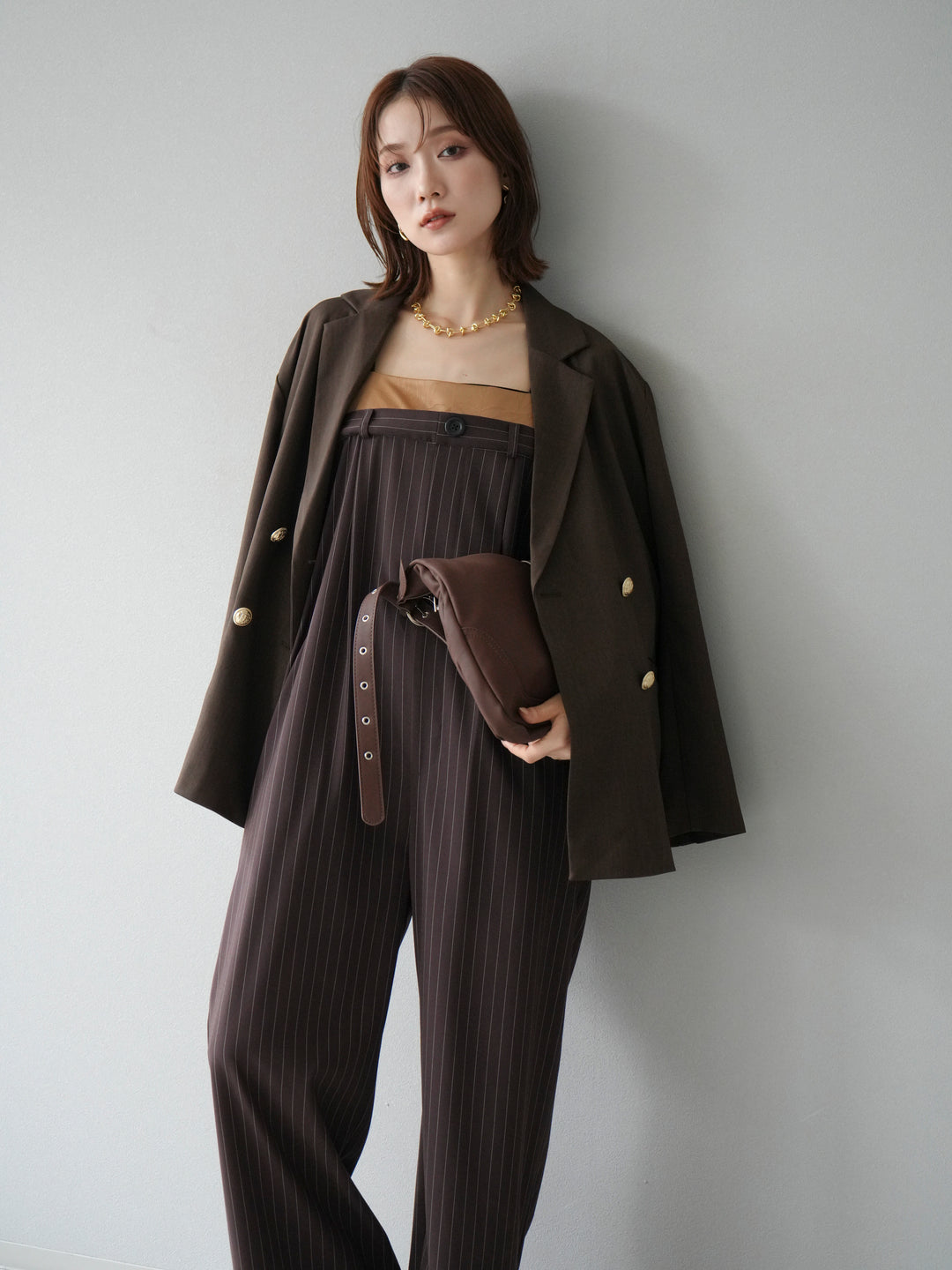 [予約]サテン切替ピンストライプサロペット/ブラウン