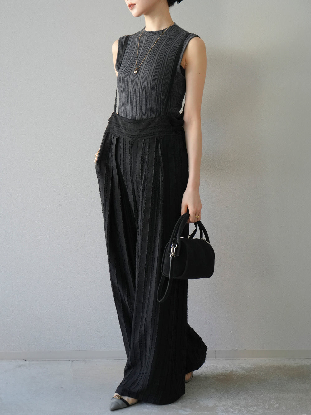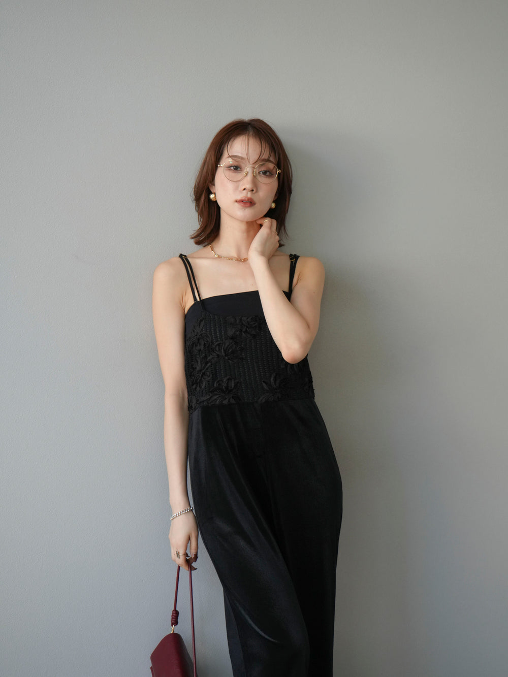 [予約]ジャガード切替ベロアサロペット/ブラック