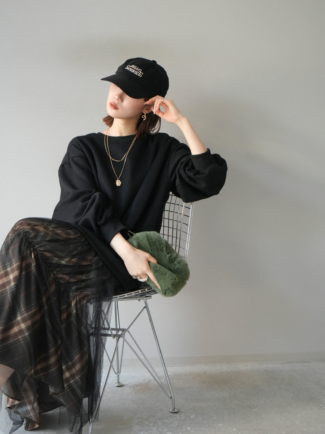 [予約]スウェットドッキングチェック柄レイヤードワンピース/ブラック