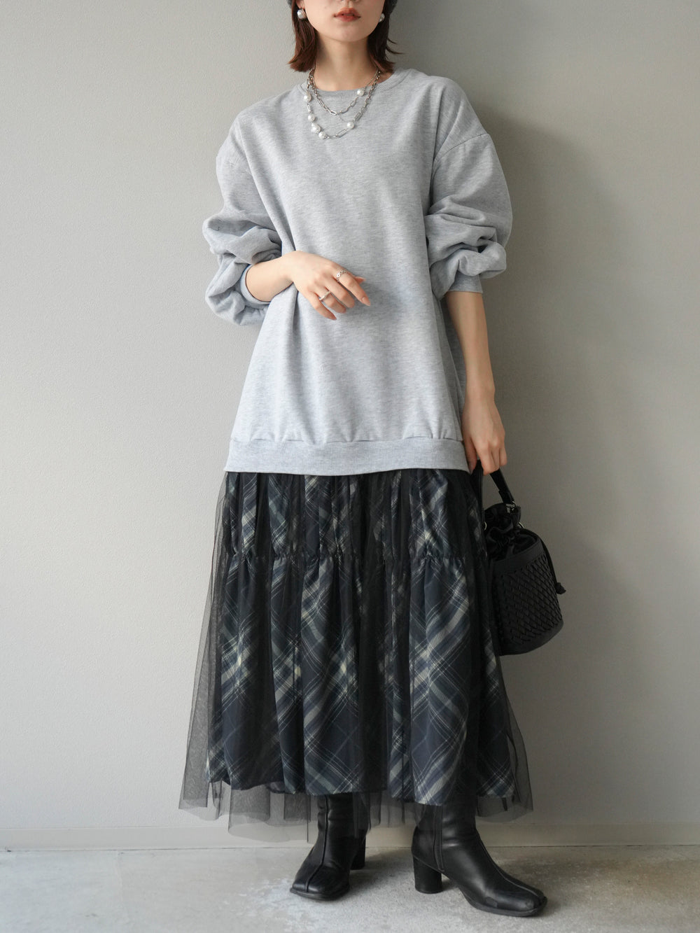 [予約]スウェットドッキングチェック柄レイヤードワンピース/グレー