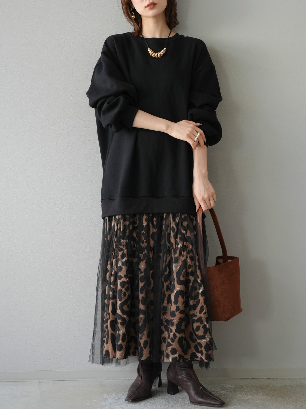 [予約]スウェットドッキングアニマル柄レイヤードワンピース/ブラック