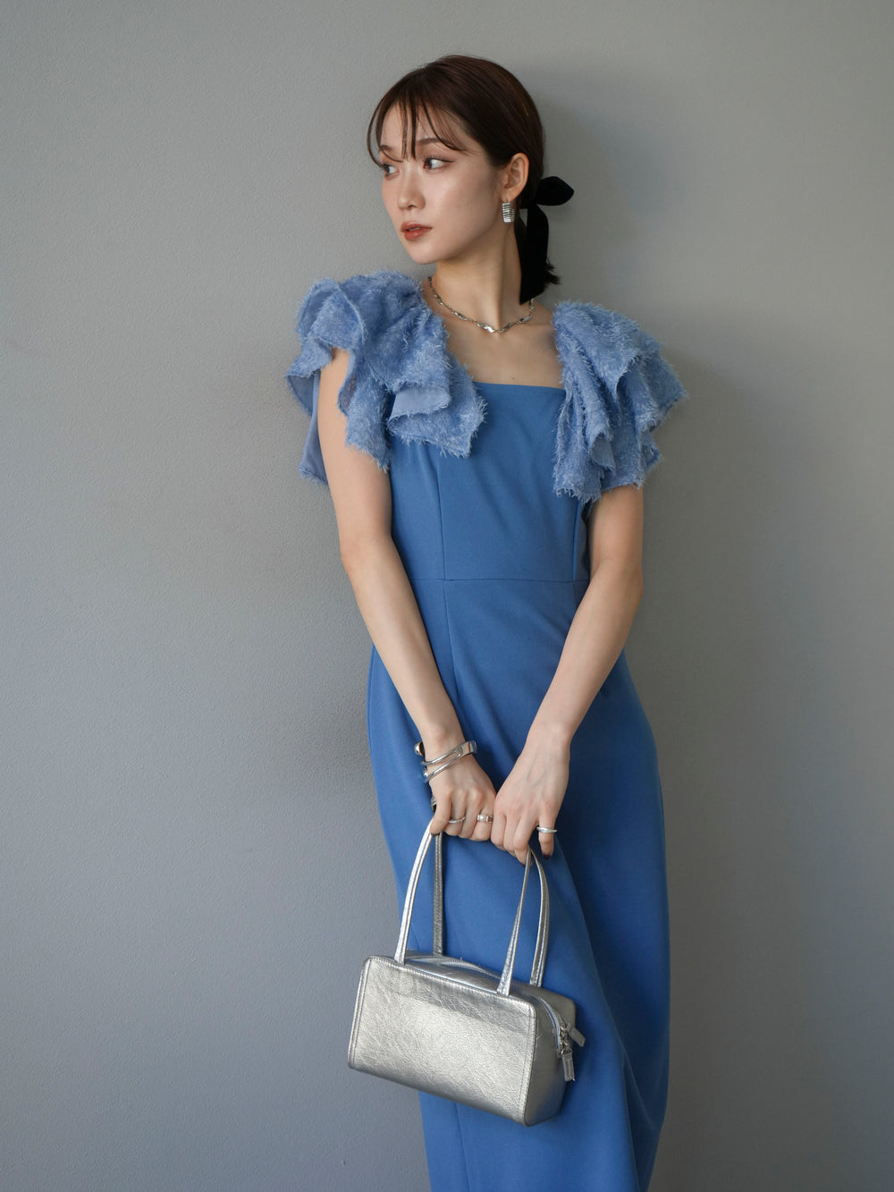 [予約]ジャガードフレアスリーブドレス/ブルー