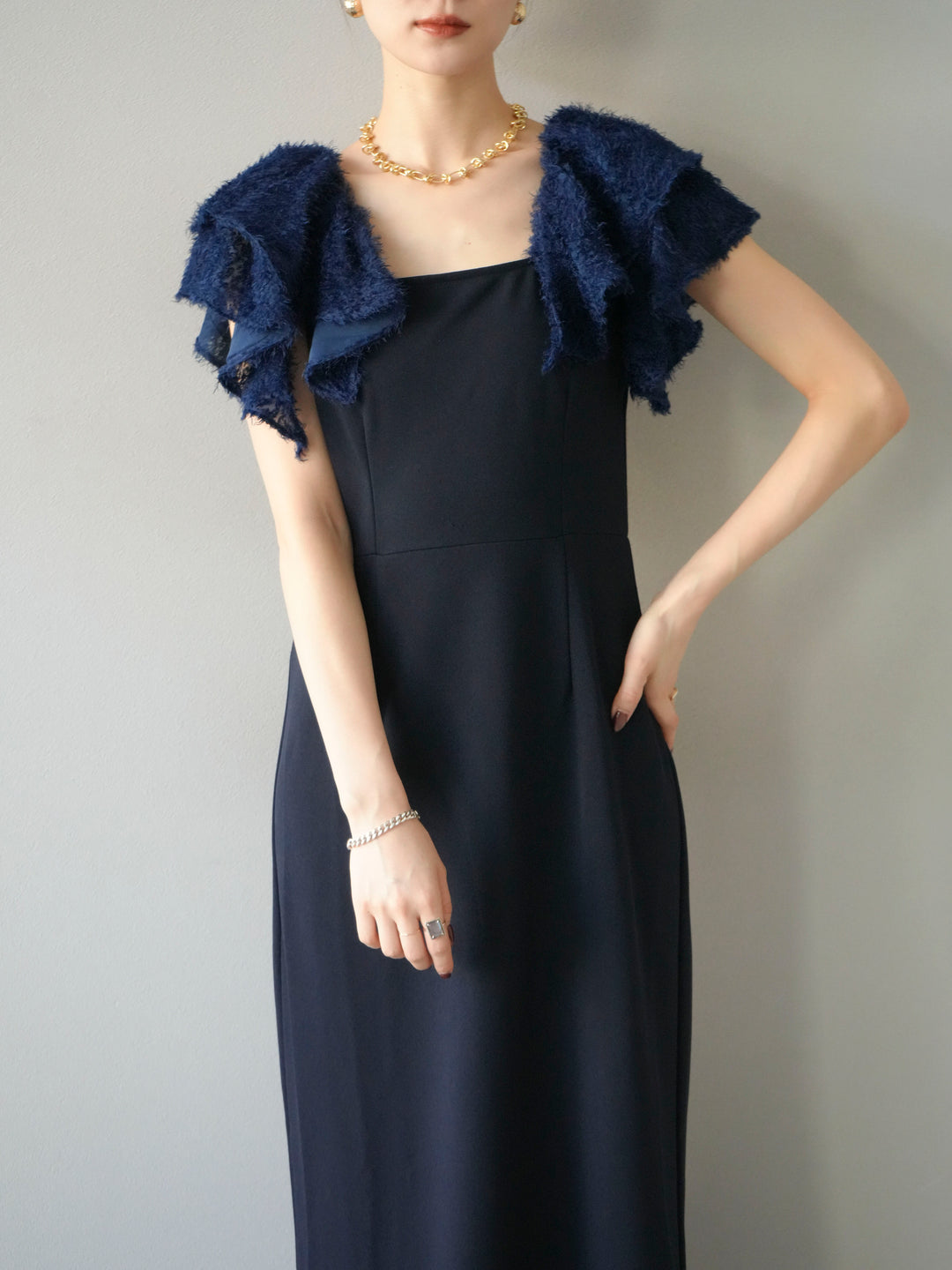 [予約]ジャガードフレアスリーブドレス/ネイビー