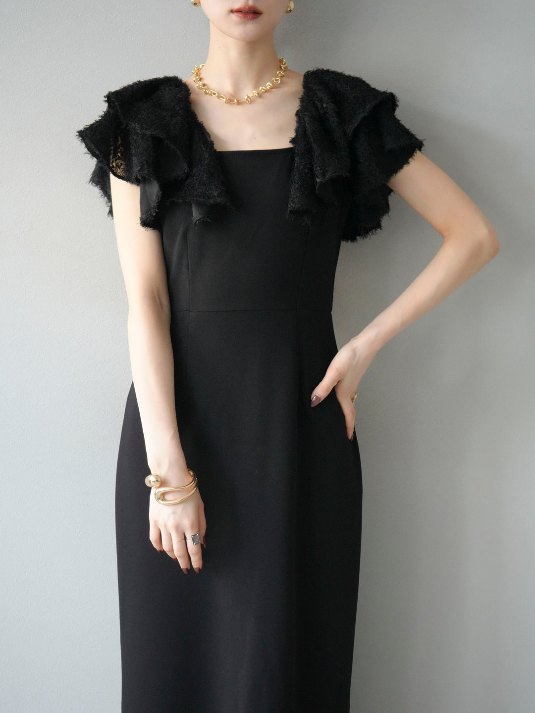 [予約]ジャガードフレアスリーブドレス/ブラック