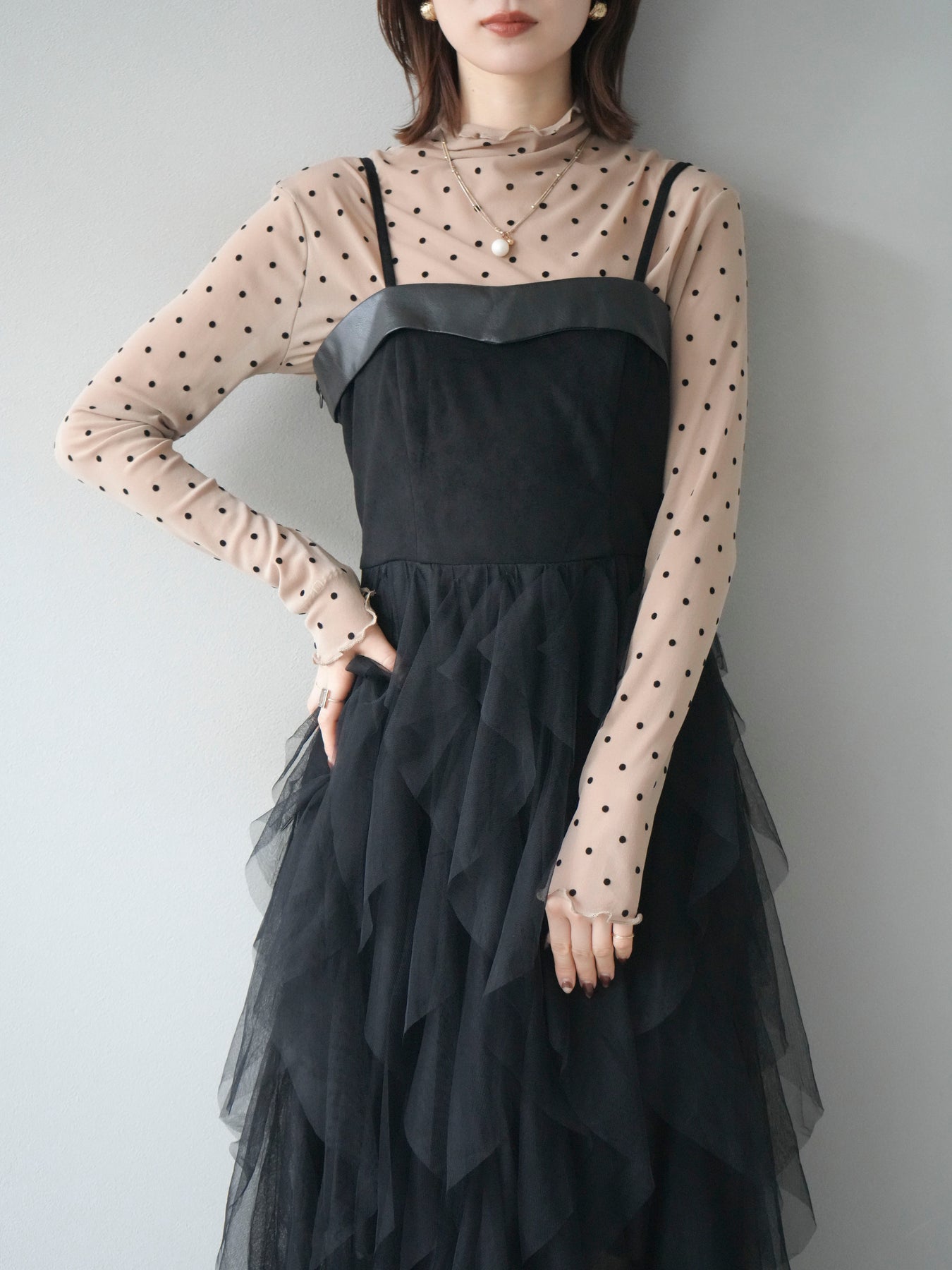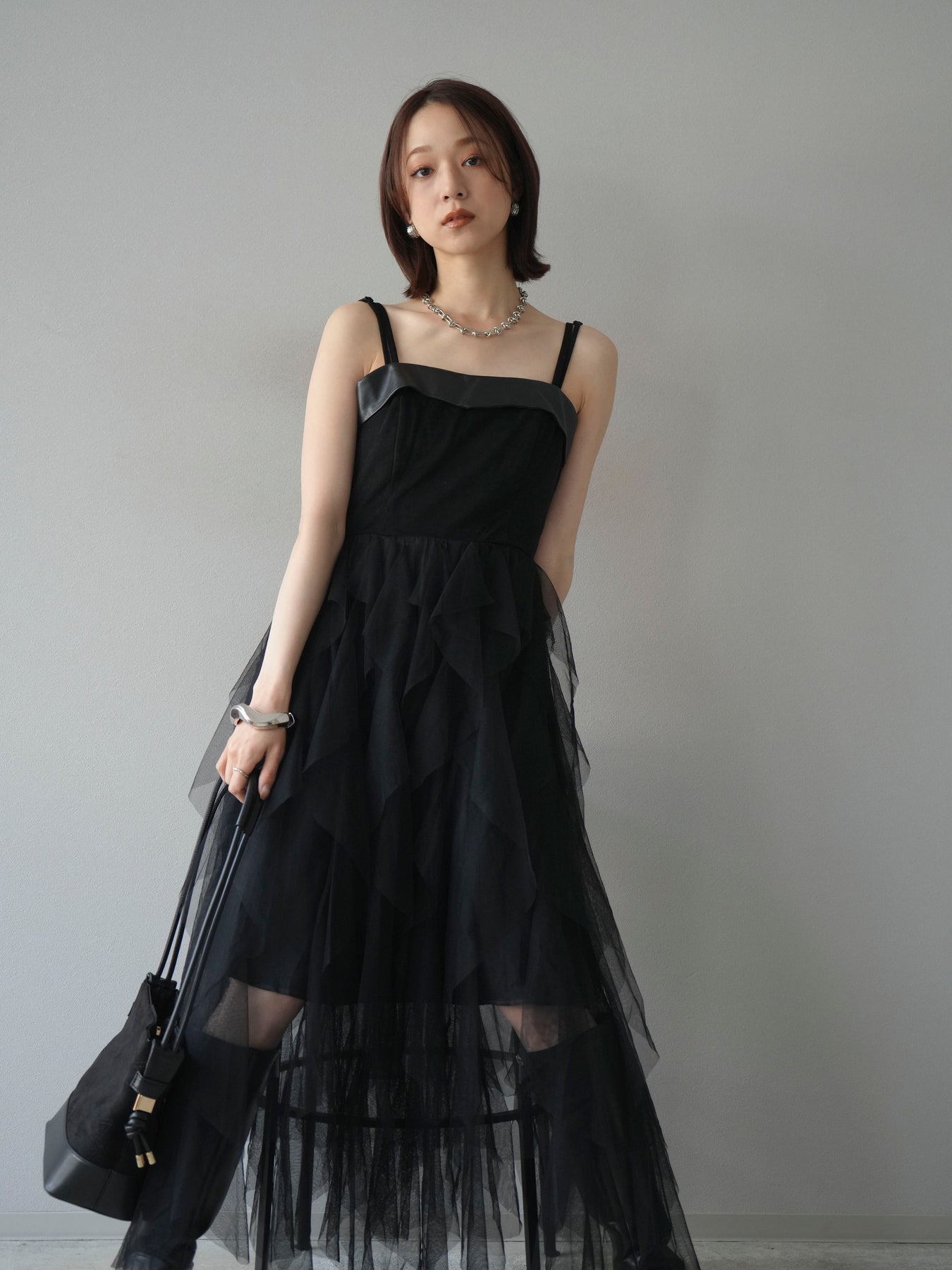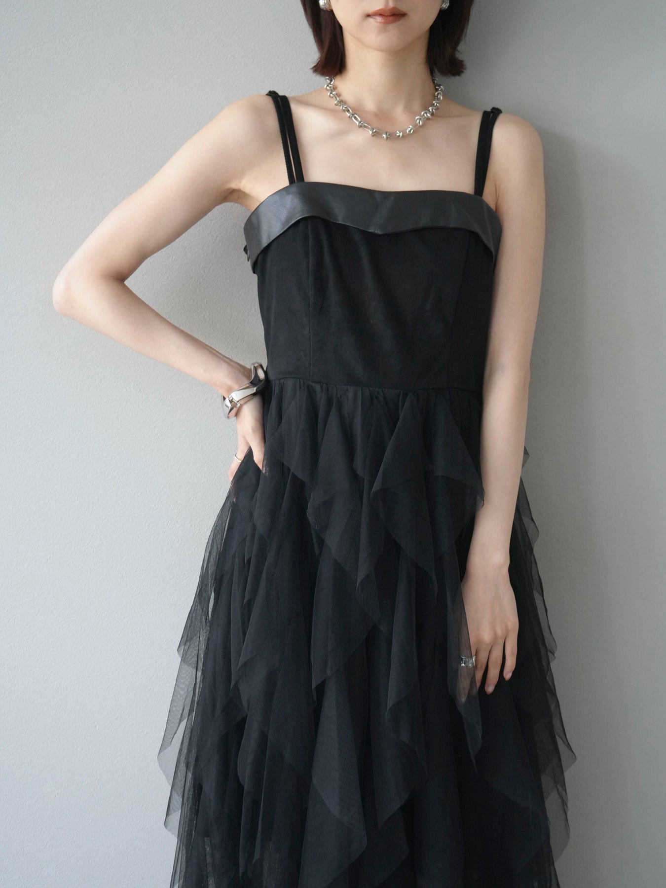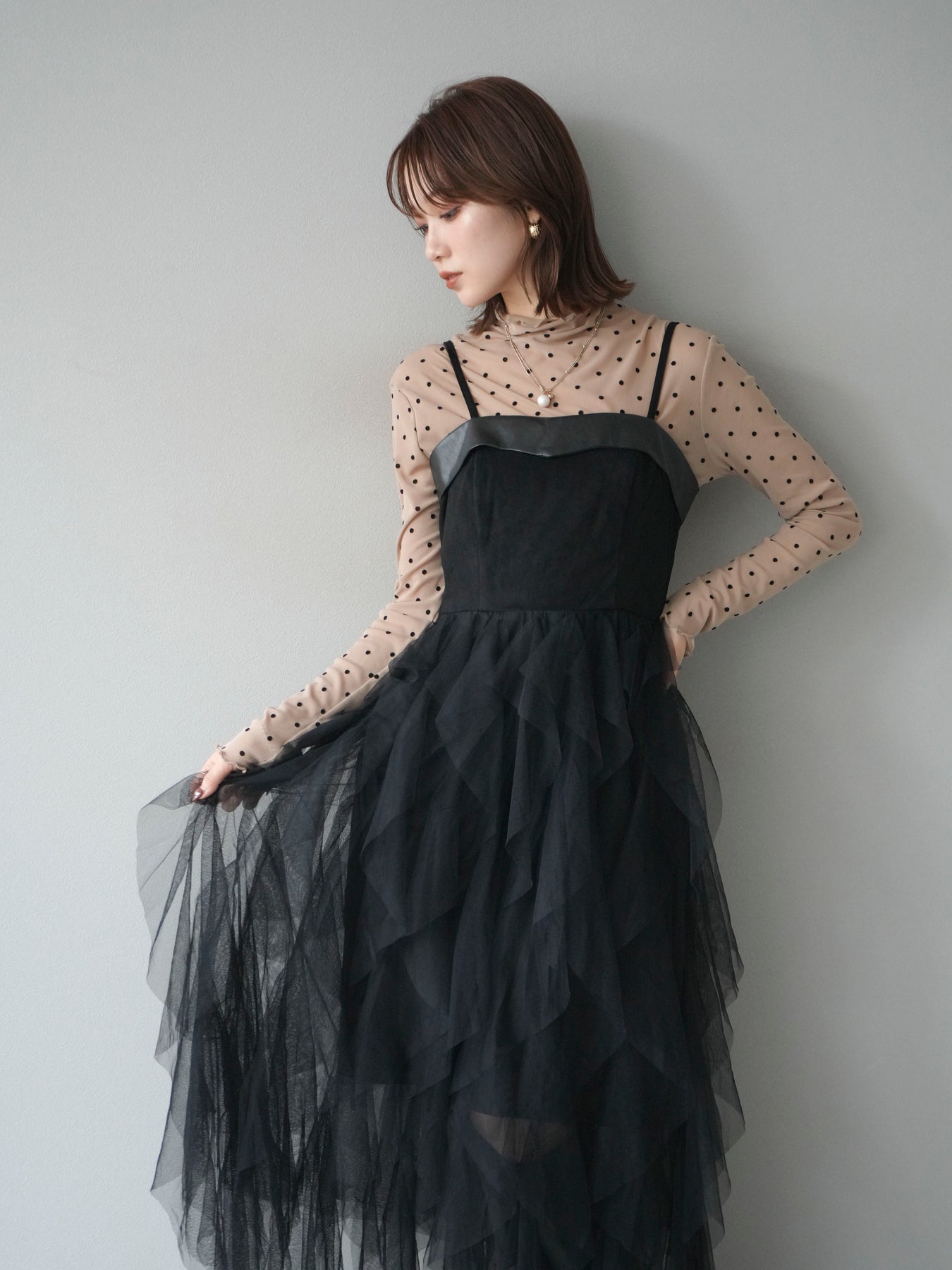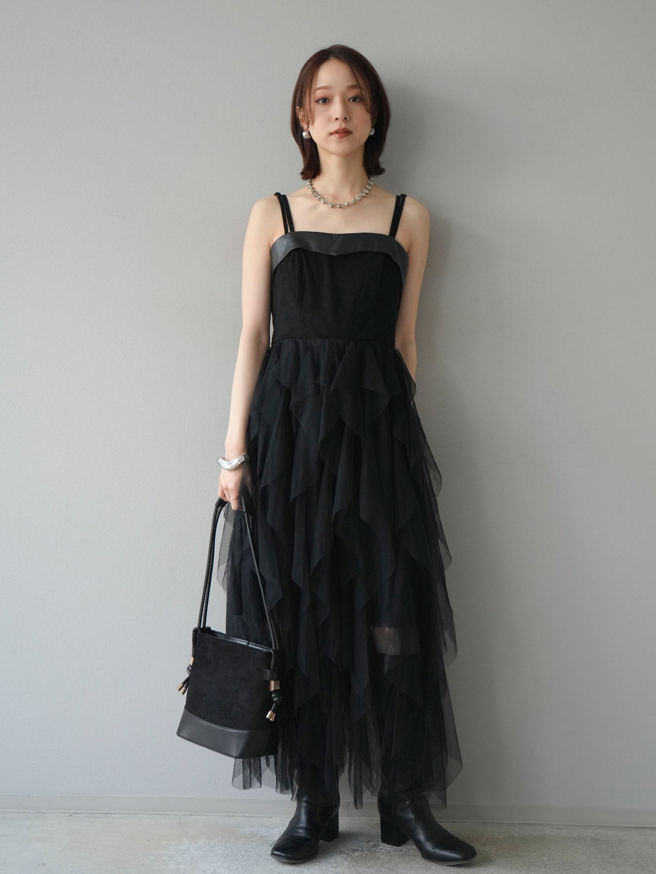 [予約]レザー切替チュールラッフルワンピースに関連する商品を探す↓