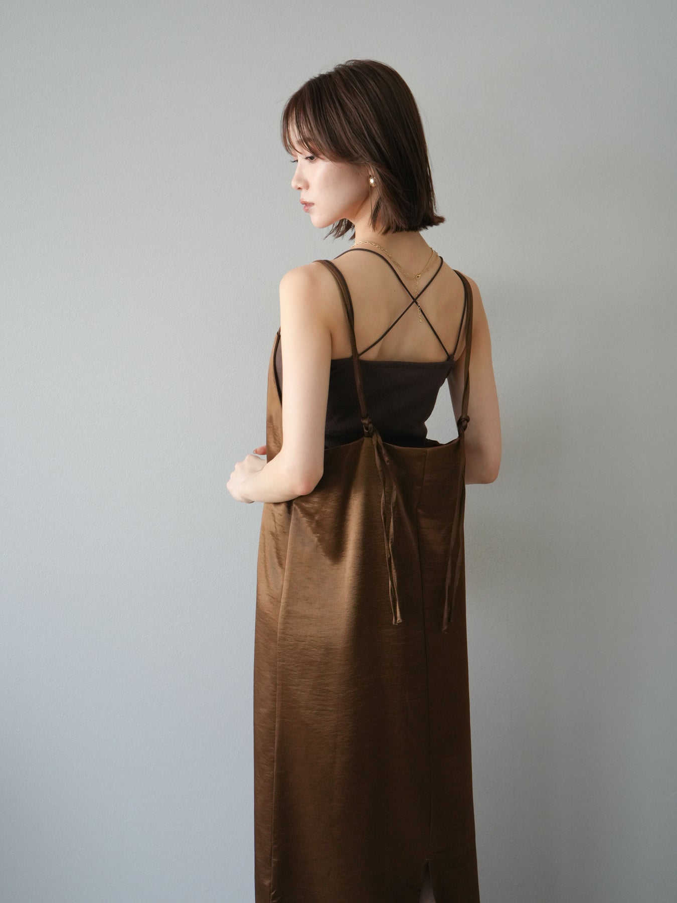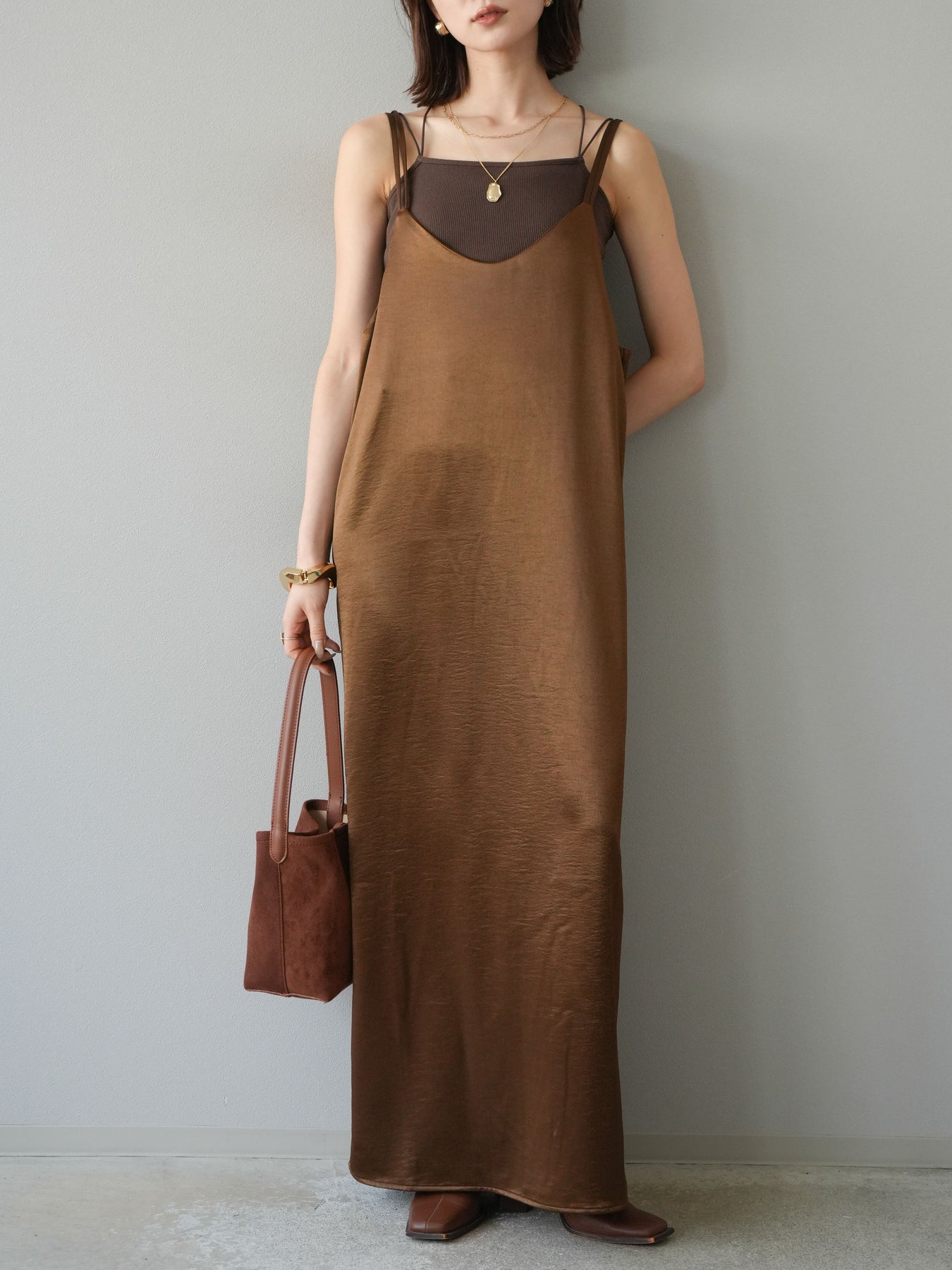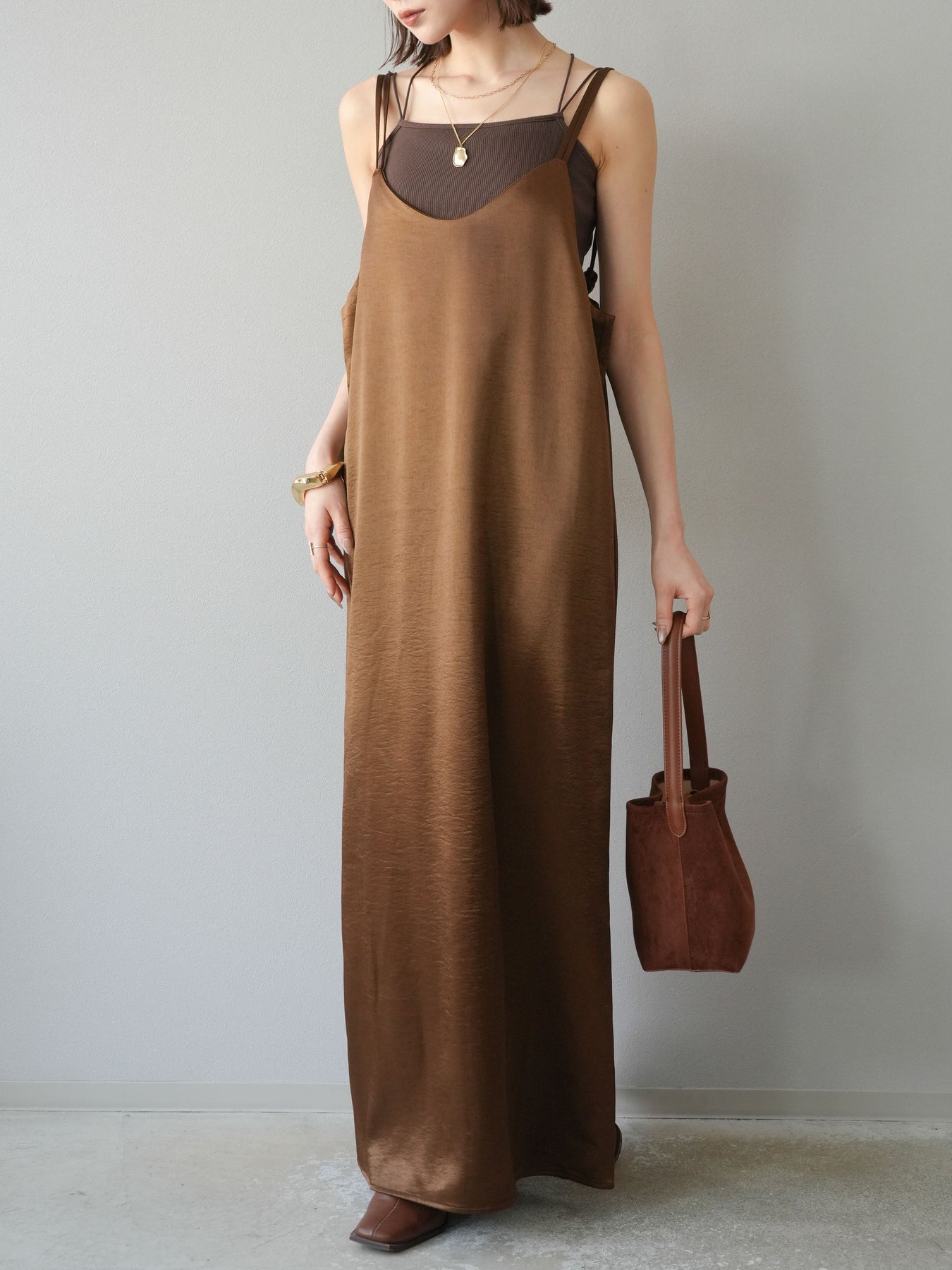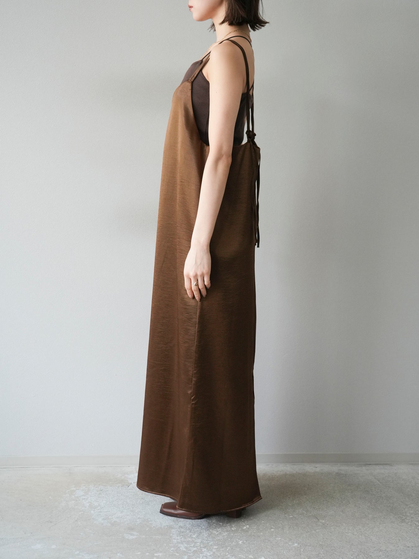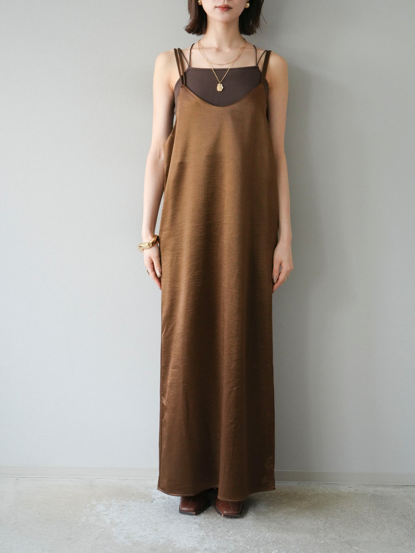 [予約]サテンキャミワンピース/ブラウン