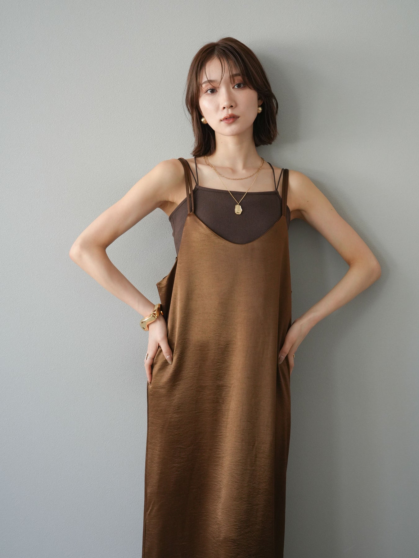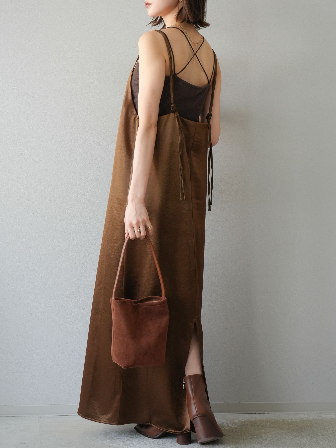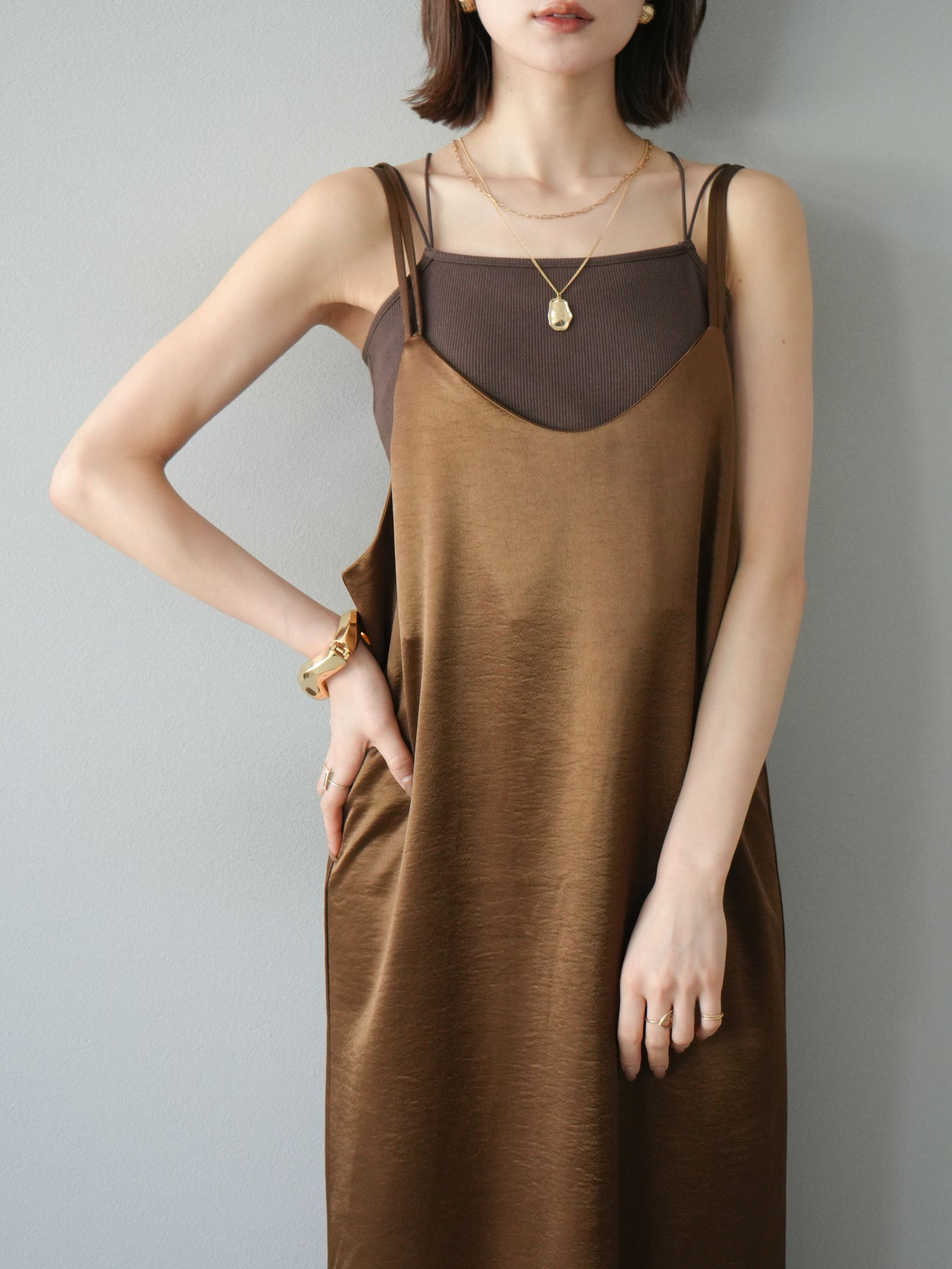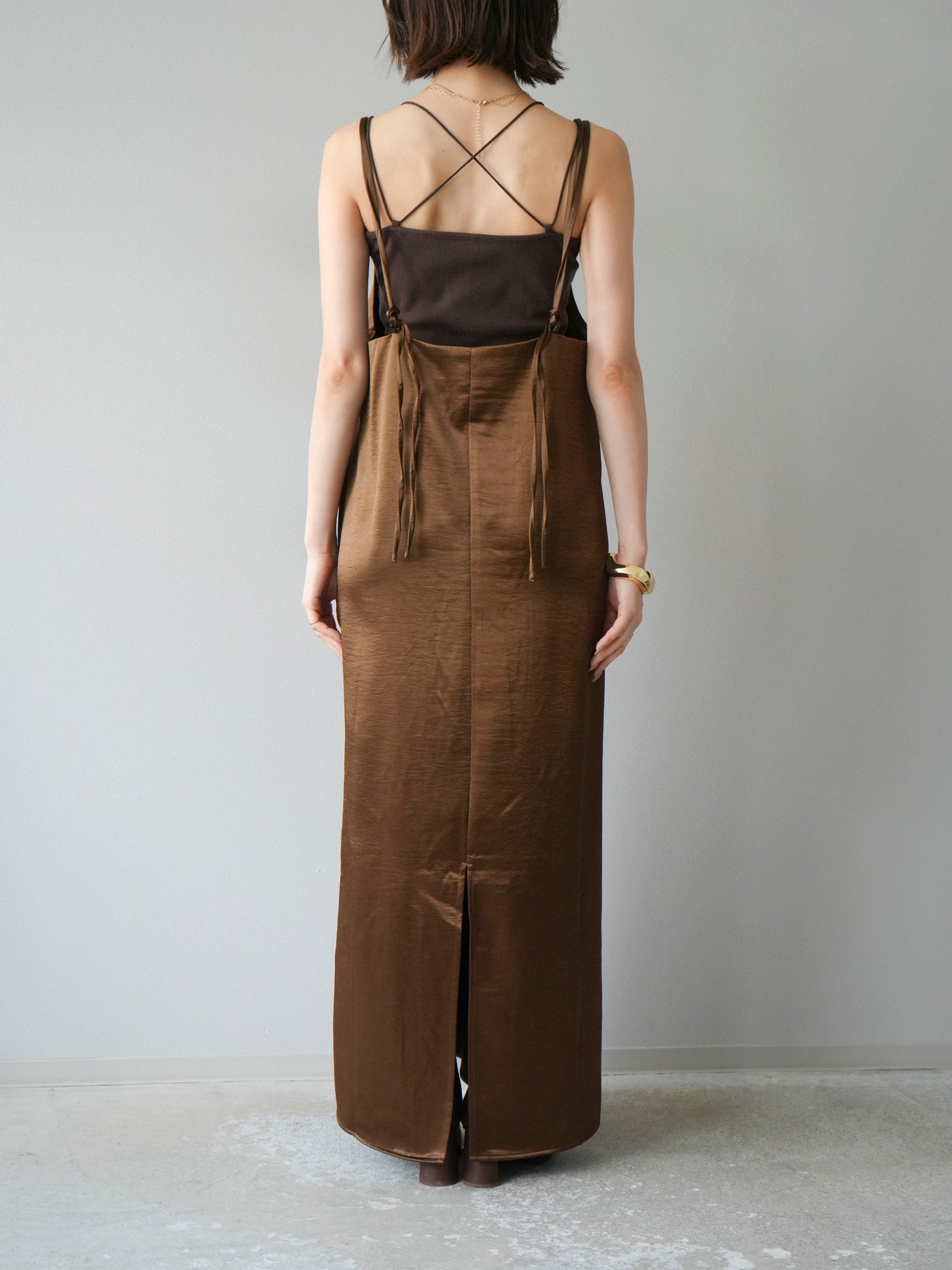 [予約]サテンキャミワンピース/ブラウン