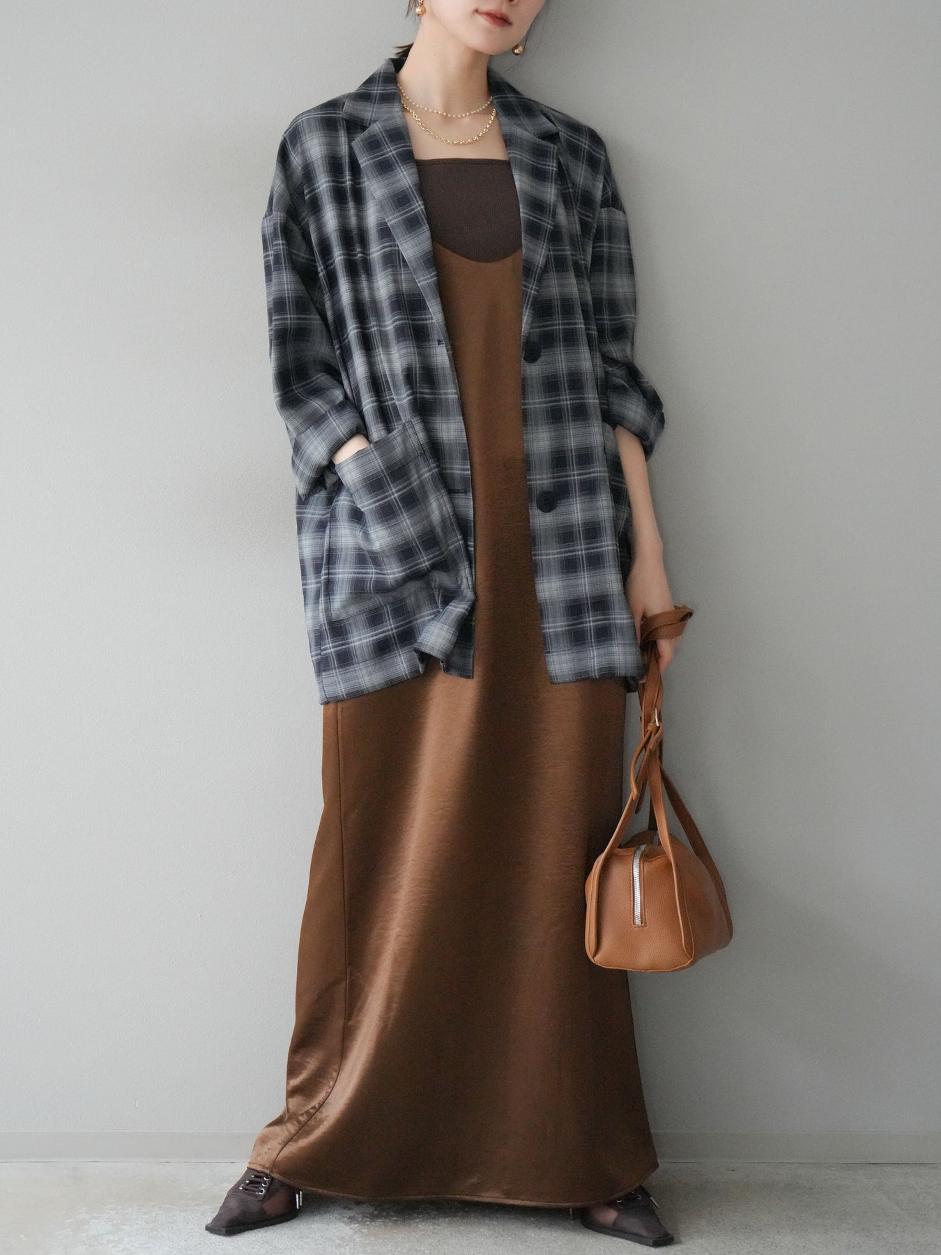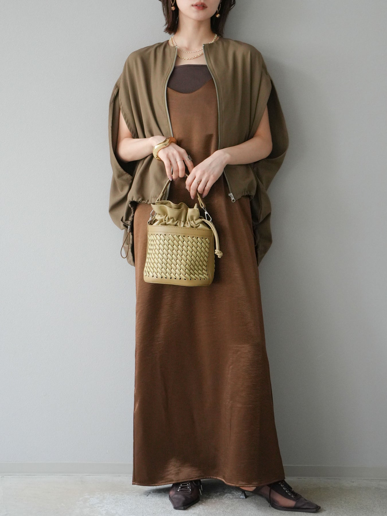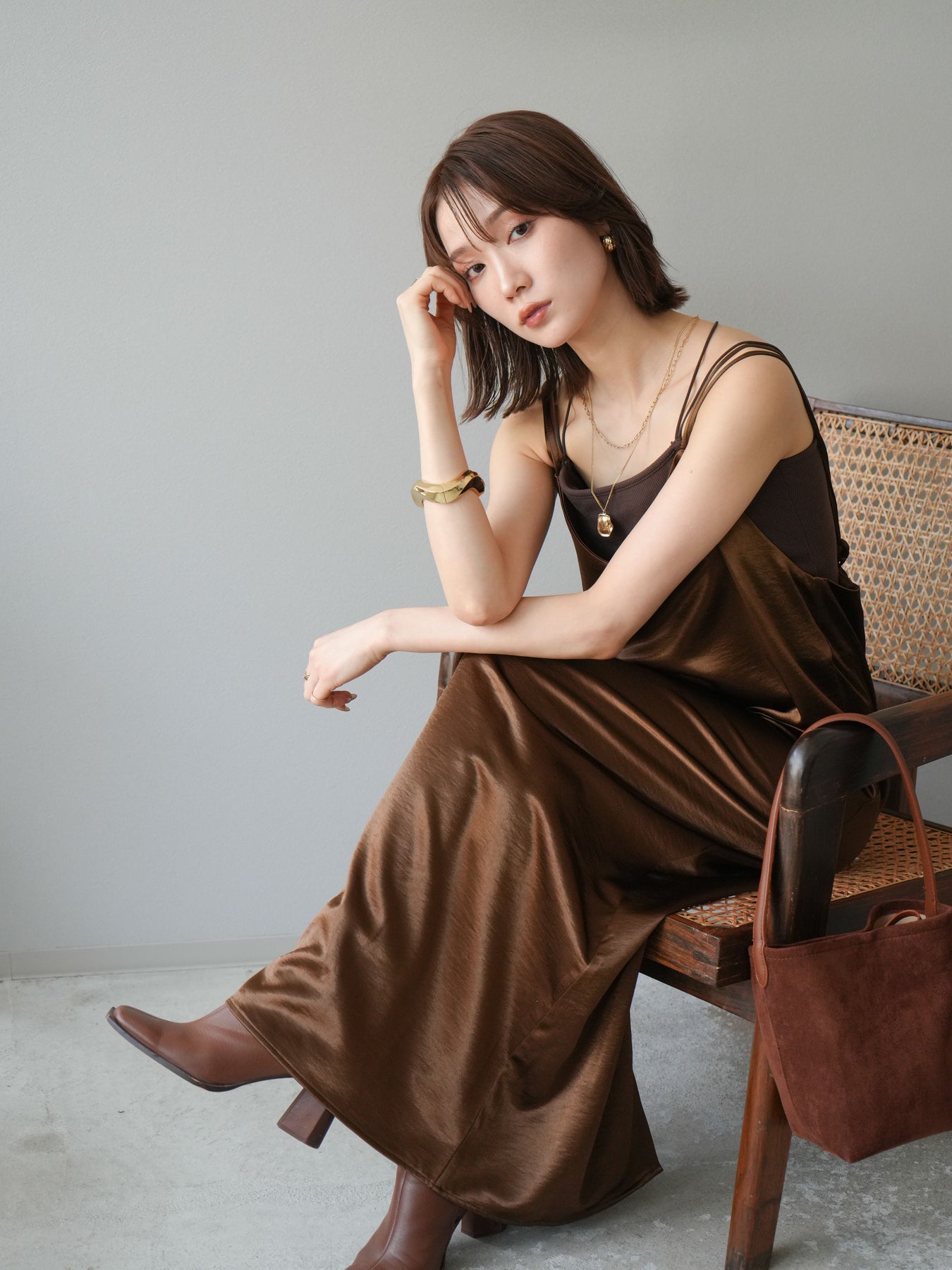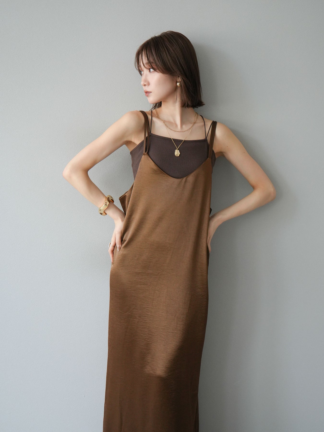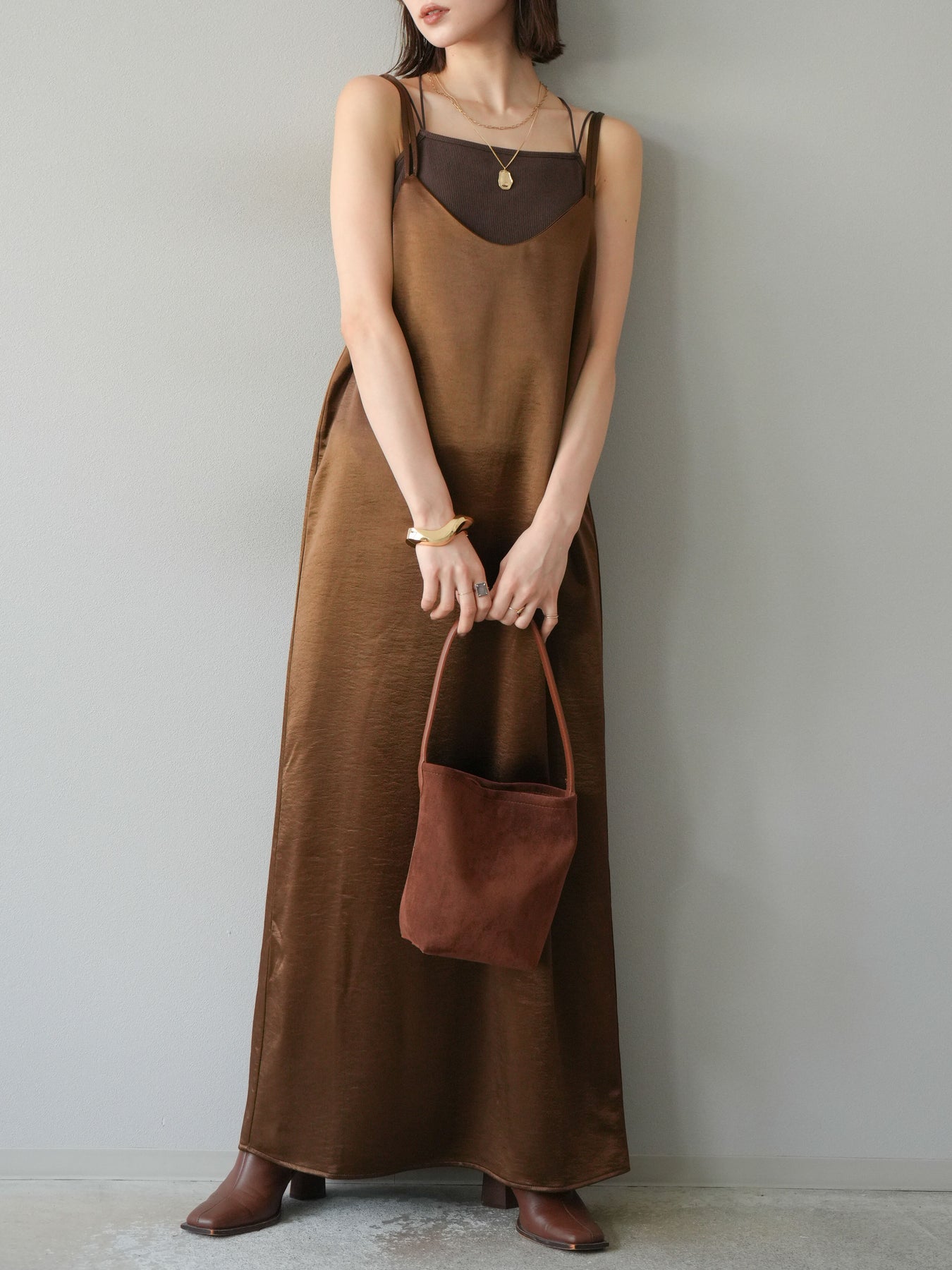[予約]サテンキャミワンピース/ブラウン