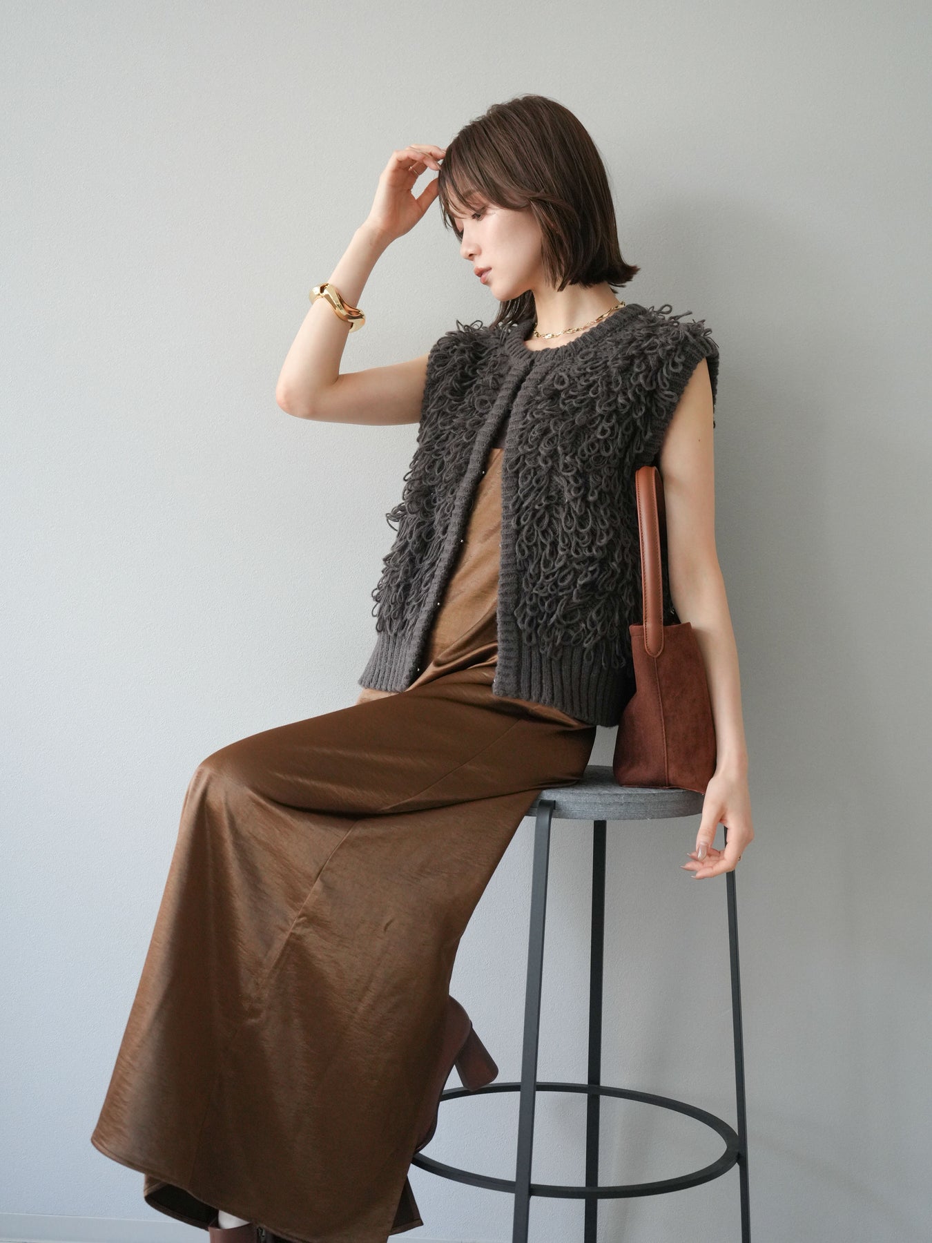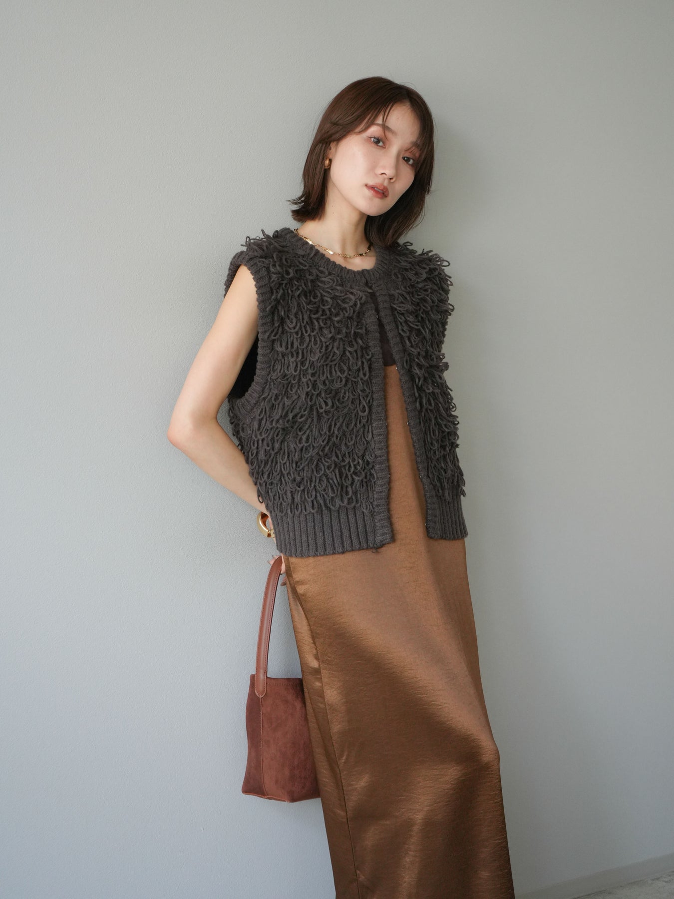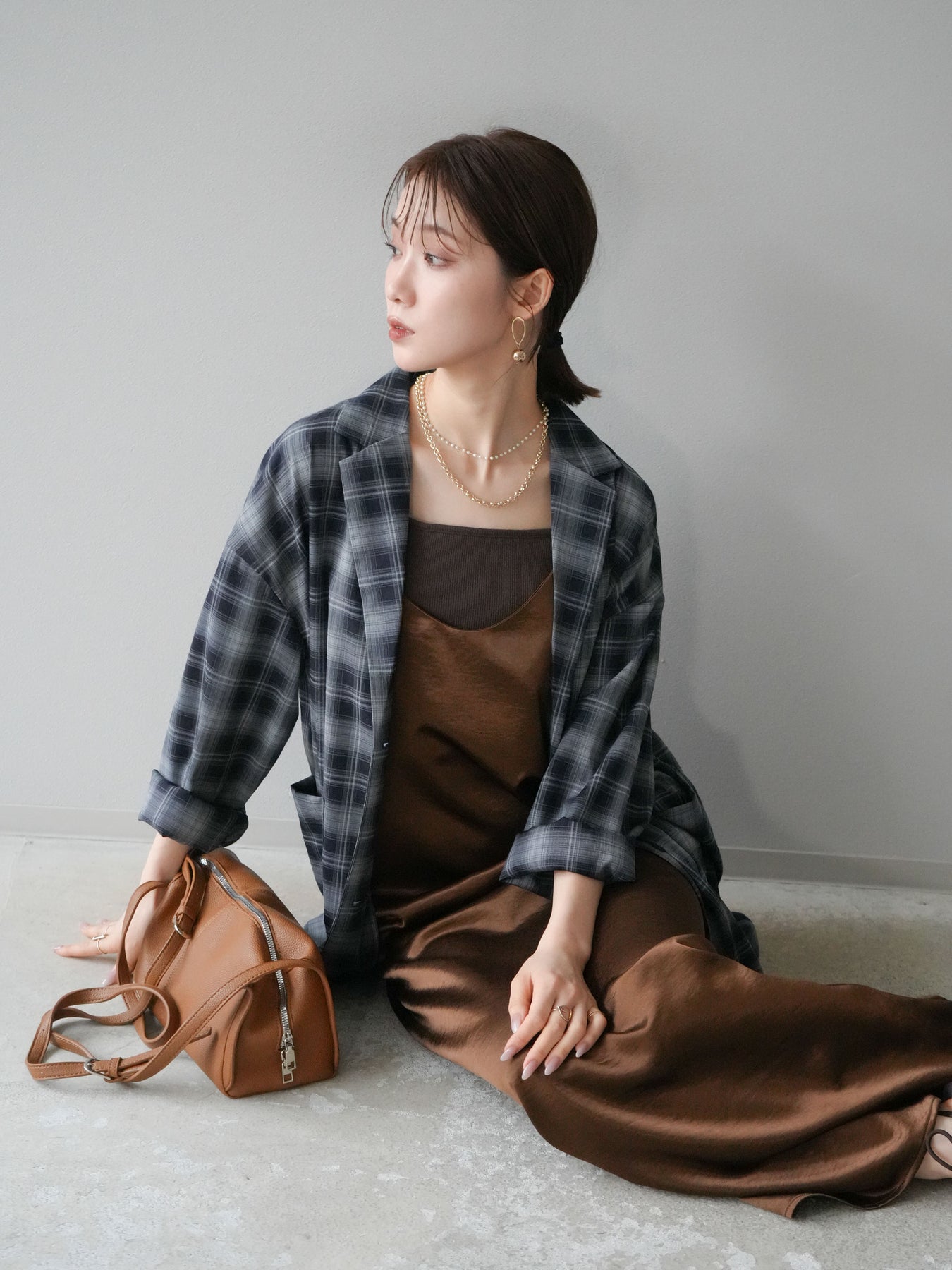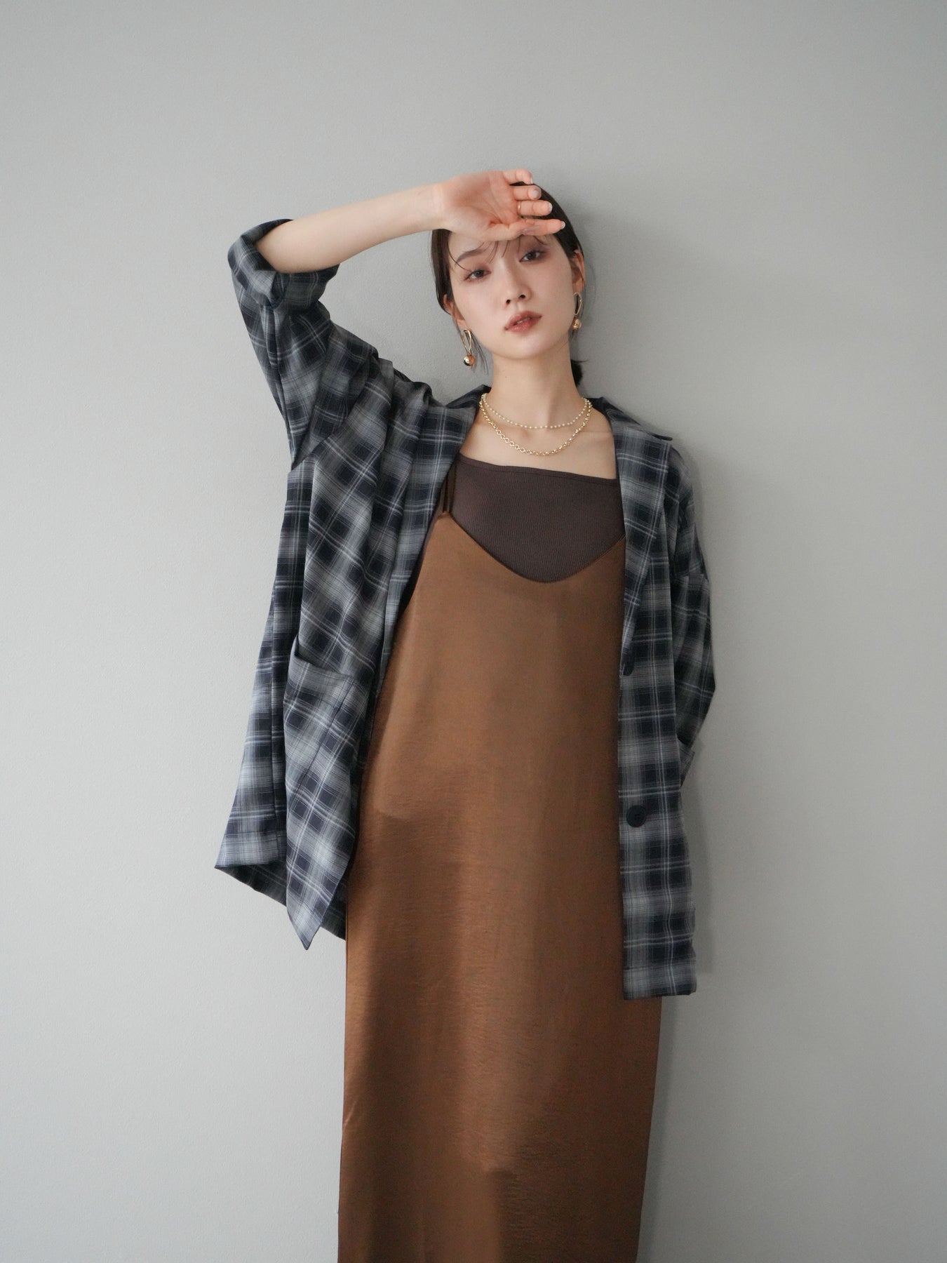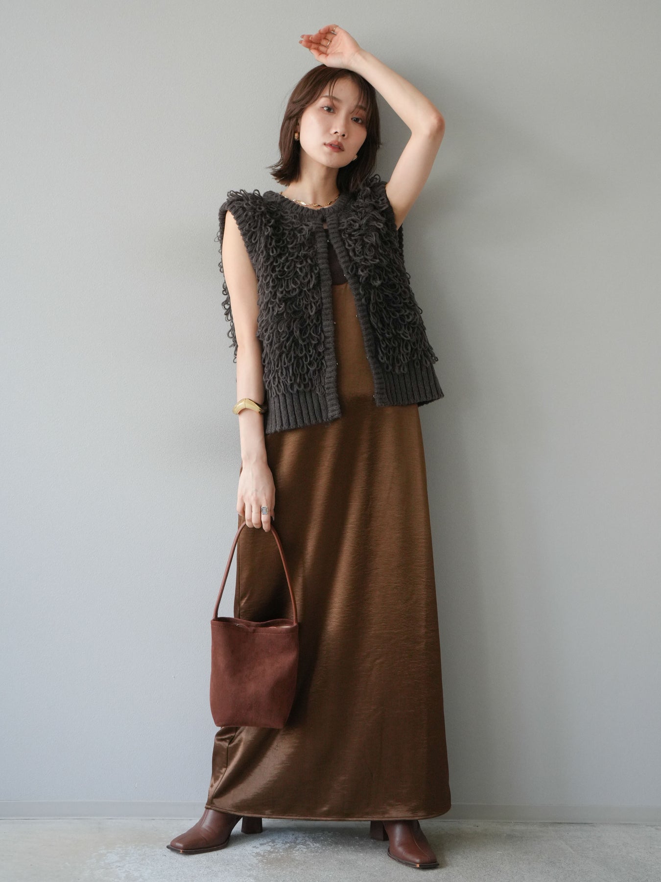 [予約]サテンキャミワンピース/ブラウン