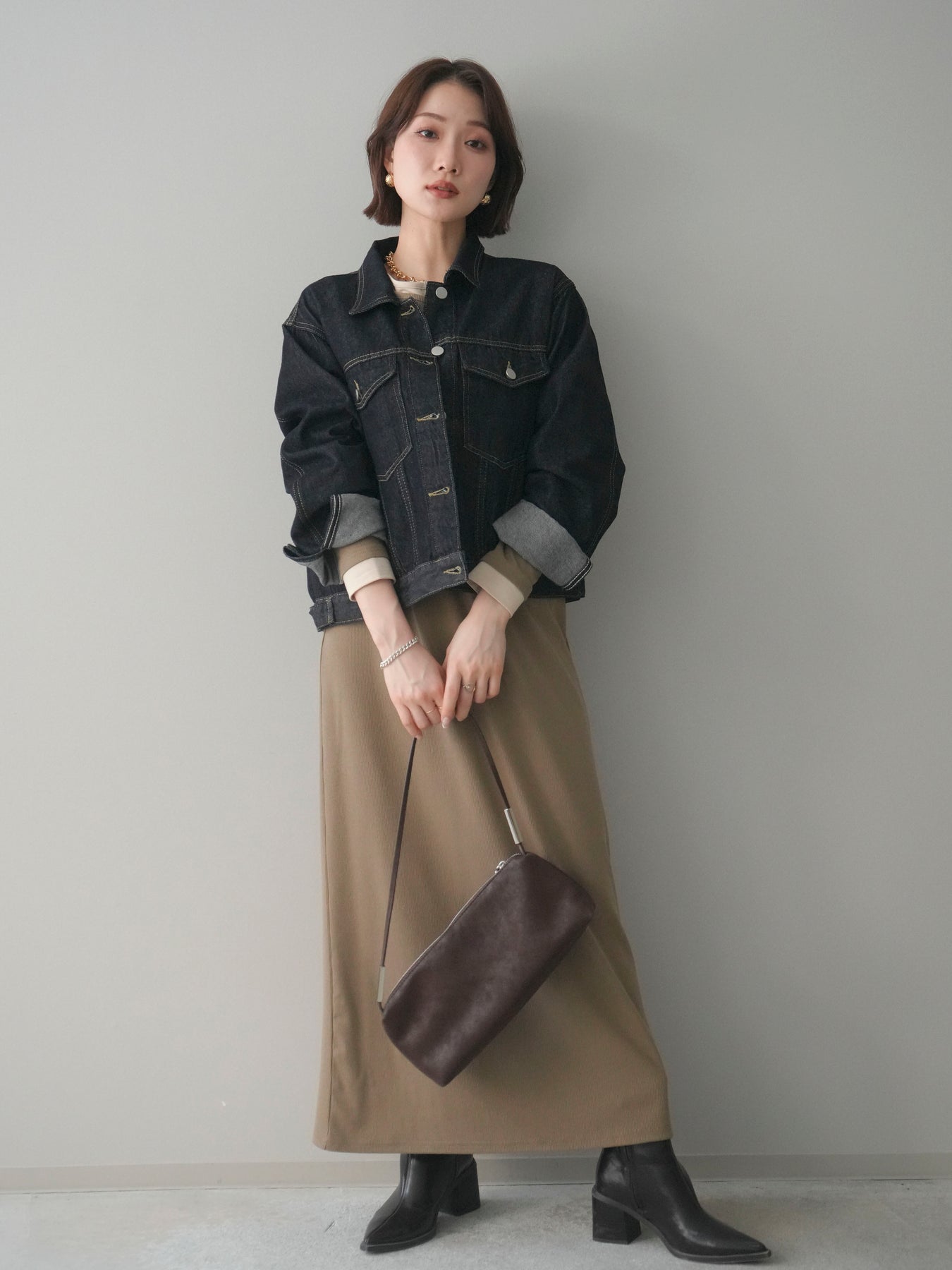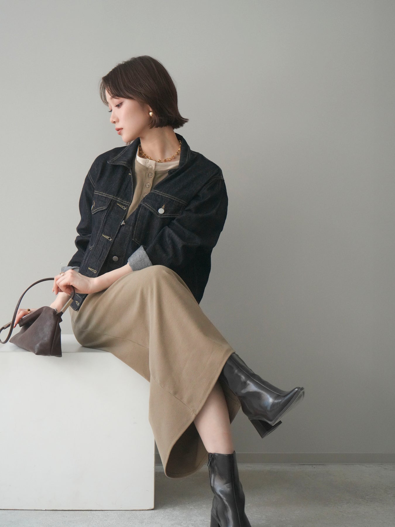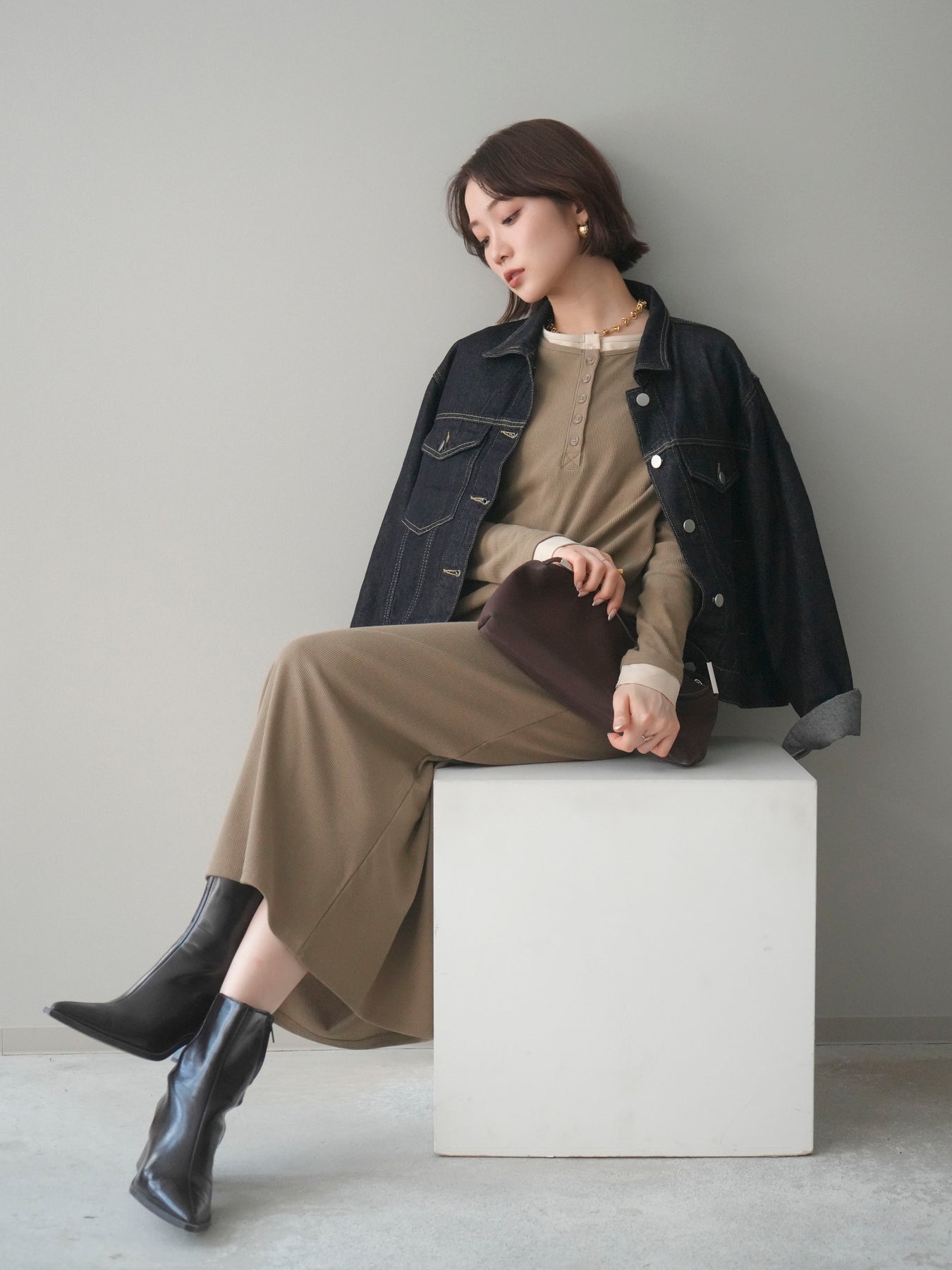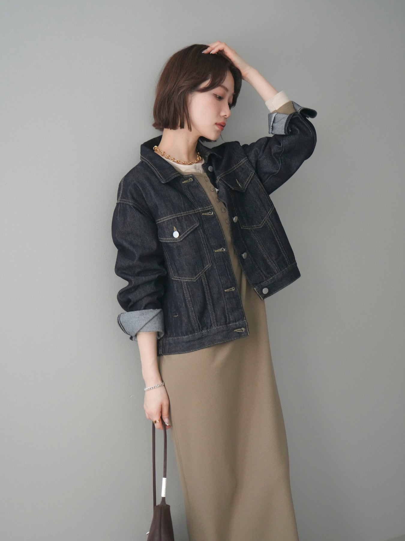 [予約]配色レイヤードヘンリーネックカットリブワンピースに関連する商品を探す↓