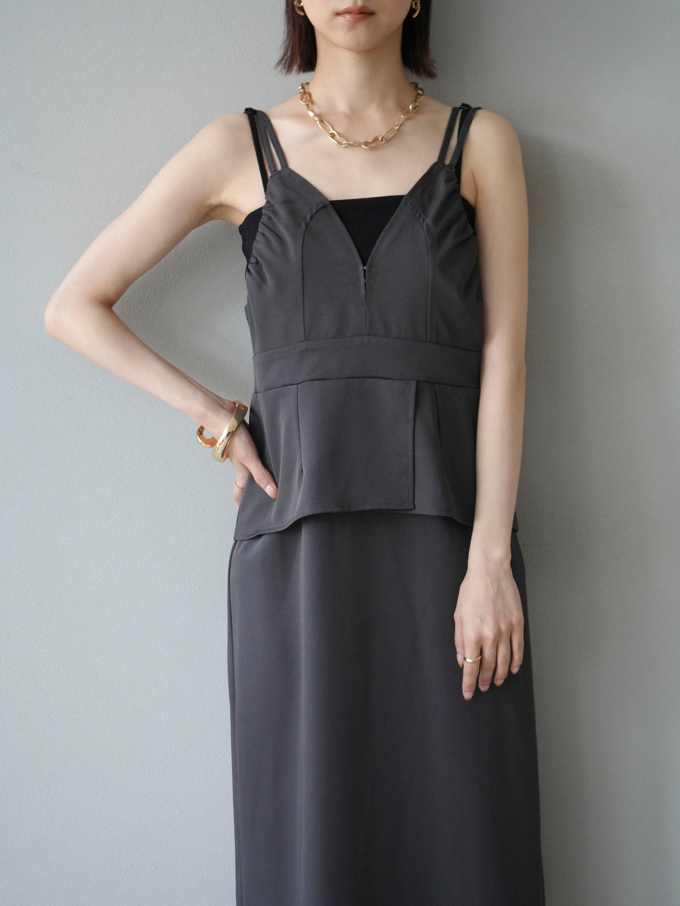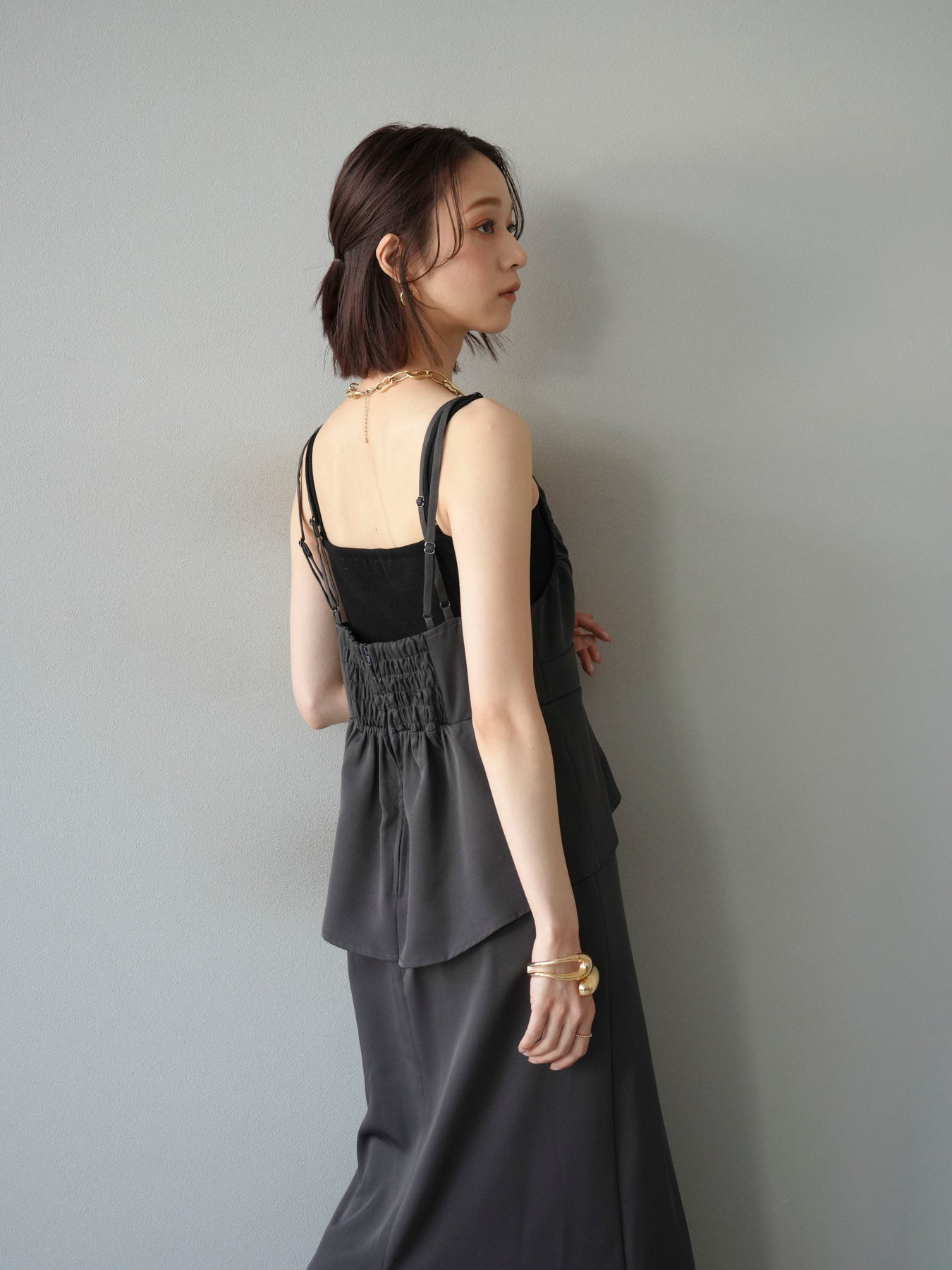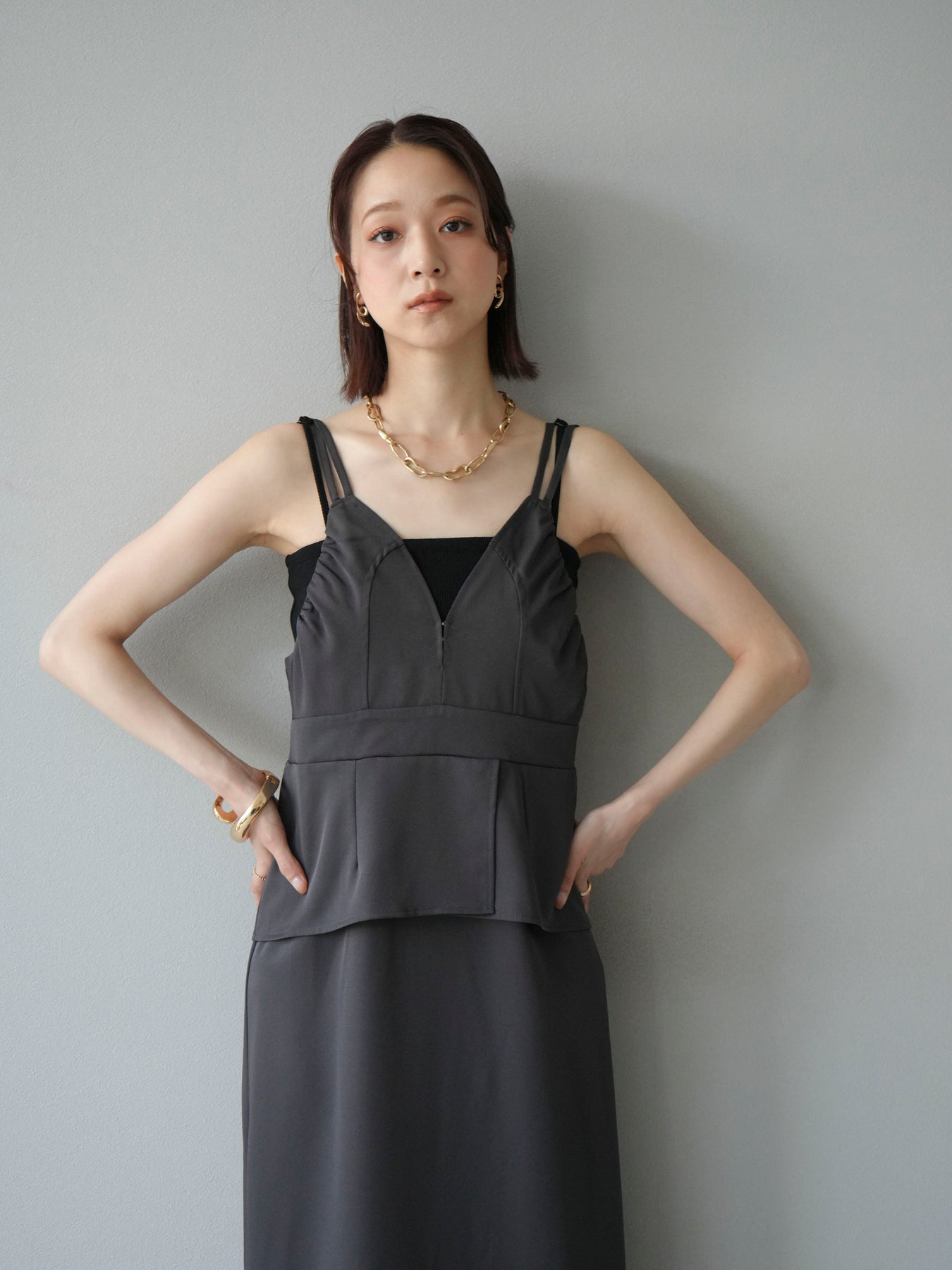 女性らしいラインを引き立てるビスチェデザインのキャミワンピース。ウエスト部分に切り替えを入れることでスタイルアップ効果を高め、シンプルながらも立体感のあるシルエットに仕上げました。華奢なダブルストラップが抜け感を演出し、レイヤード次第でロングシーズン着回せるアイテム。インナーを合わせればデイリーに、アクセサリーをプラスすればドレスライクな着こなしも楽しめます。 ※ボトムス、キャミソール(インナー)以外の商品は一律でインナーは付属していません。