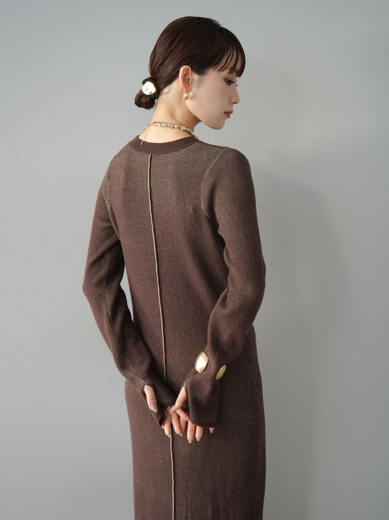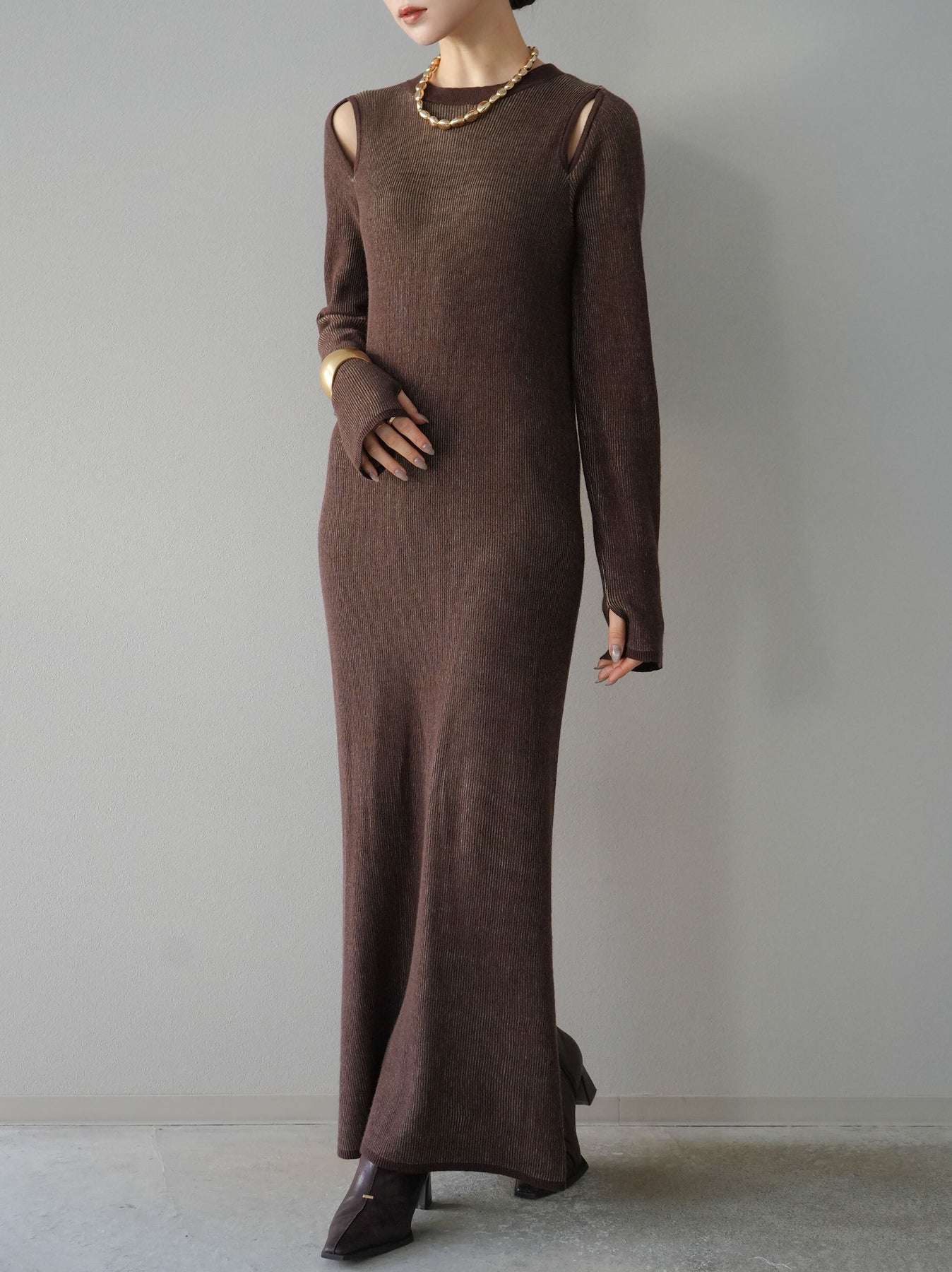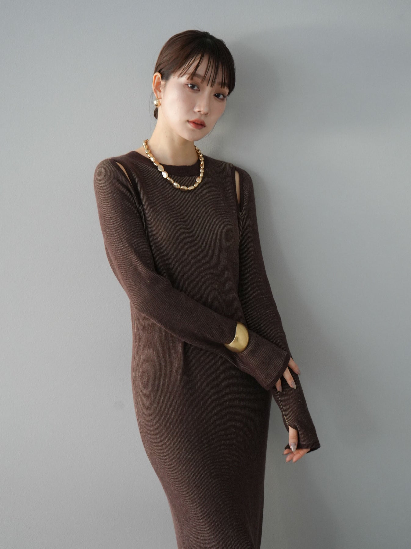[予約]カットアウト配色リブニットワンピース/ブラウン×ライトグリーン