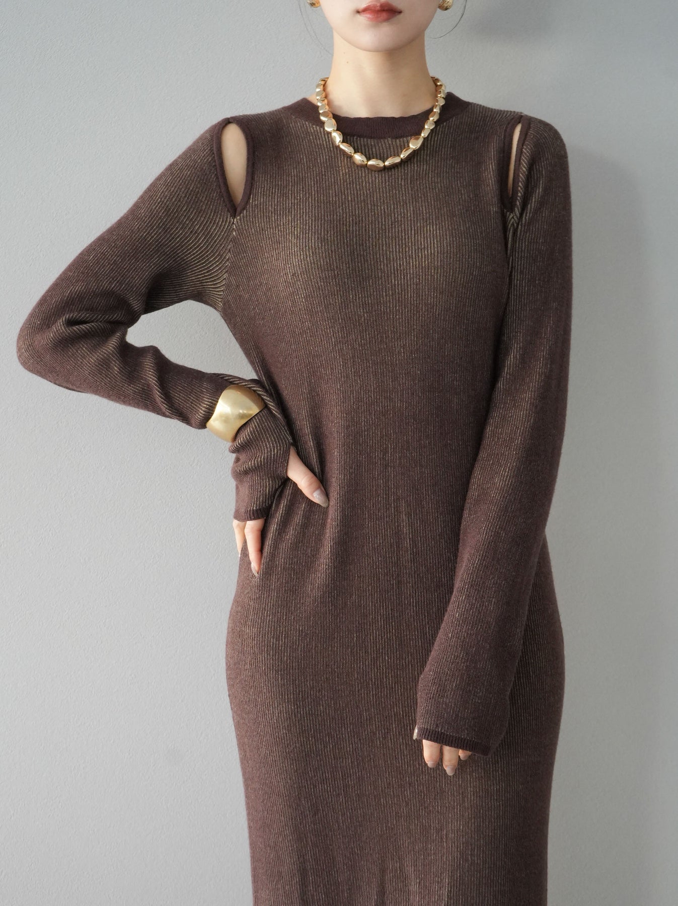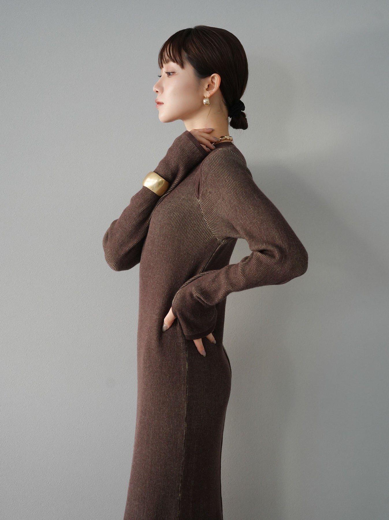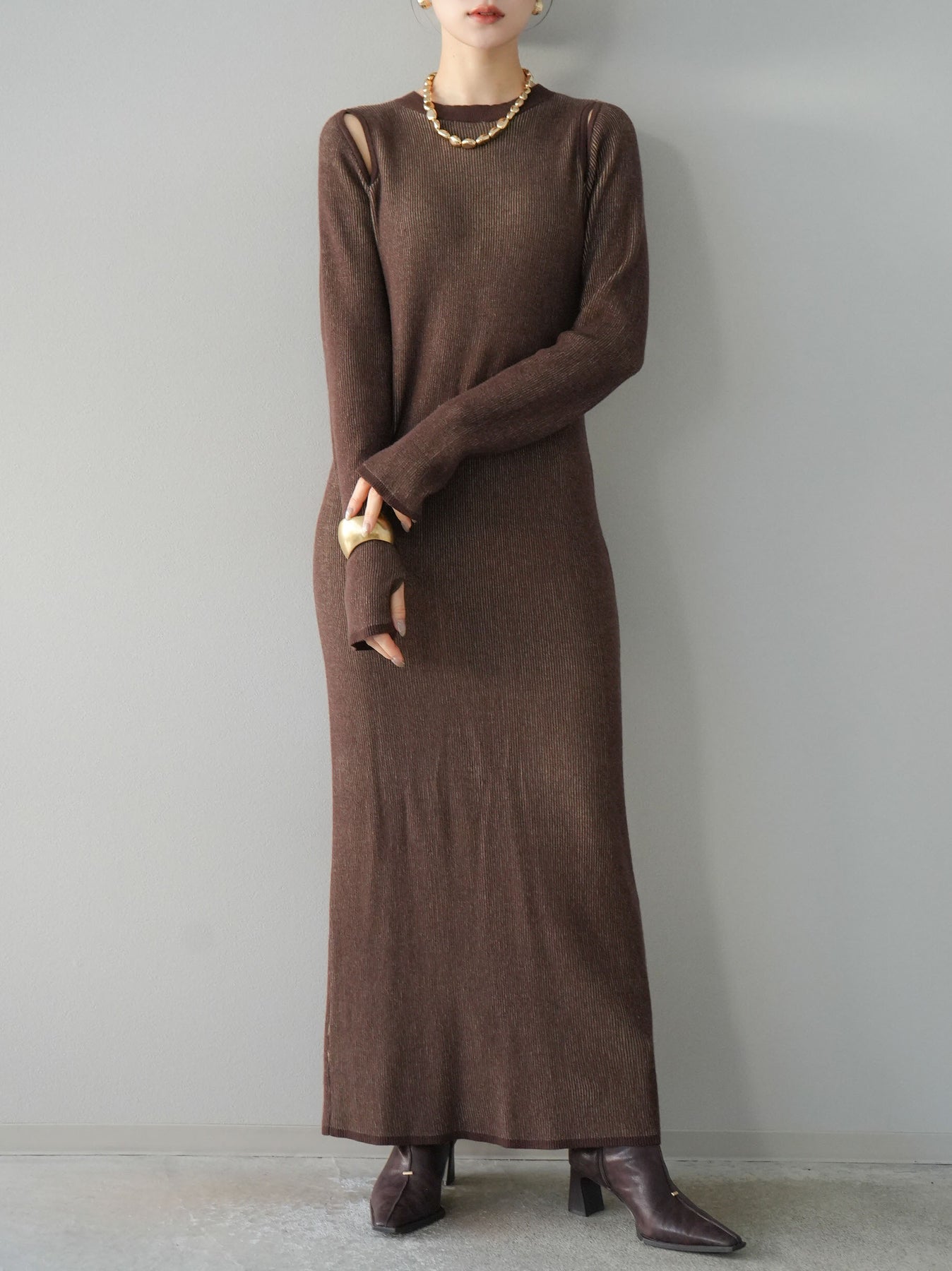 [予約]カットアウト配色リブニットワンピース/ブラウン×ライトグリーン