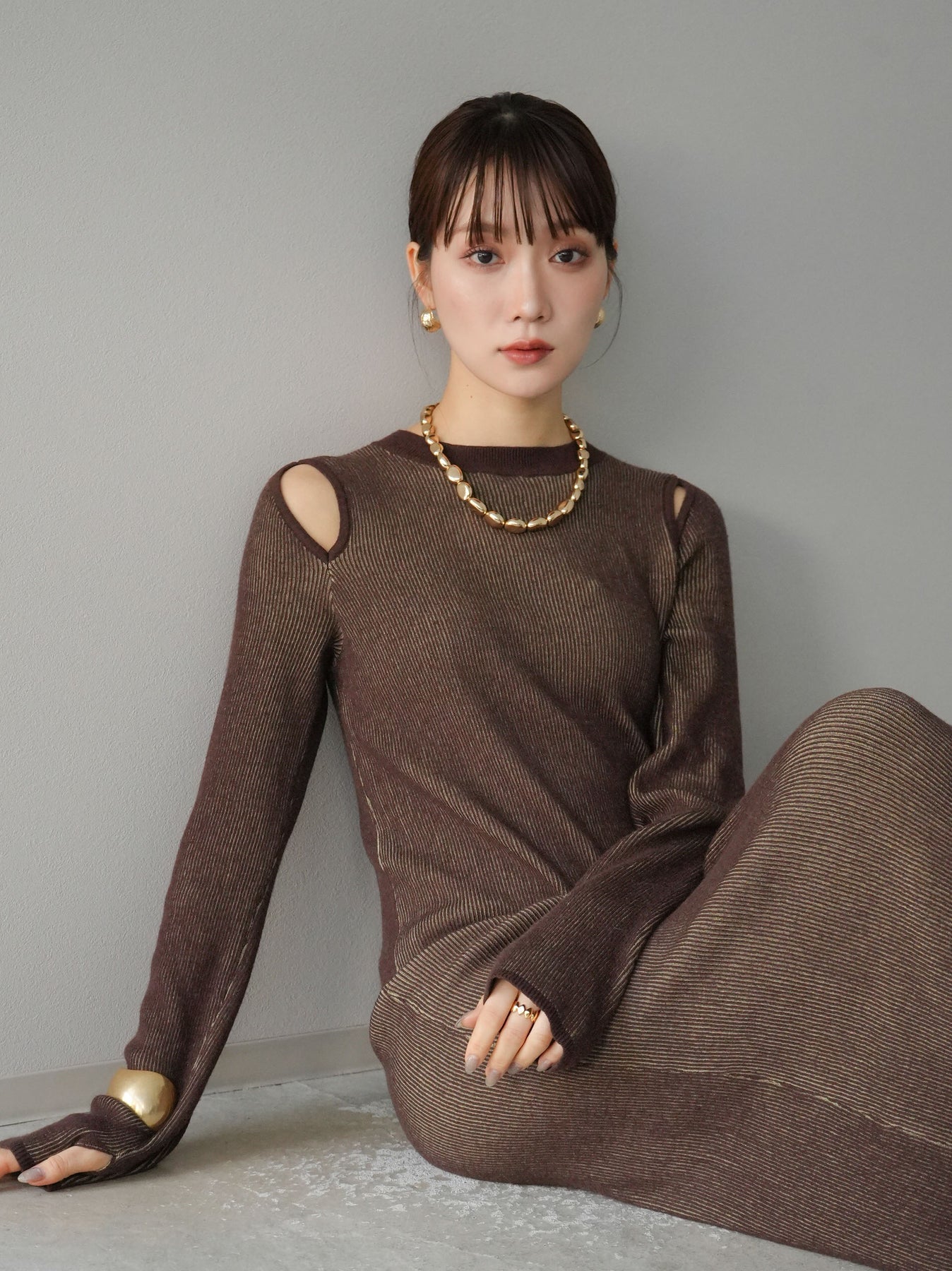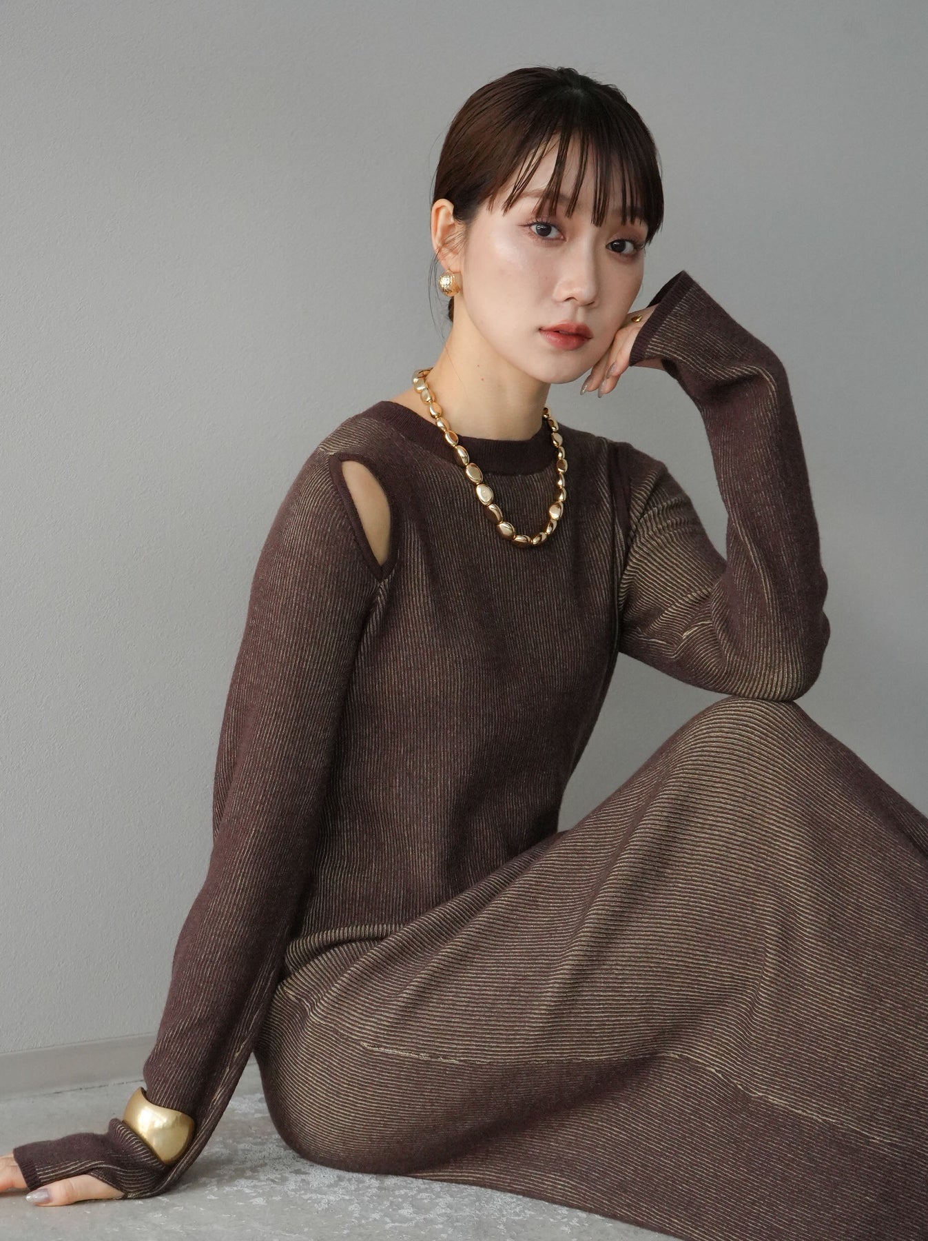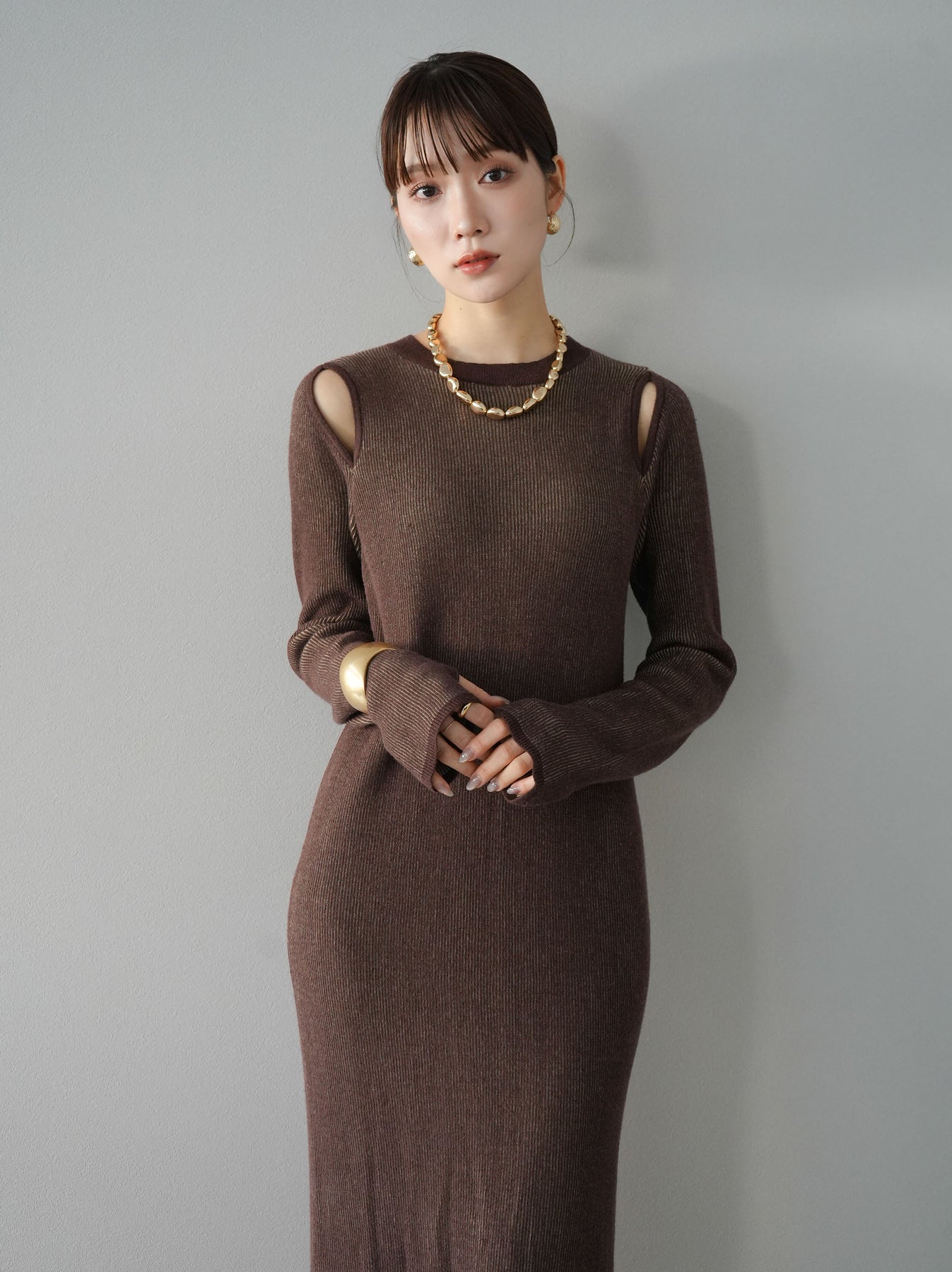 トレンド感あふれるカットアウトディテールがポイントのリブニットワンピース。配色がアクセントとなり、シンプルながらも存在感のあるデザインです。柔らかな素材で着心地も抜群。シーンを問わず、スタイリッシュに決まります。 ※ボトムス、キャミソール(インナー)以外の商品は一律でインナーは付属していません