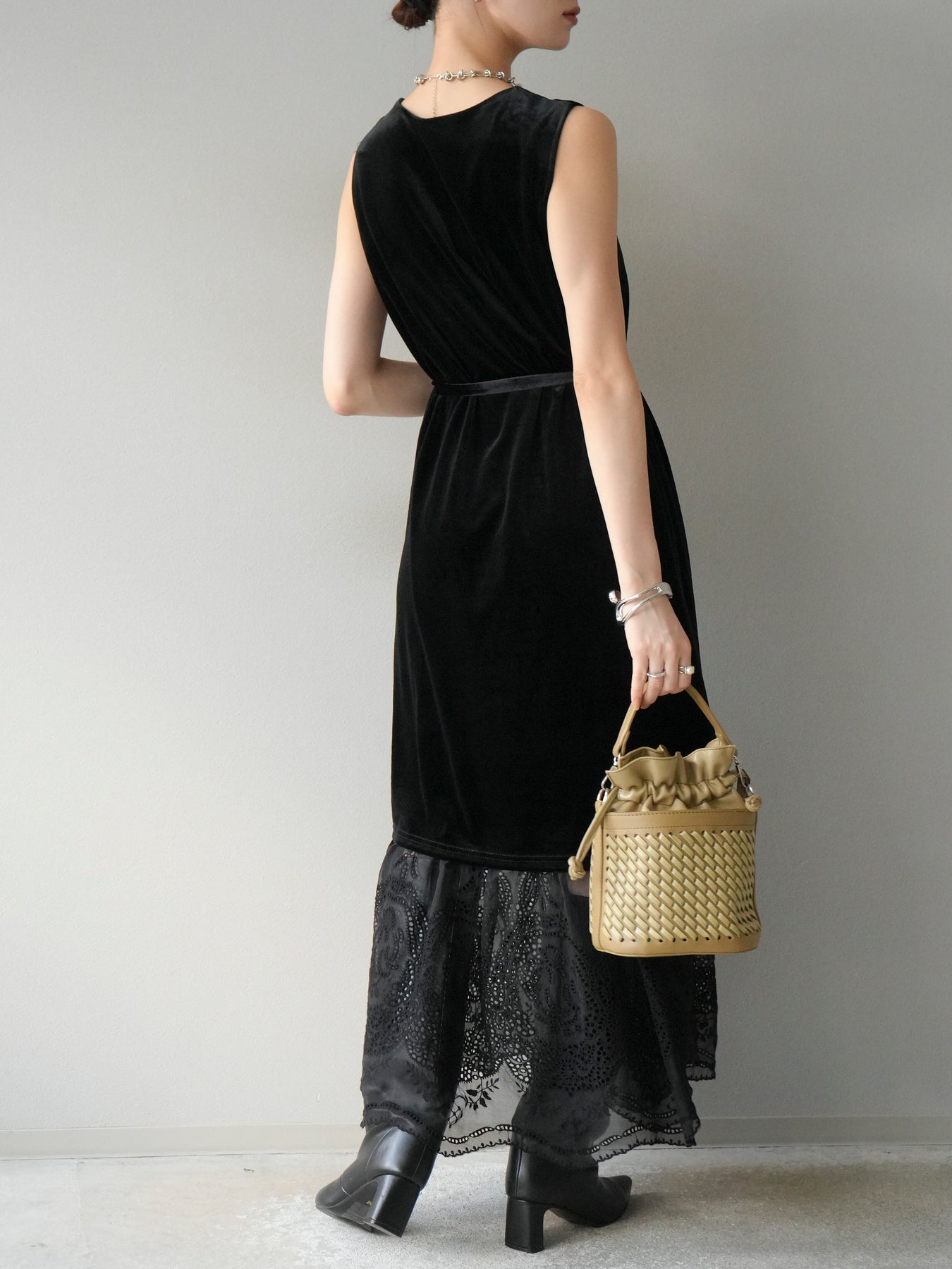 肩幅34cm バスト92cm アームホール42cm 着丈127cm レース部分のみ透け感あり ベロア部分のみ伸縮性あり 左脇ファスナーあり レース部分取り外し不可 付属リボン全長162cm