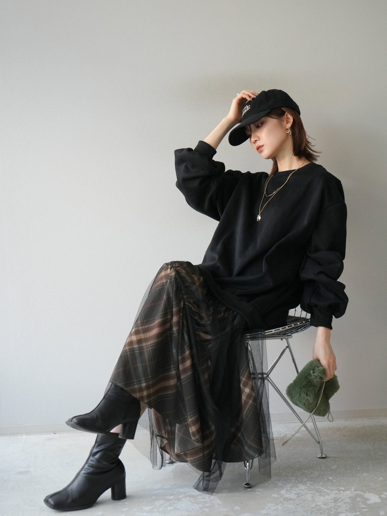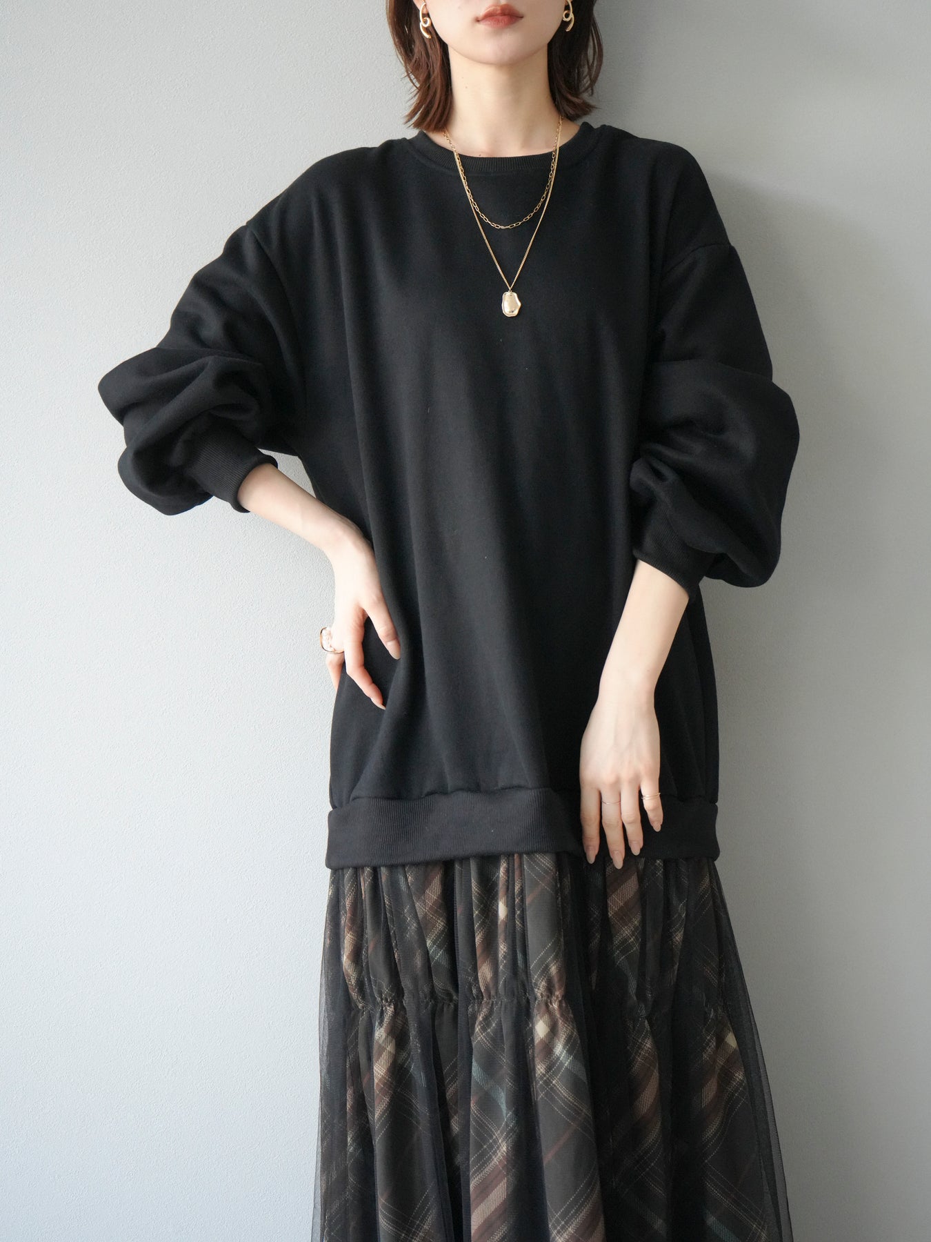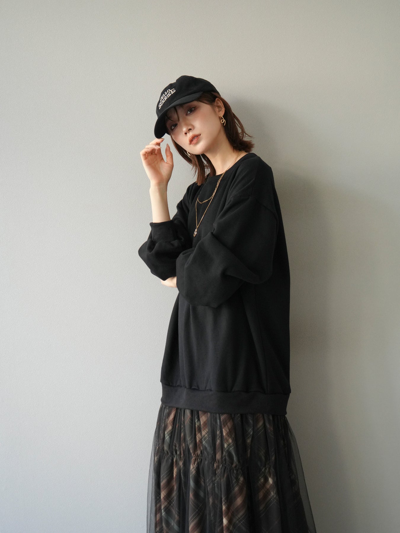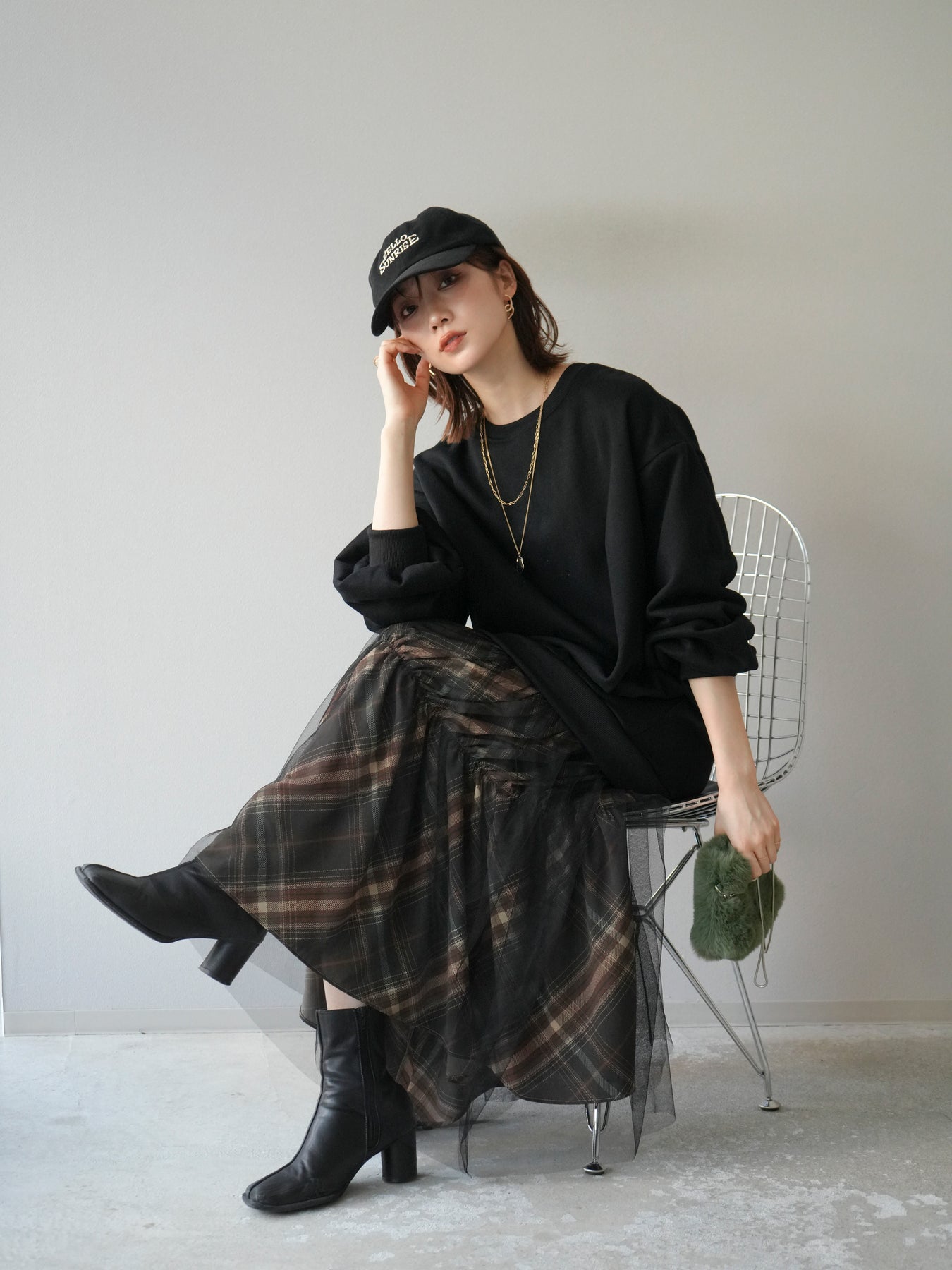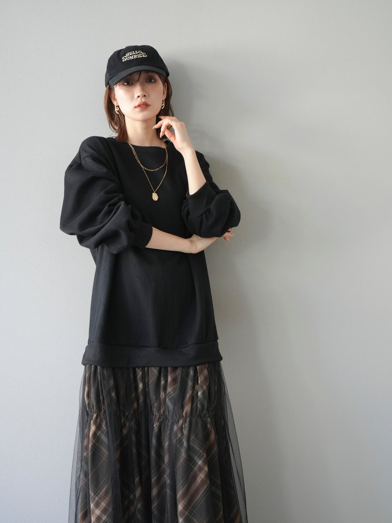 [予約]スウェットドッキングチェック柄レイヤードワンピース/ブラック