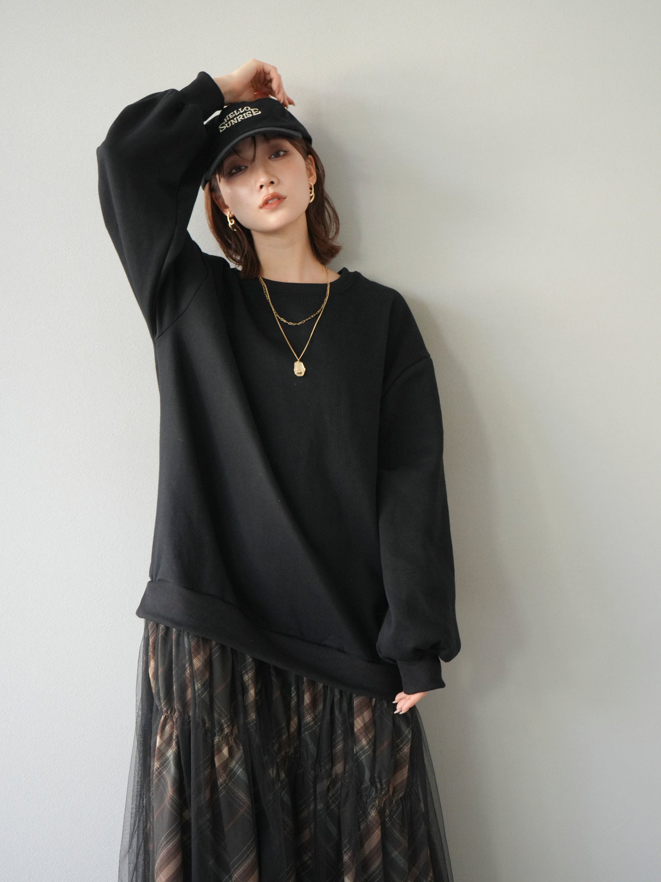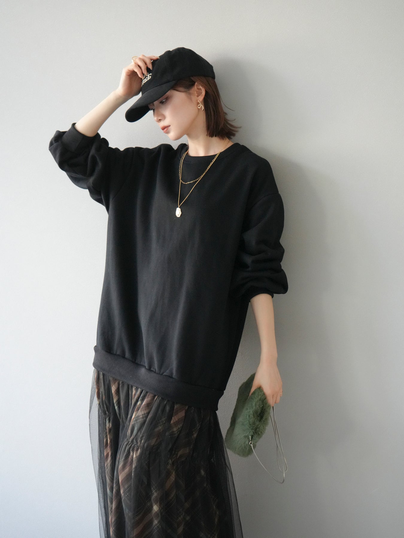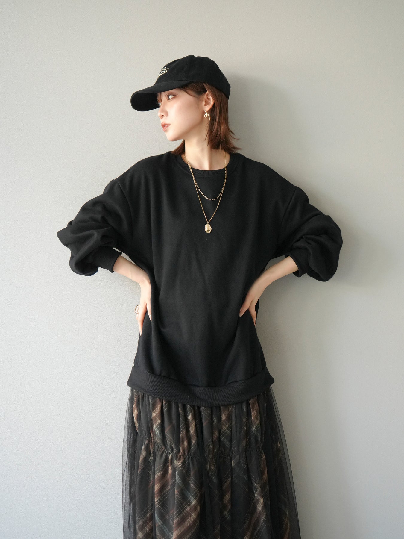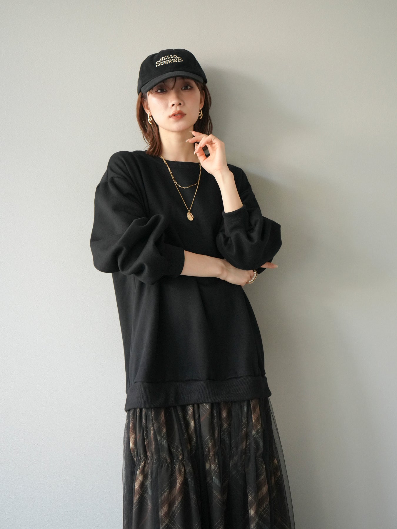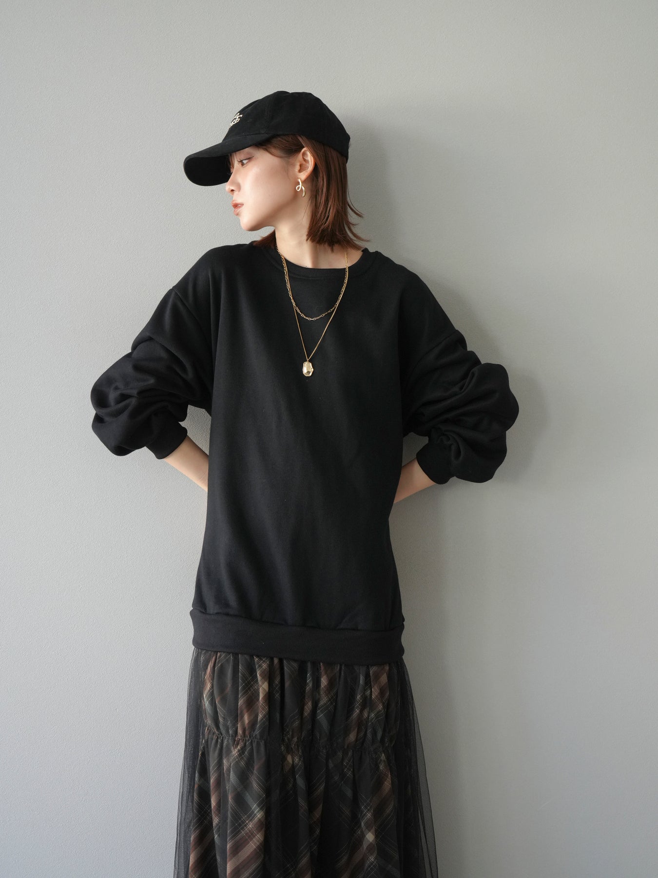 [予約]スウェットドッキングチェック柄レイヤードワンピース/ブラック