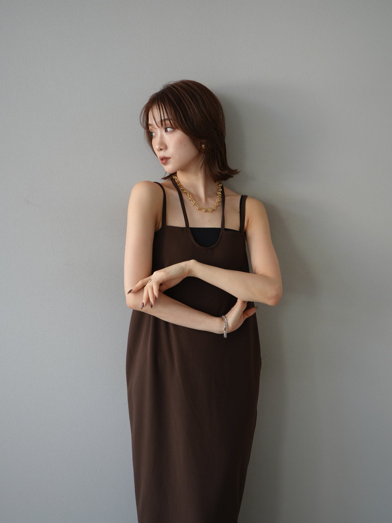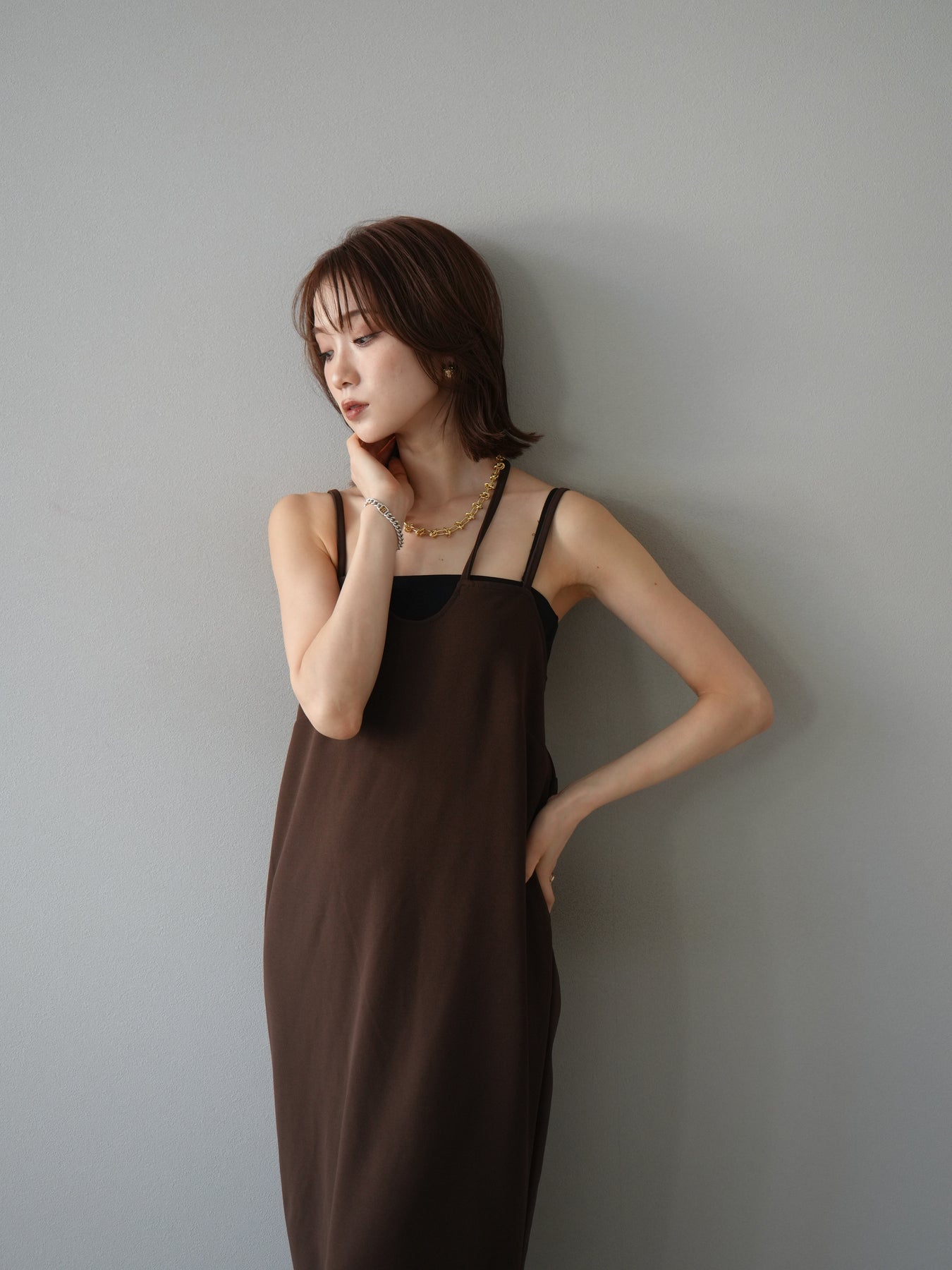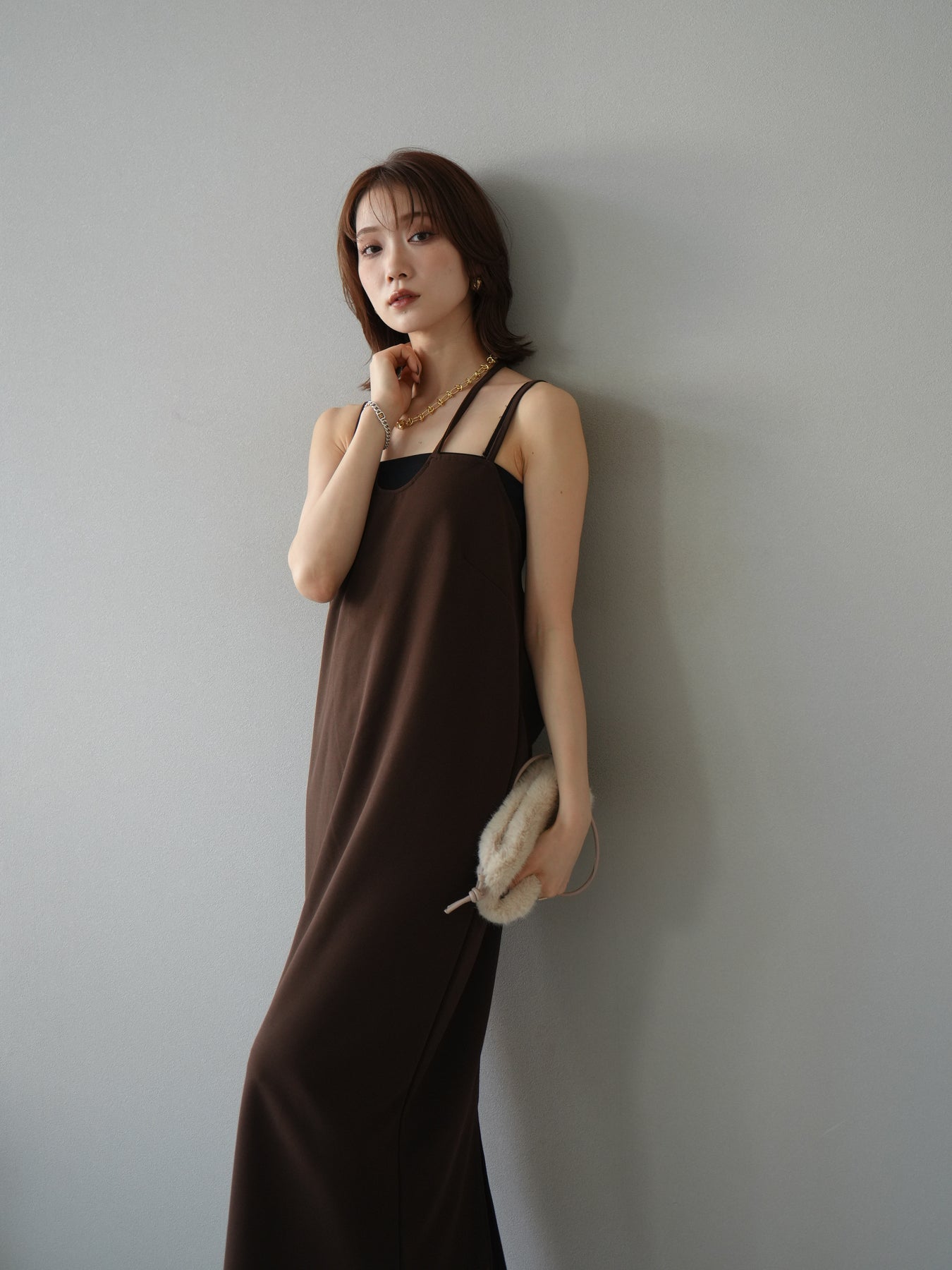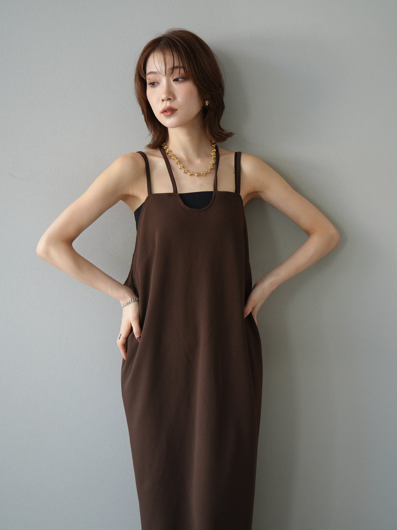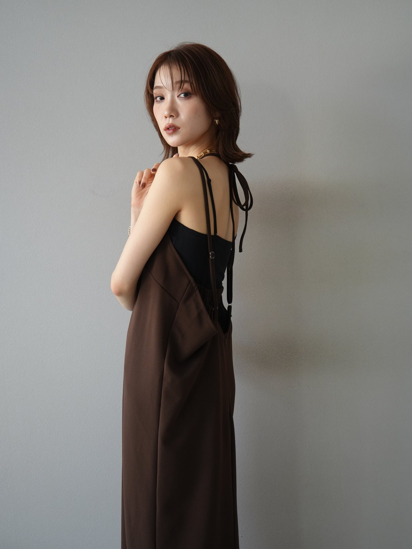 華奢なストラップとホルターデザインが女性らしさを引き立てるキャミワンピース。程よく身体に沿うIラインシルエットで、すっきりとした印象に仕上げました。バックリボン仕様でサイズ調整が可能なため、体型に合わせたフィット感で着用できます。インナーを変えることでシーズンレスに楽しめ、Tシャツやニットを重ねればカジュアルにもきれいめにもアレンジ自在。シンプルながらもディテールにこだわった大人のワンピースです。 ※ボトムス、キャミソール(インナー)以外の商品は一律でインナーは付属していません。