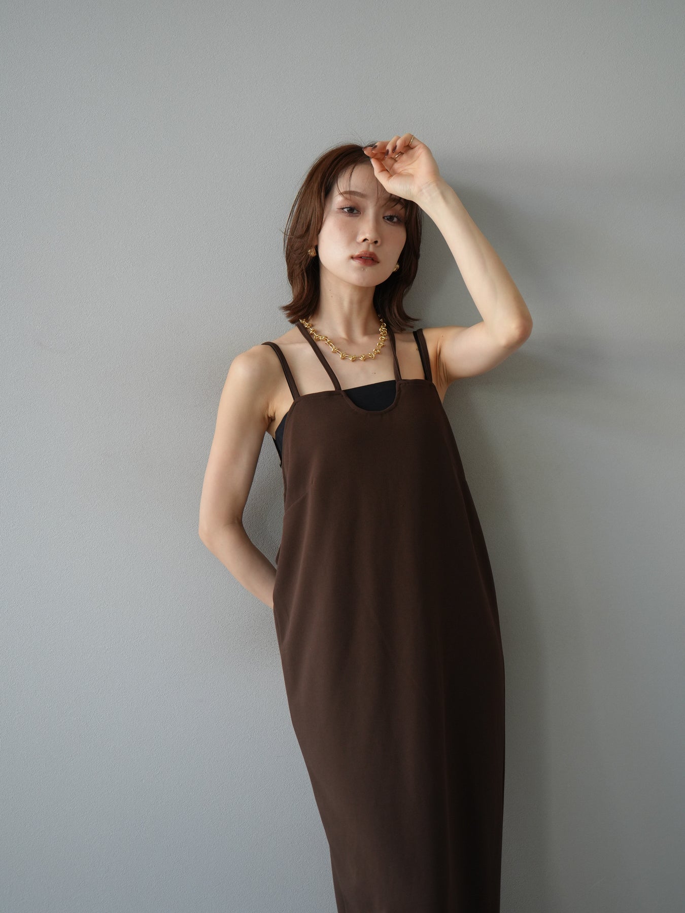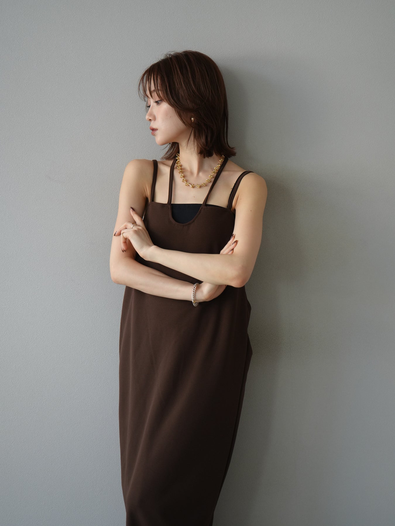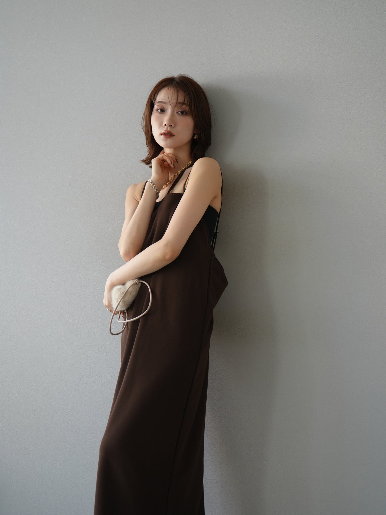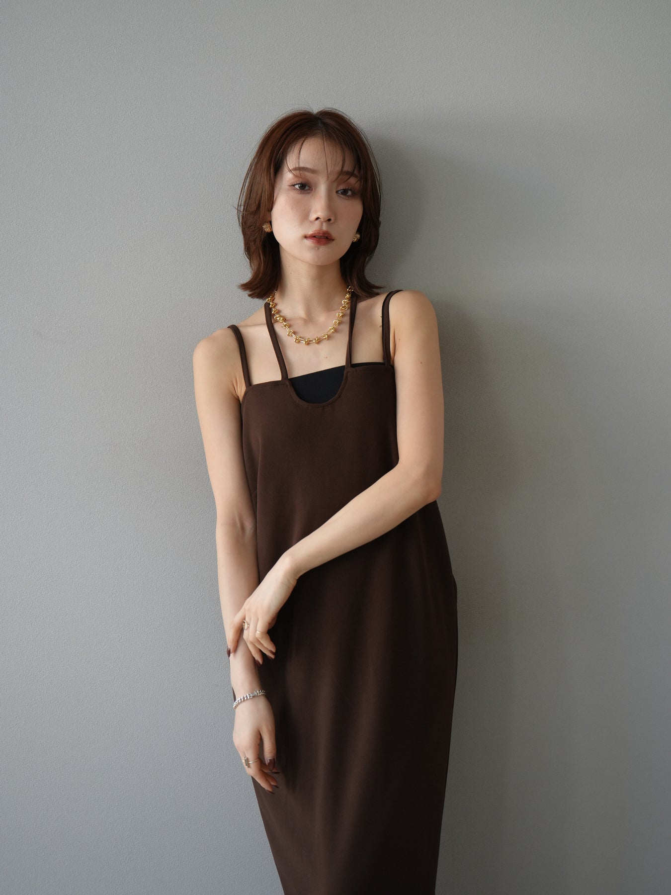華奢なストラップとホルターデザインが女性らしさを引き立てるキャミワンピース。程よく身体に沿うIラインシルエットで、すっきりとした印象に仕上げました。バックリボン仕様でサイズ調整が可能なため、体型に合わせたフィット感で着用できます。インナーを変えることでシーズンレスに楽しめ、Tシャツやニットを重ねればカジュアルにもきれいめにもアレンジ自在。シンプルながらもディテールにこだわった大人のワンピースです。 ※ボトムス、キャミソール(インナー)以外の商品は一律でインナーは付属していません。