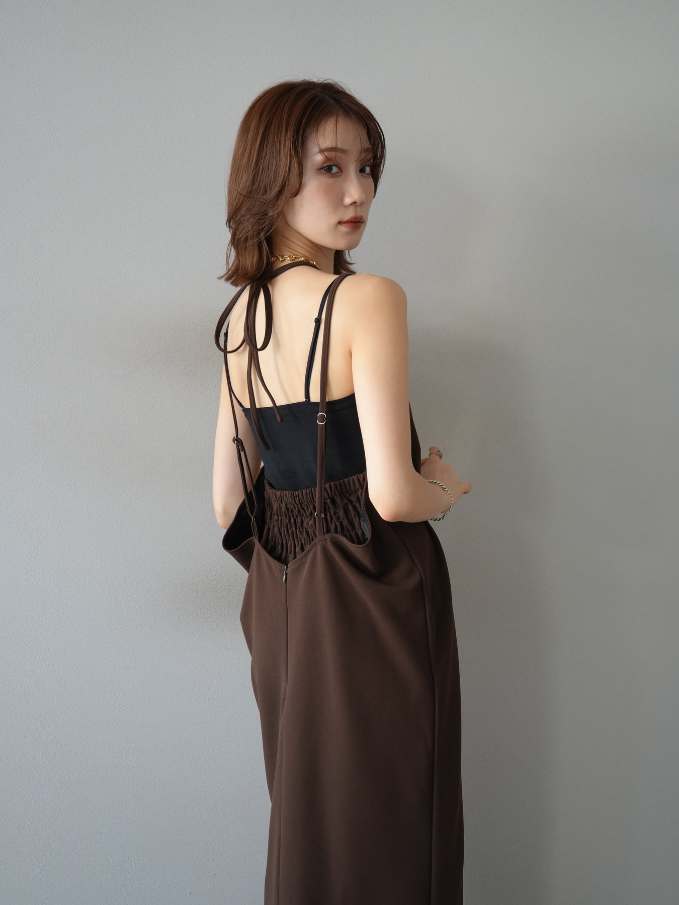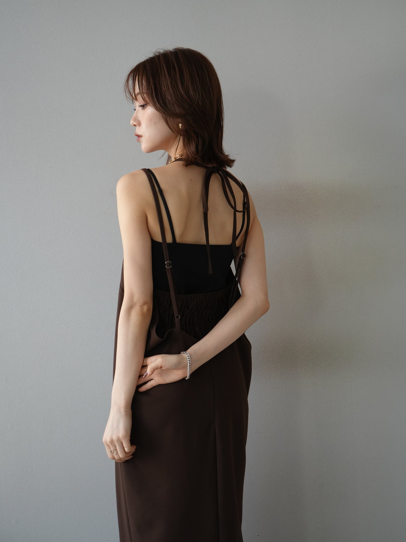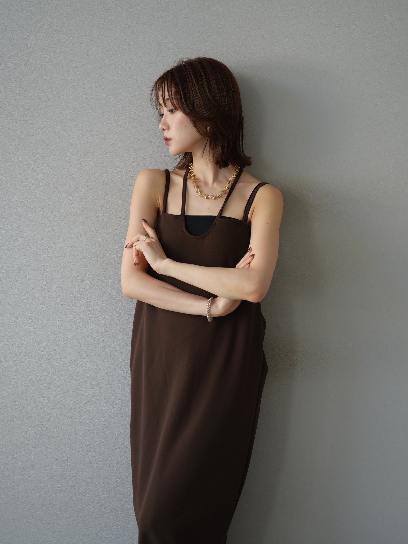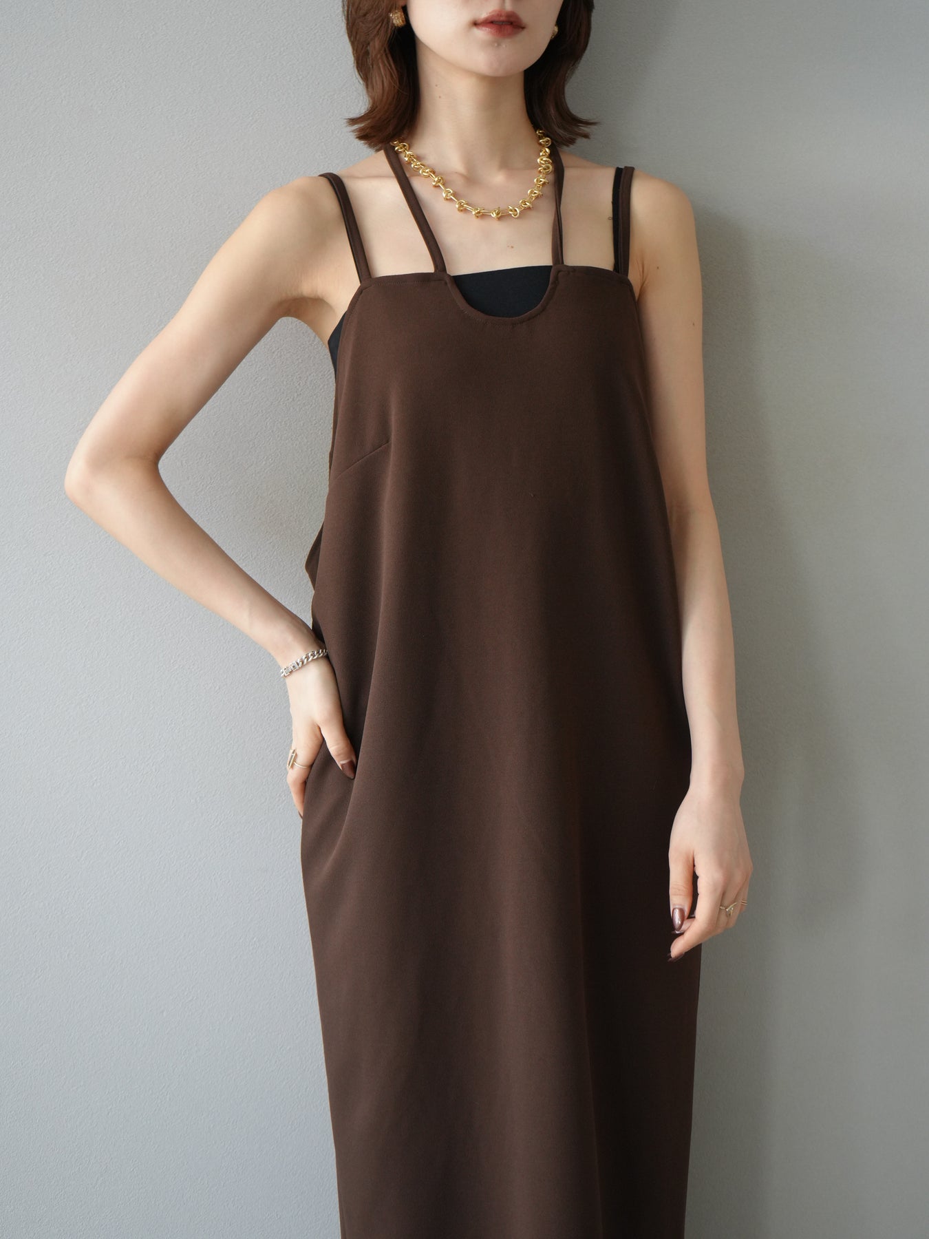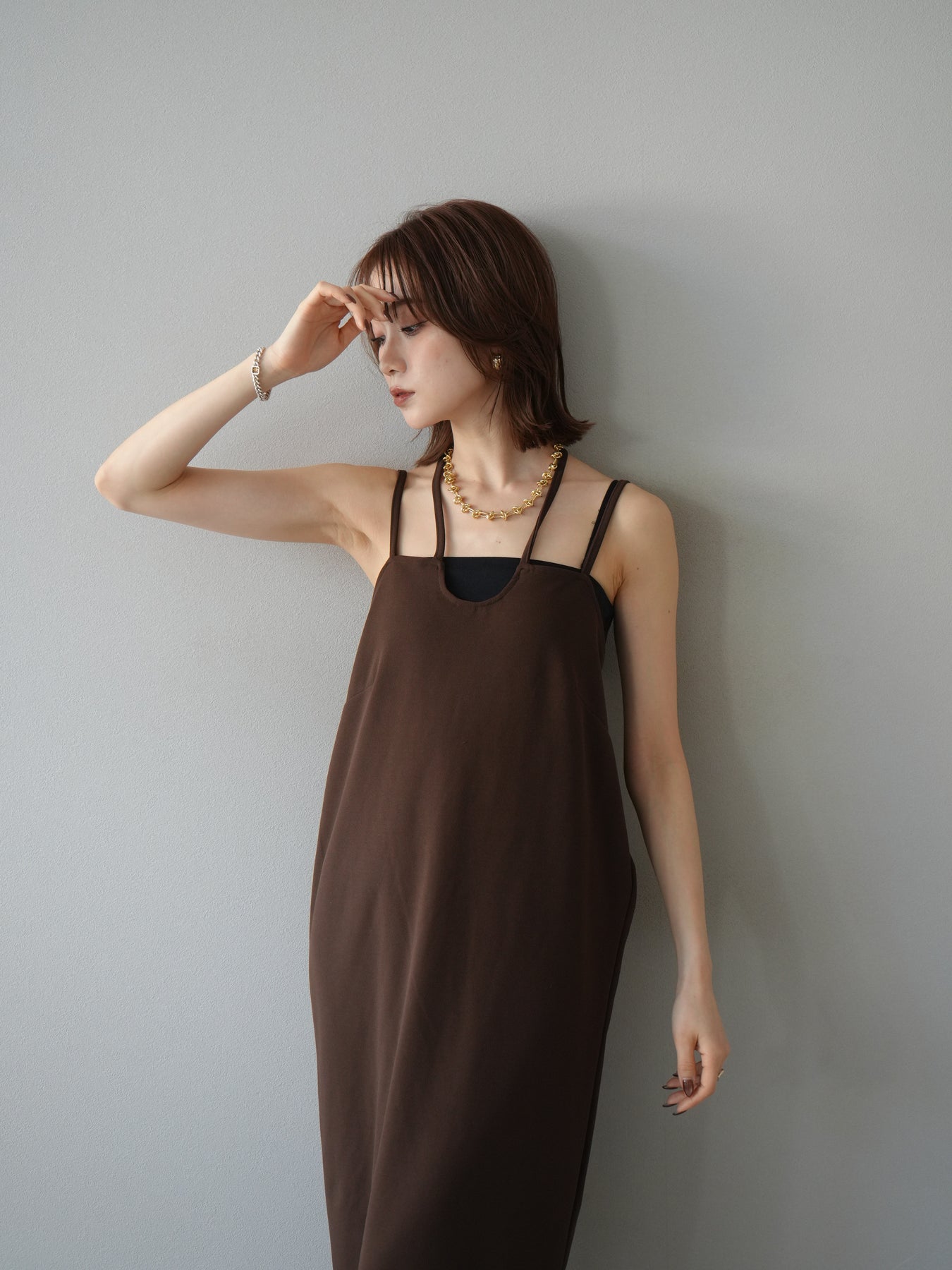 華奢なストラップとホルターデザインが女性らしさを引き立てるキャミワンピース。程よく身体に沿うIラインシルエットで、すっきりとした印象に仕上げました。バックリボン仕様でサイズ調整が可能なため、体型に合わせたフィット感で着用できます。インナーを変えることでシーズンレスに楽しめ、Tシャツやニットを重ねればカジュアルにもきれいめにもアレンジ自在。シンプルながらもディテールにこだわった大人のワンピースです。 ※ボトムス、キャミソール(インナー)以外の商品は一律でインナーは付属していません。
