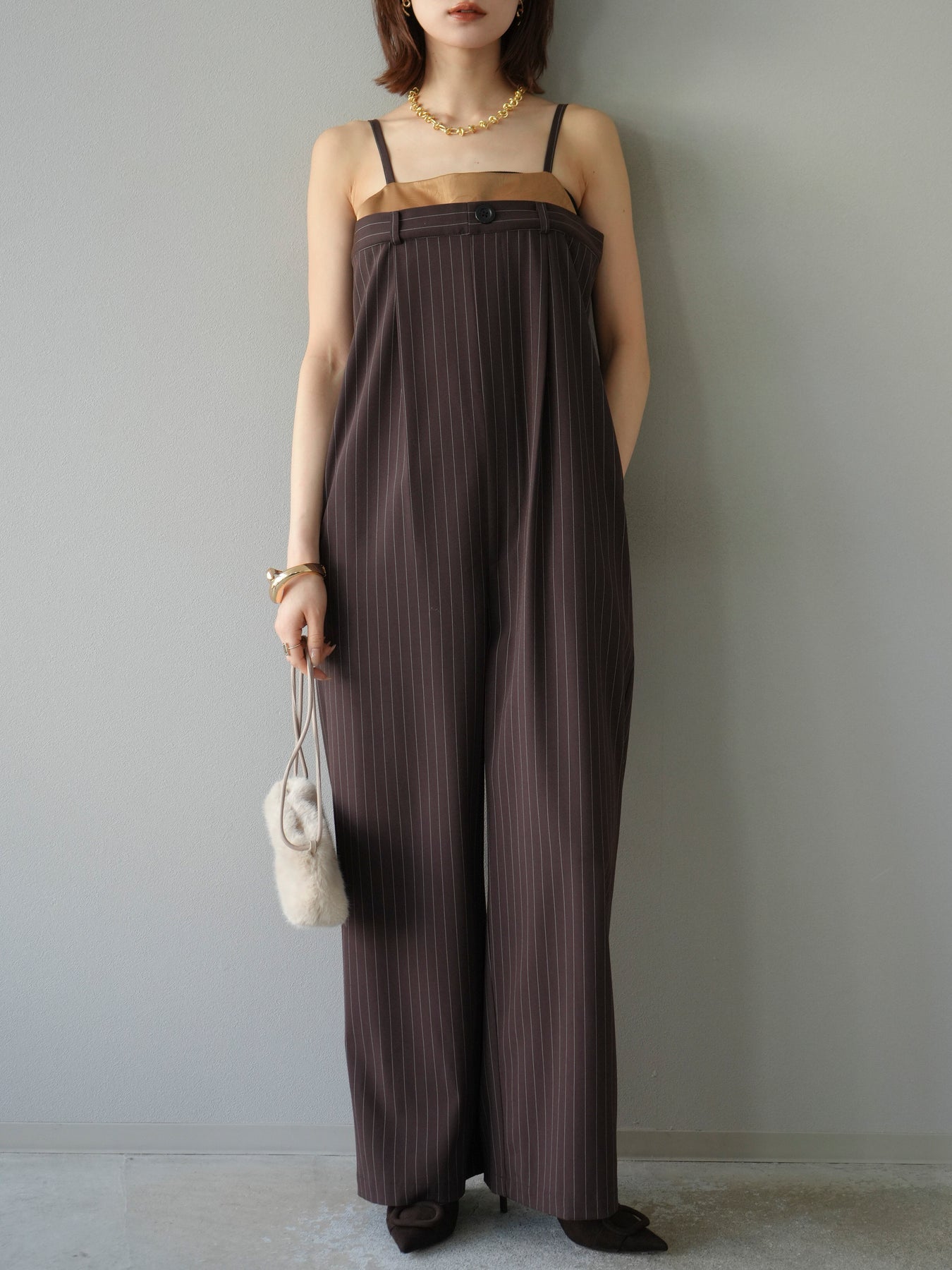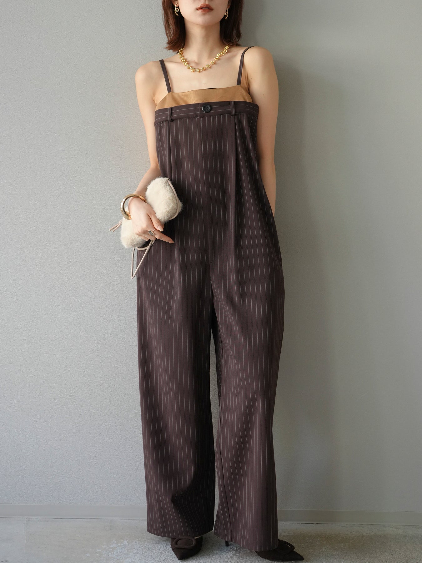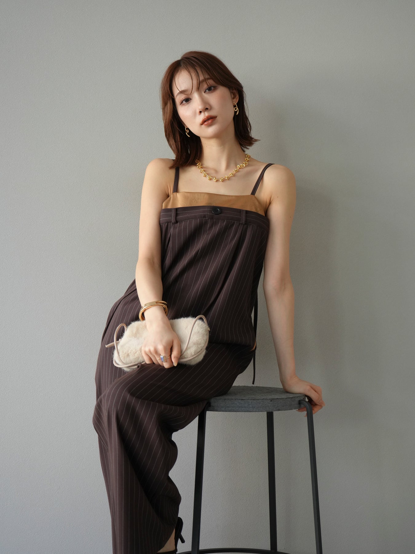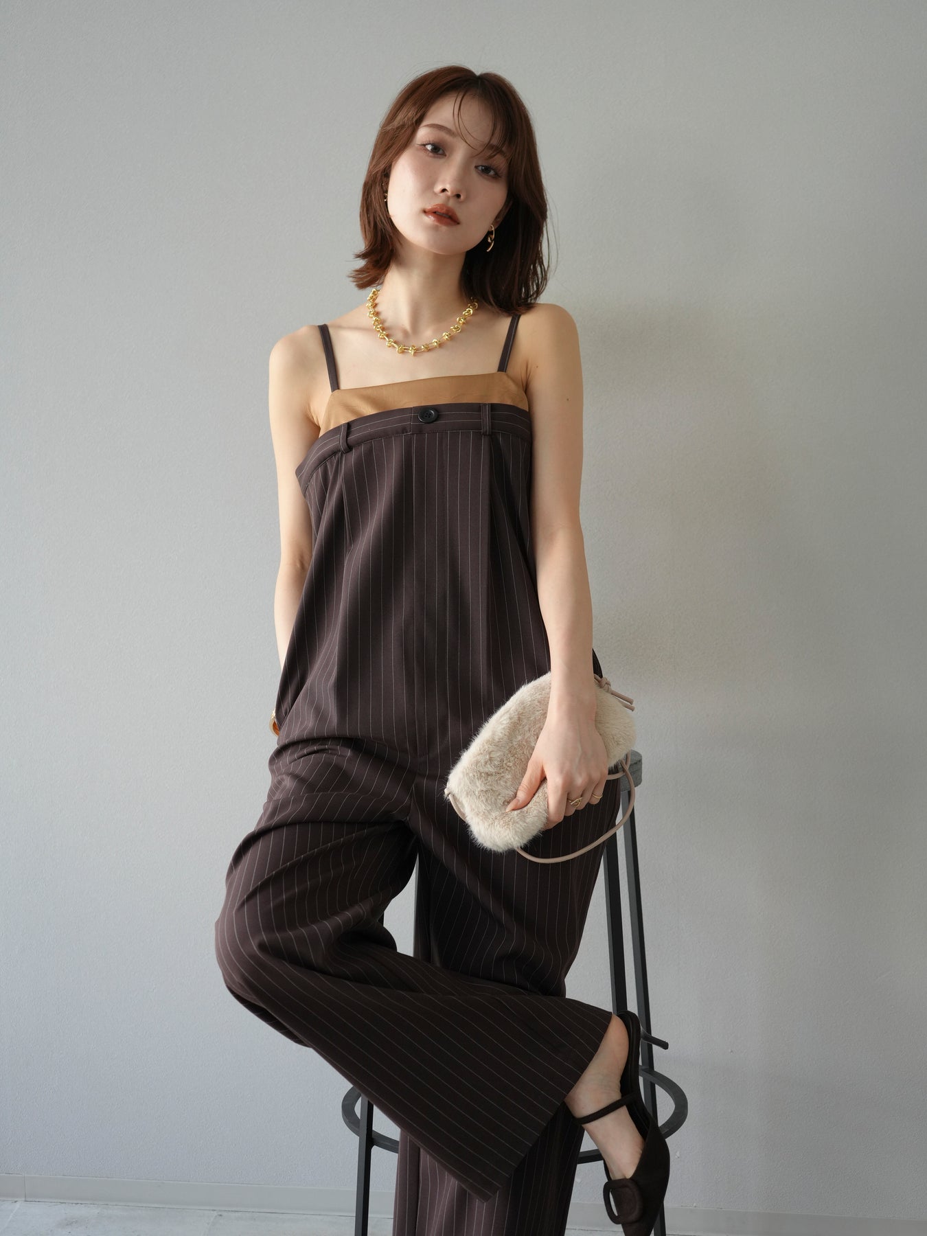 [予約]サテン切替ピンストライプサロペット/ブラウン