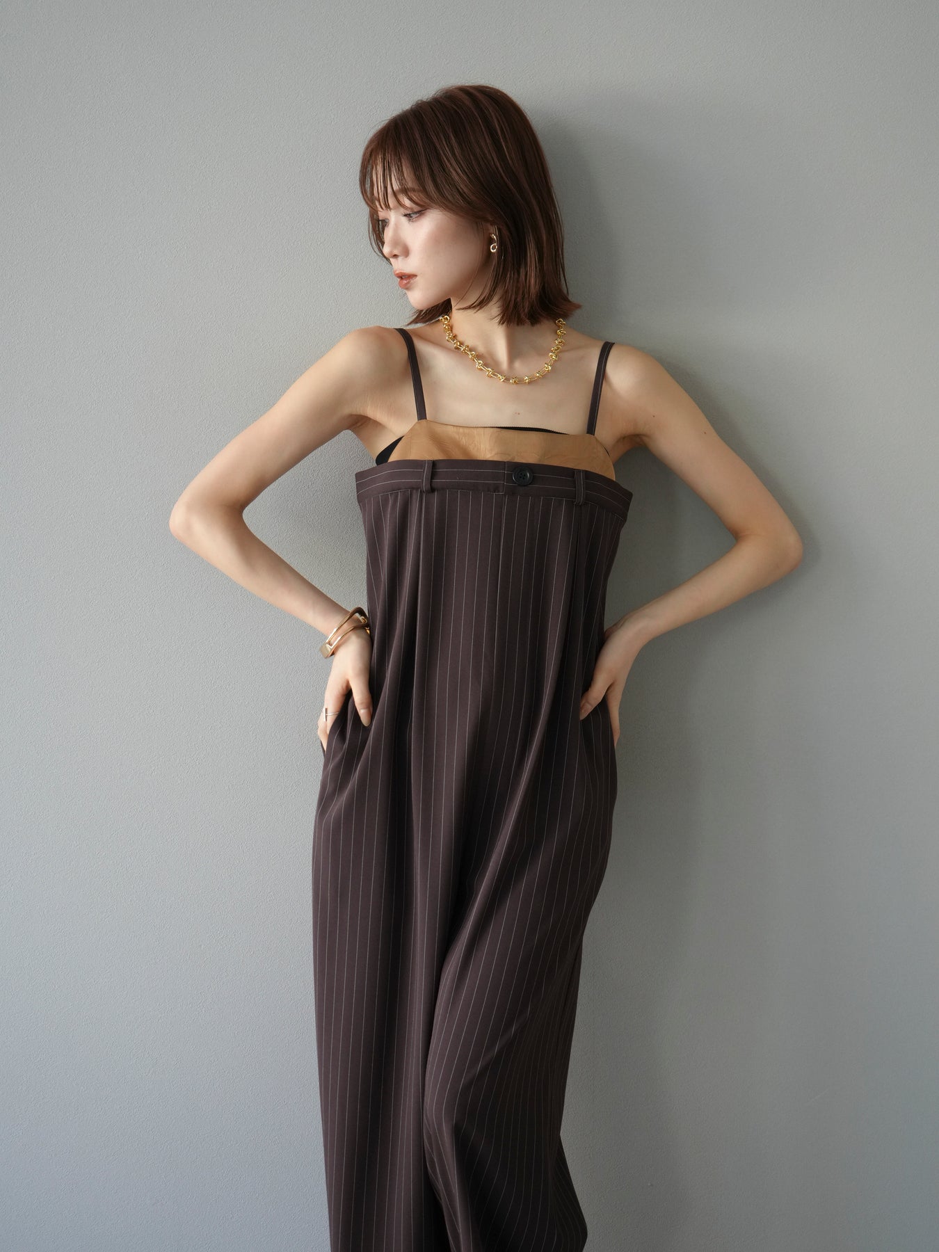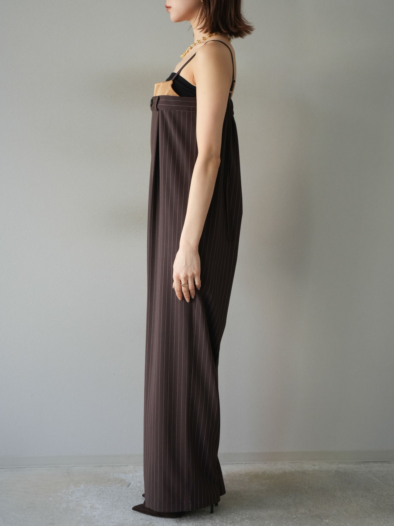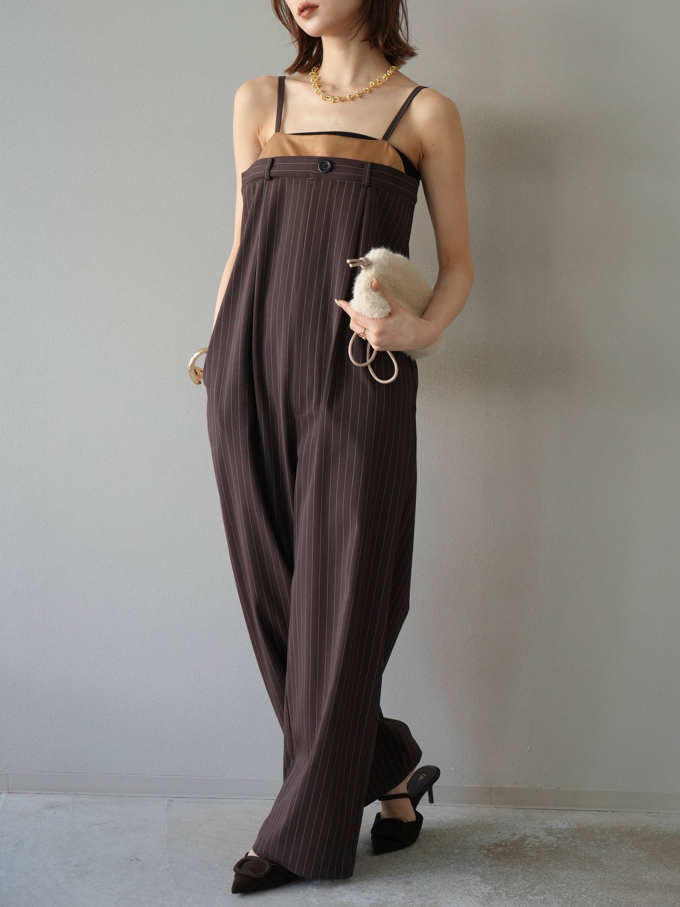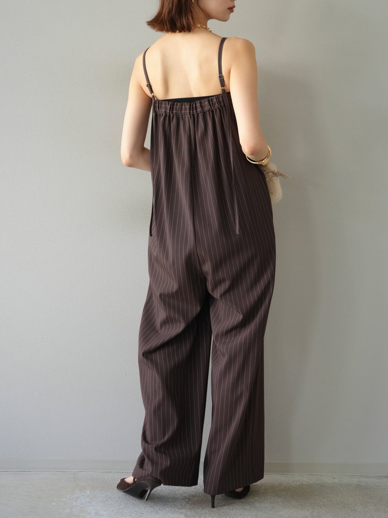 [予約]サテン切替ピンストライプサロペット/ブラウン