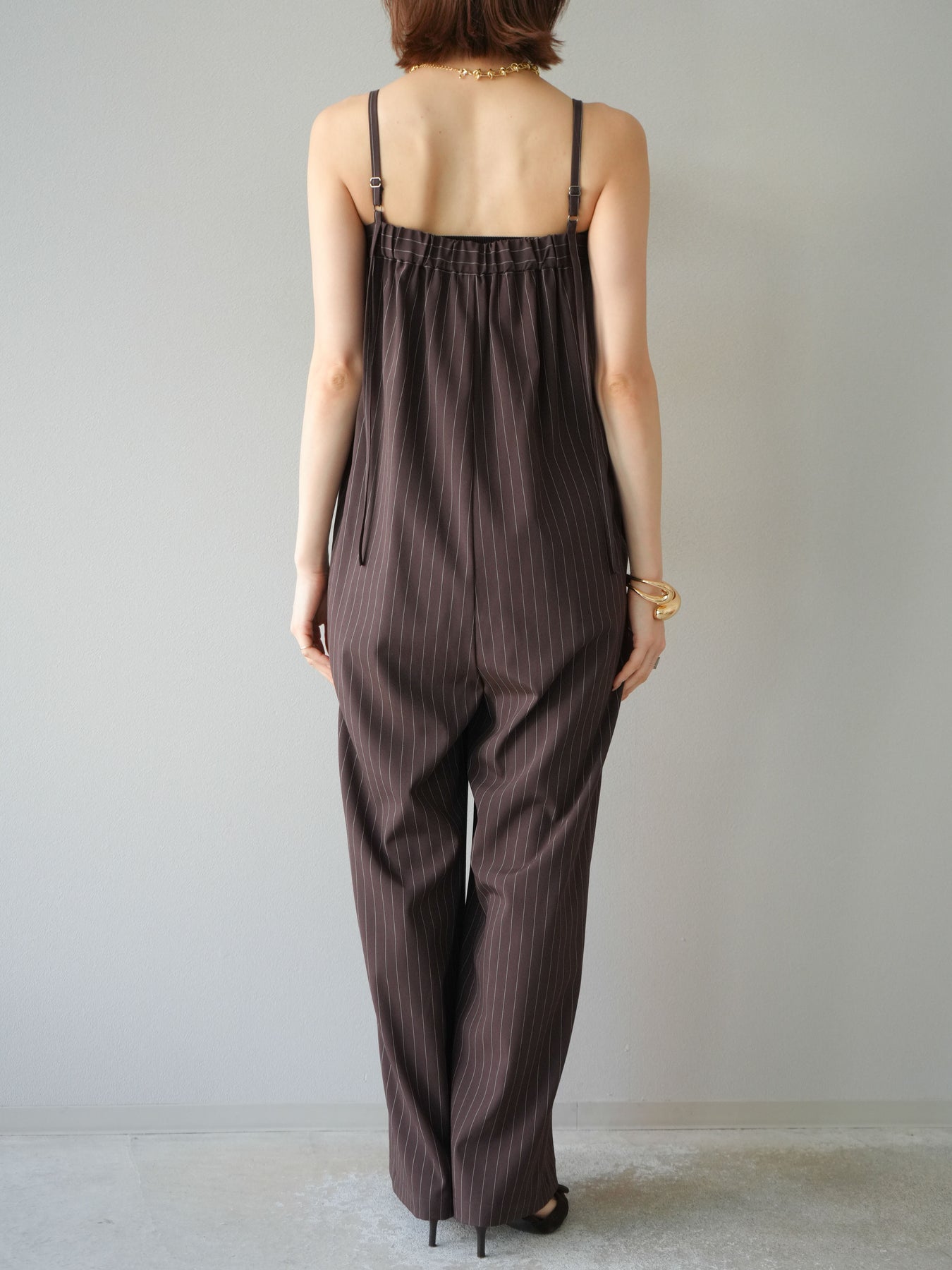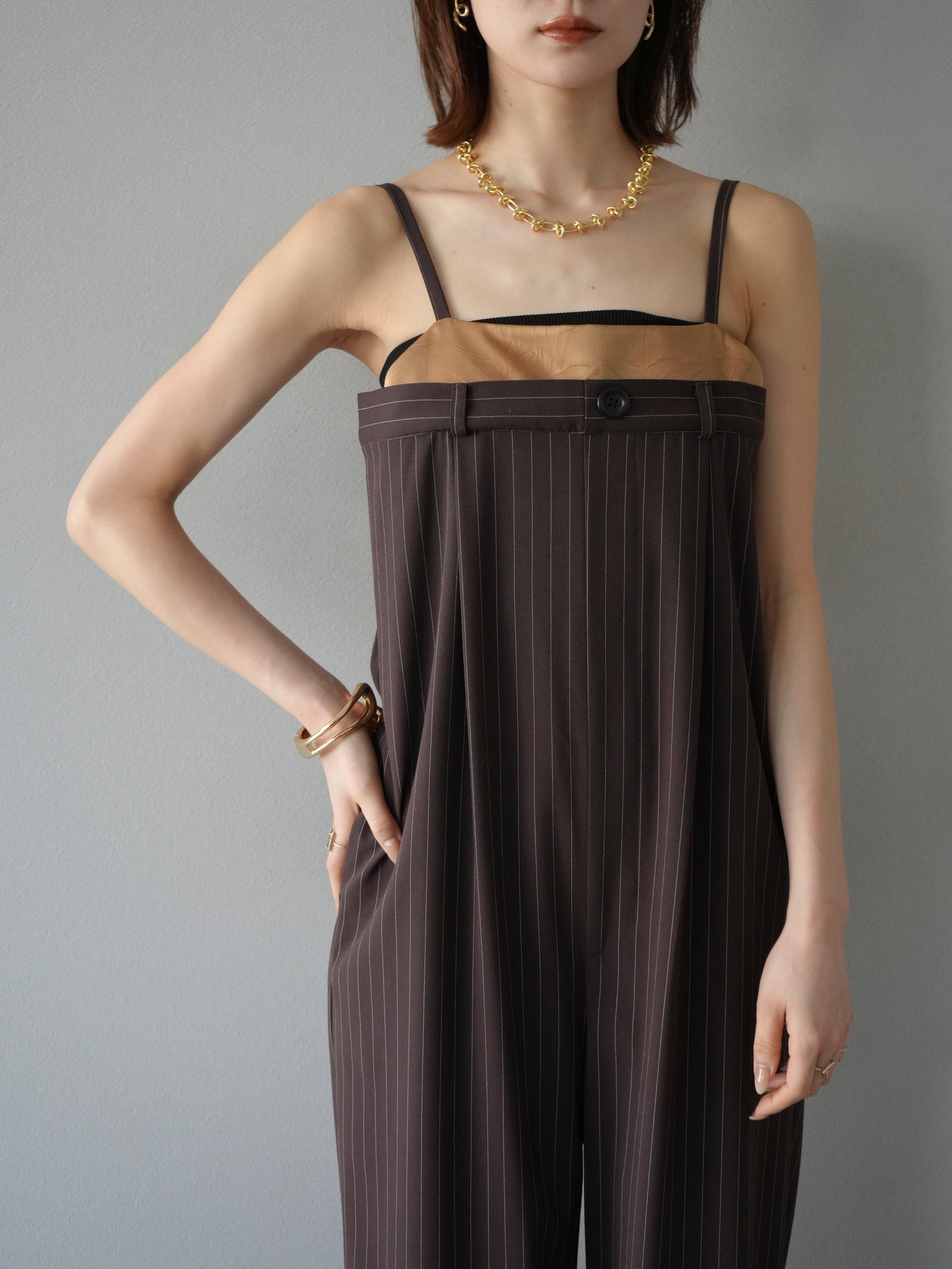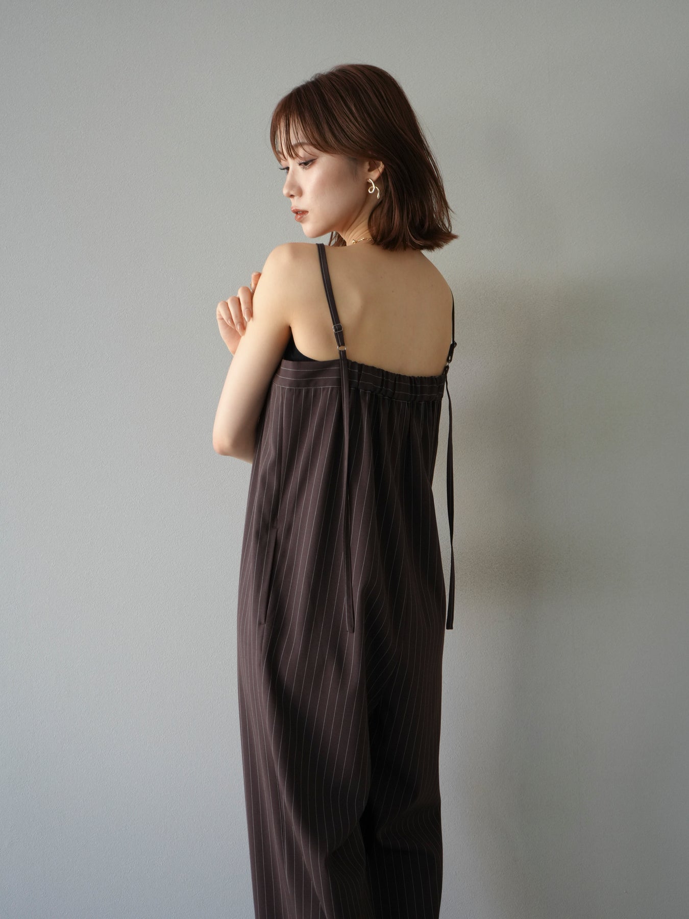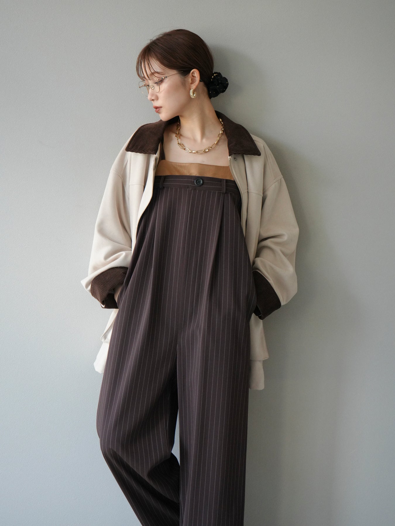 [予約]サテン切替ピンストライプサロペット/ブラウン