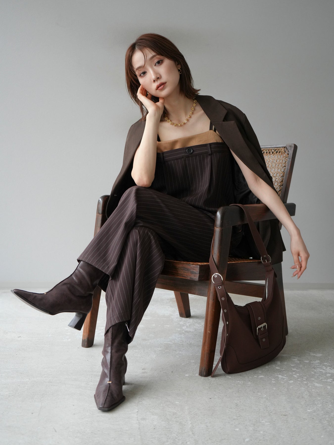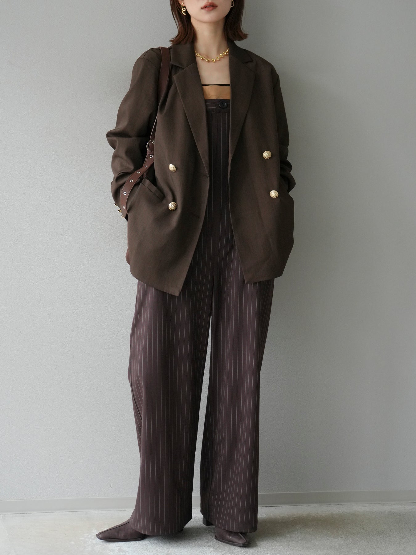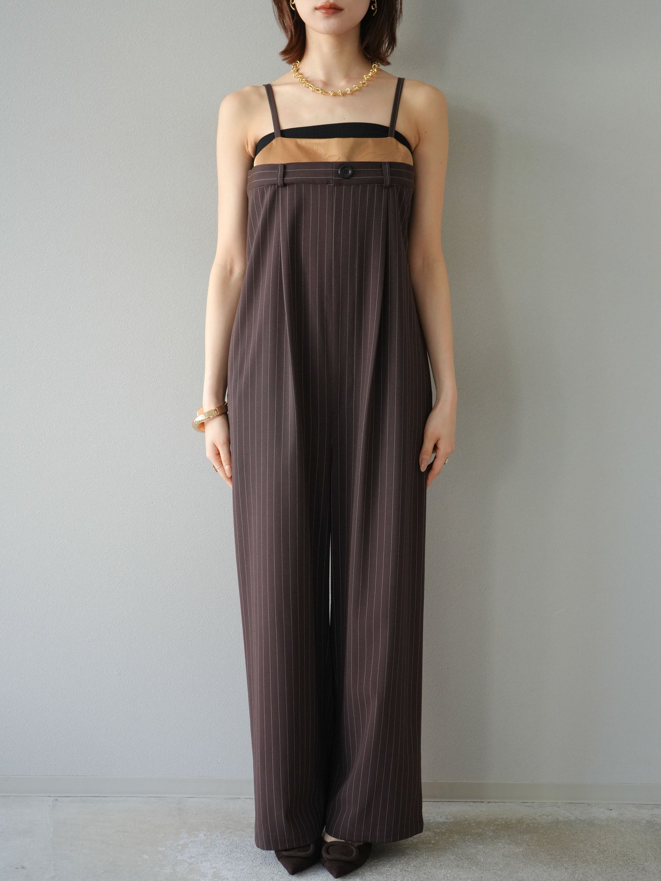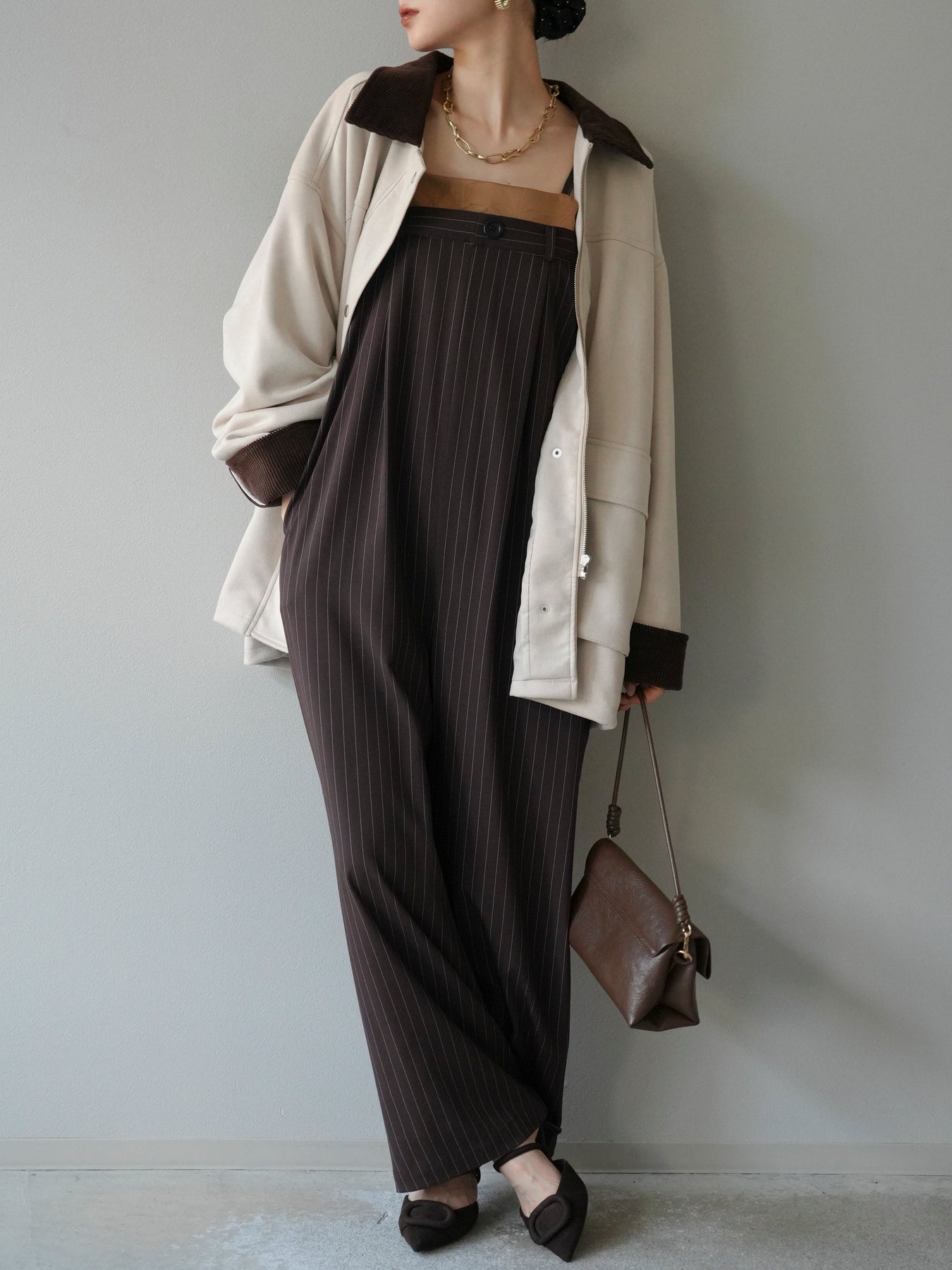 [予約]サテン切替ピンストライプサロペット/ブラウン