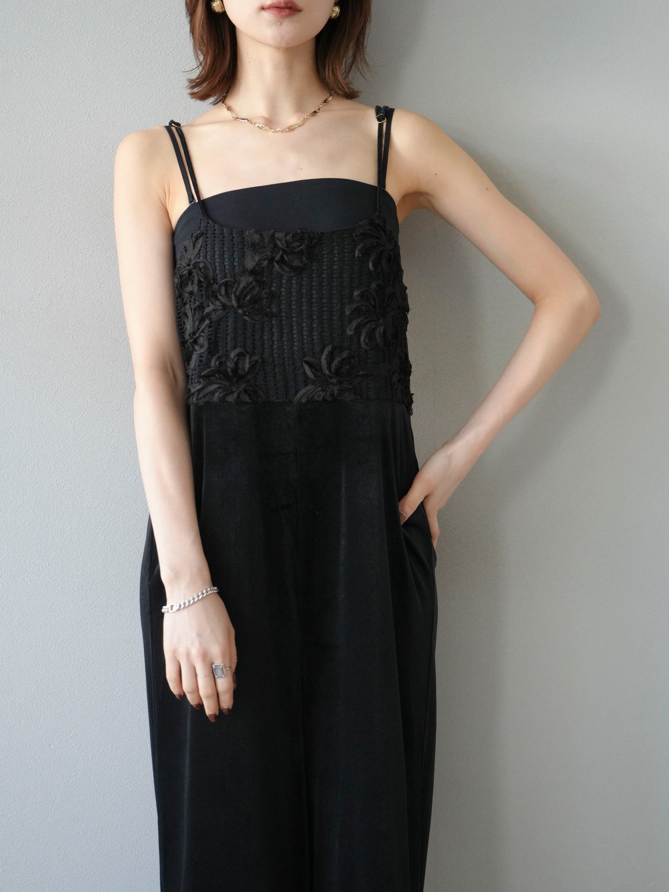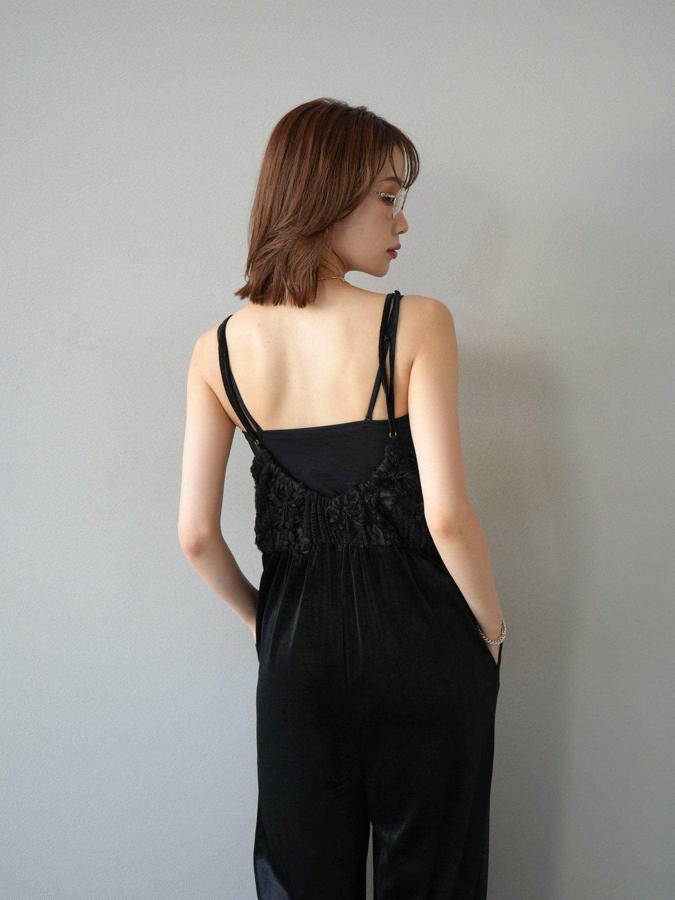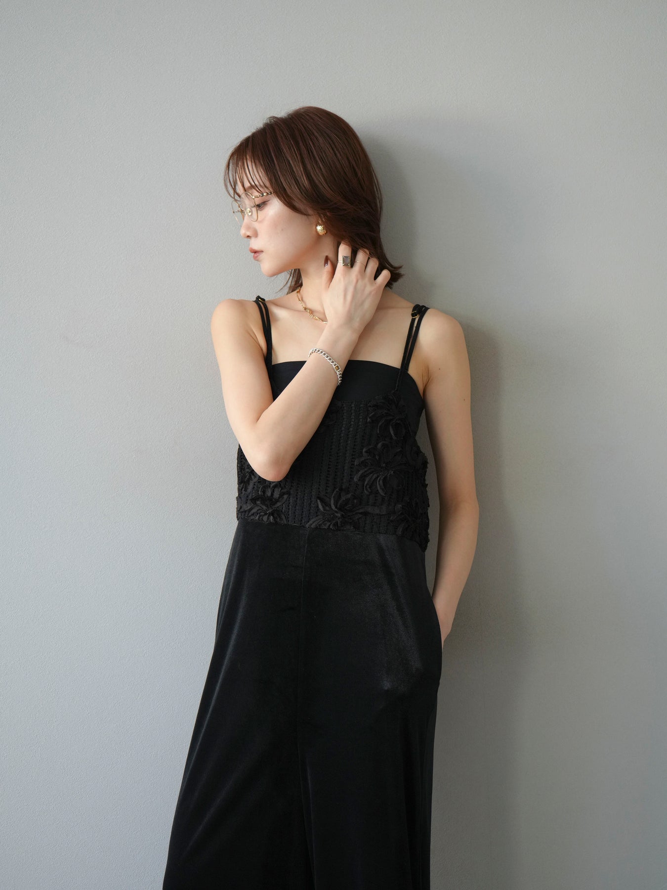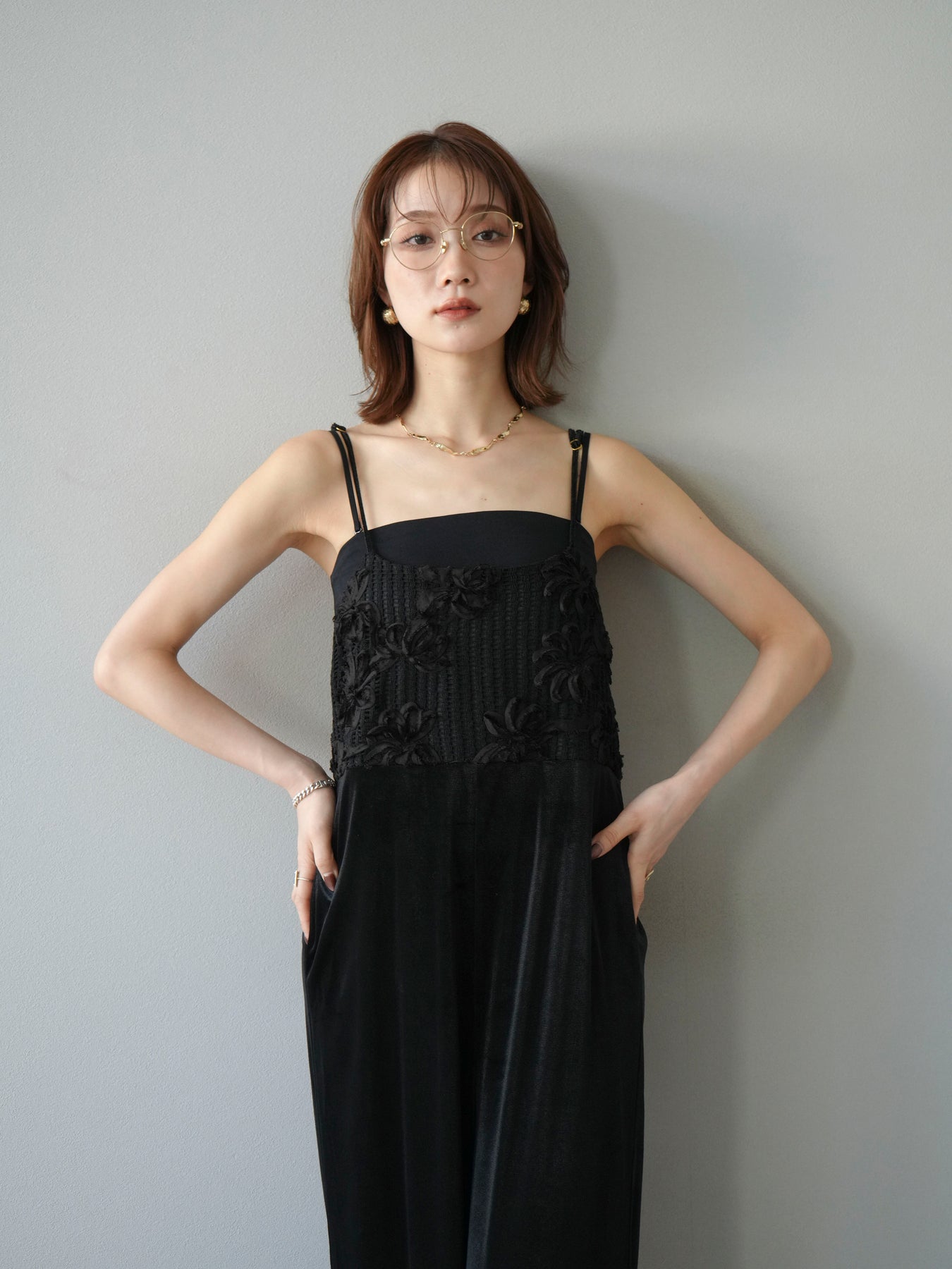 [予約]ジャガード切替ベロアサロペット/ブラック