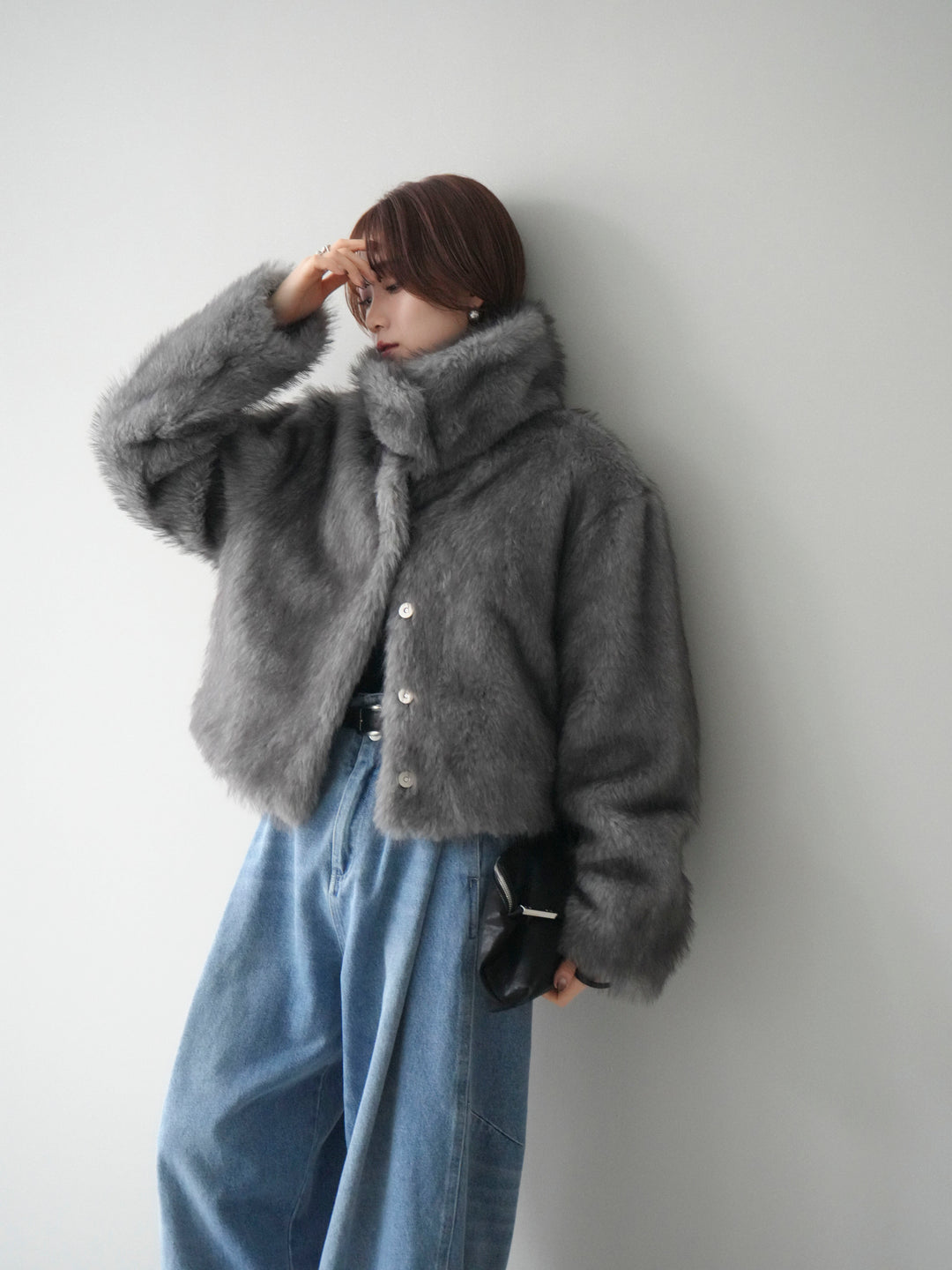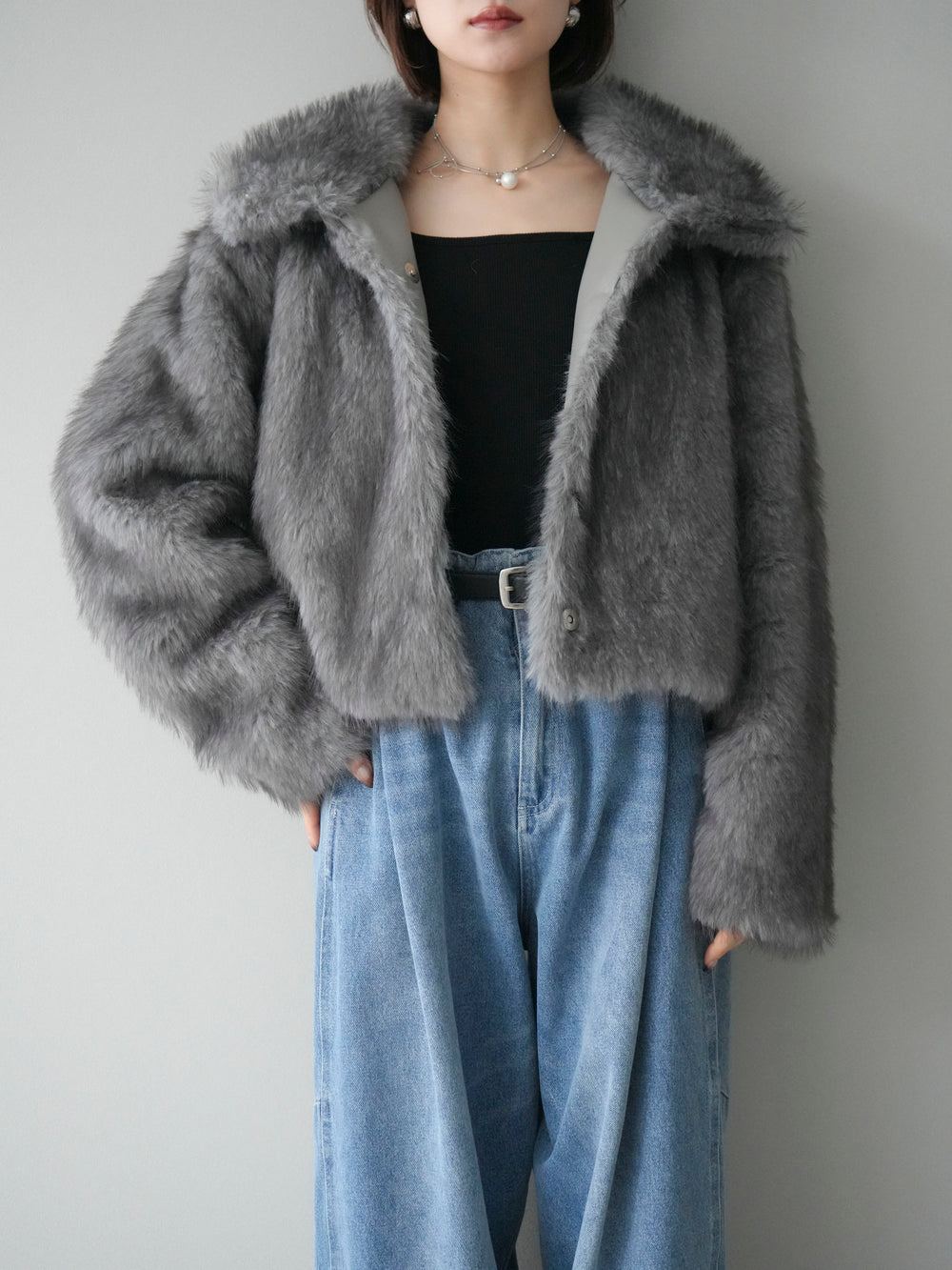 [20%オフ]フェイクファー襟付きショートブルゾン/gray