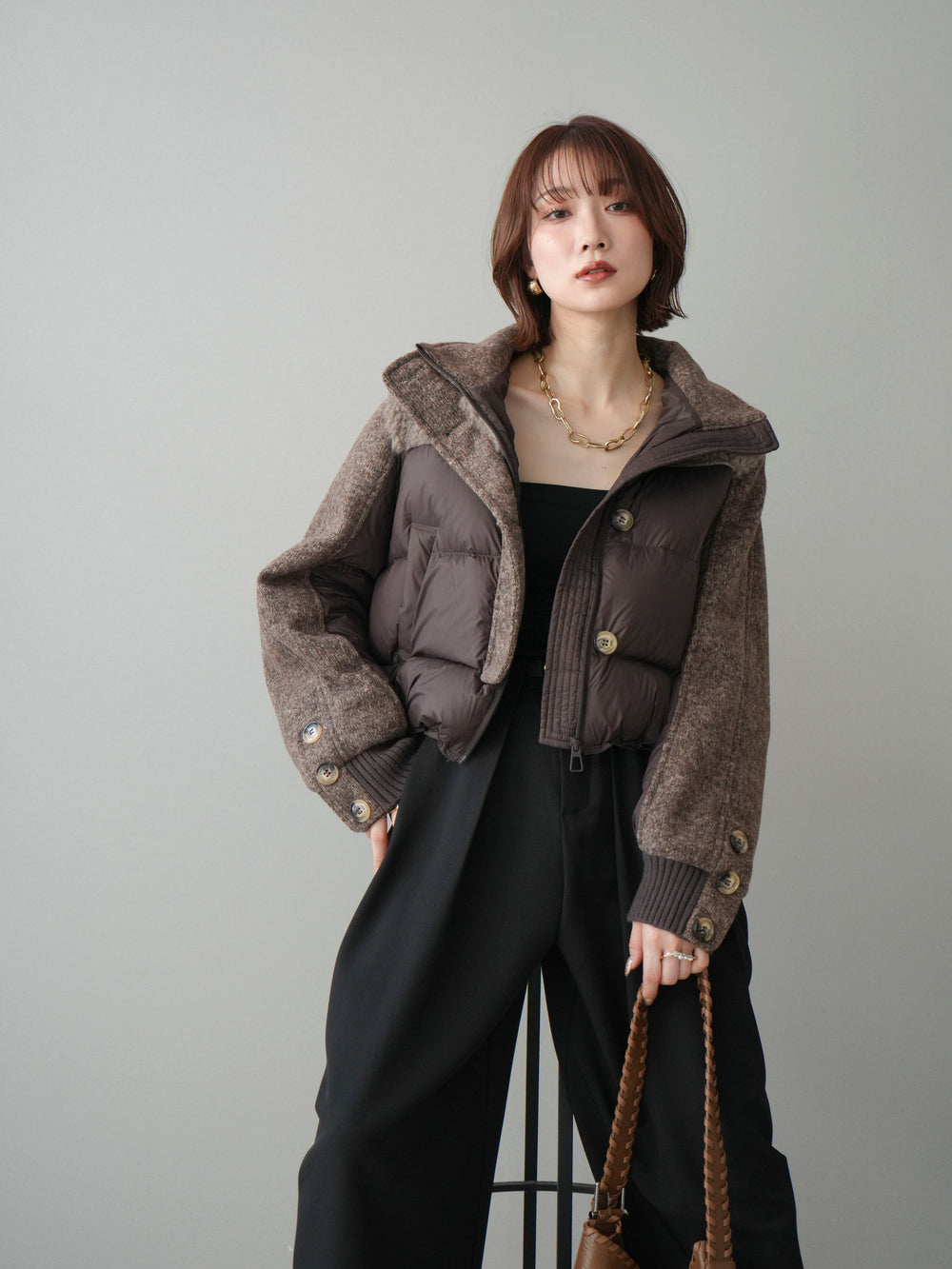 [20%オフ]MIXファースタンドネックショートジャケット/camel