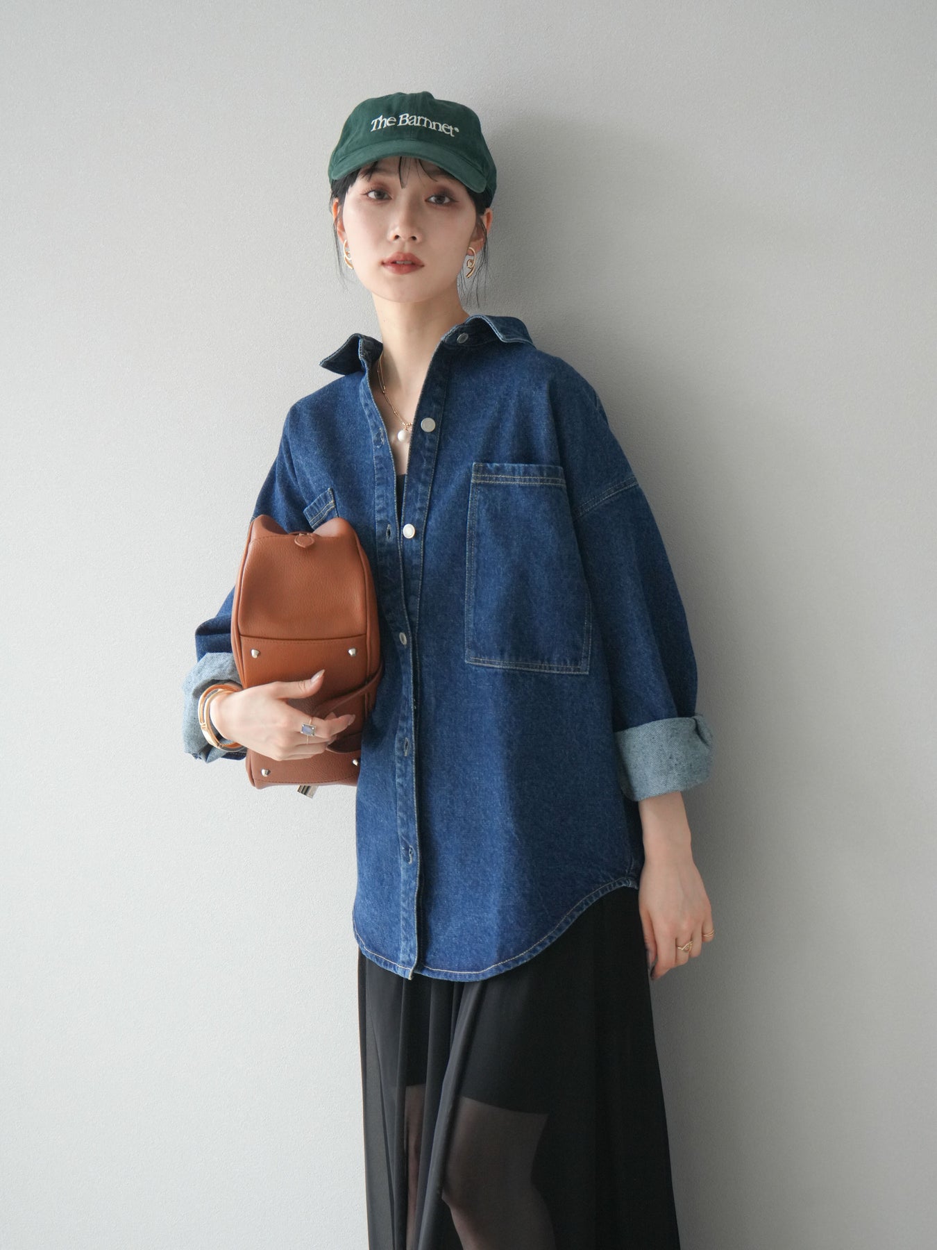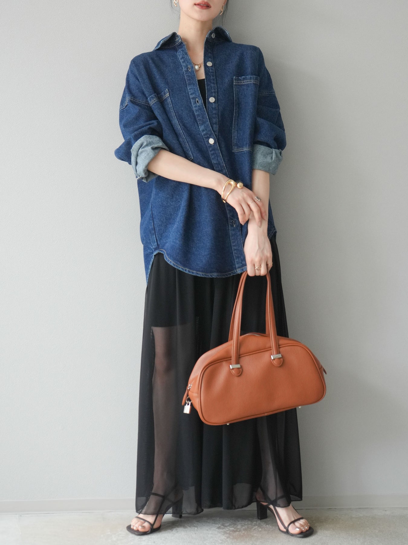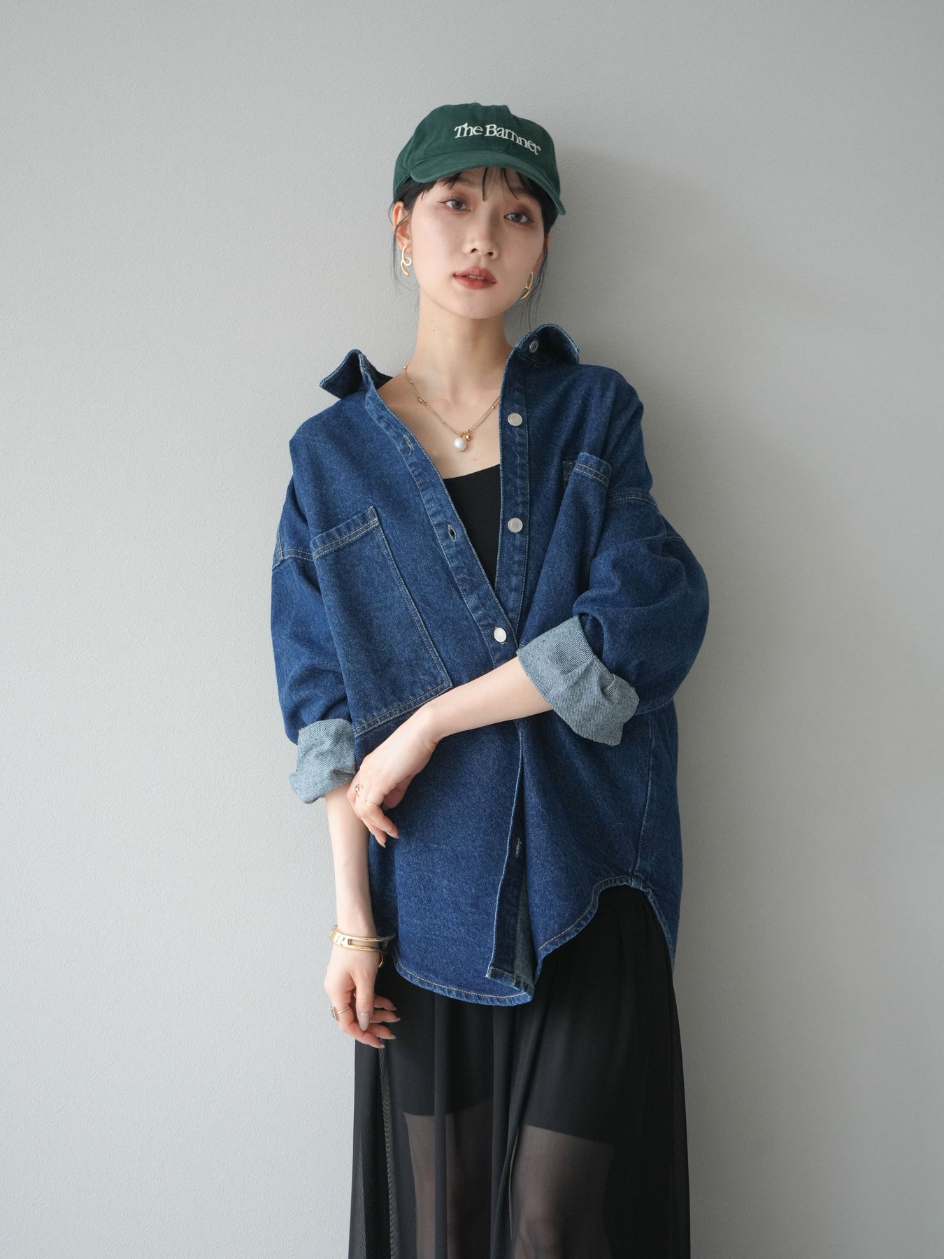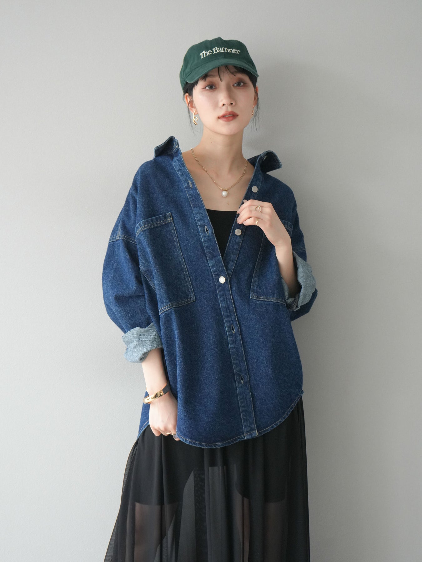 トレンドライクなゆったりシルエットが魅力のデニムシャツジャケット。程よい厚みで、シャツとしてもライトアウターとしても着回せる万能アイテムです。カジュアルな中にも洗練された雰囲気を演出できる一枚で、季節の変わり目に大活躍。大きめポケットがアクセントになり、羽織るだけでこなれたスタイルが完成します。 ※ボトムス、キャミソール(インナー)以外の商品は一律でインナーは付属していません