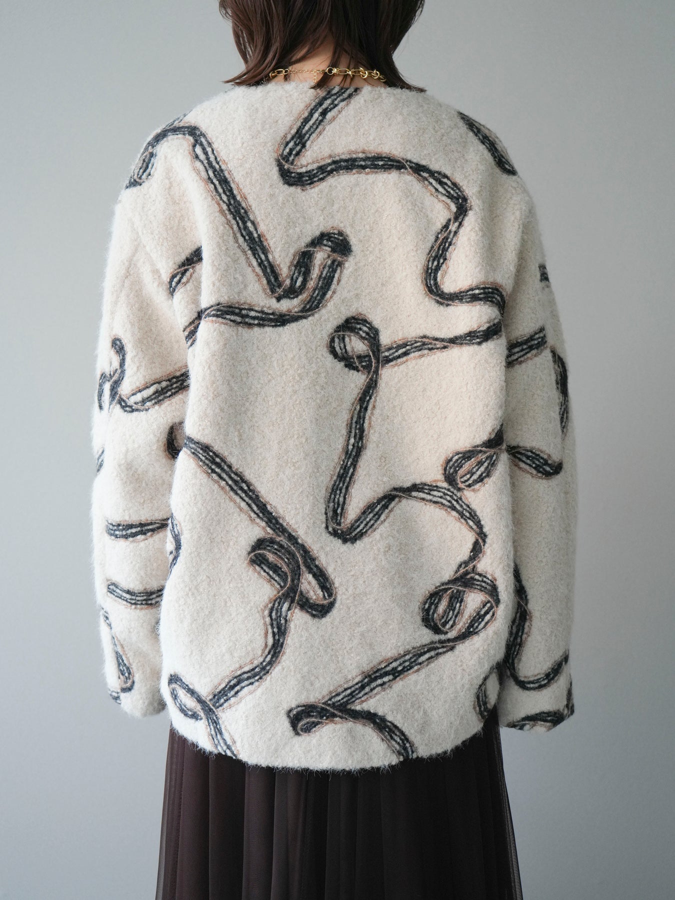[予約]ニュアンス刺繍ブークレニットジャケット/white