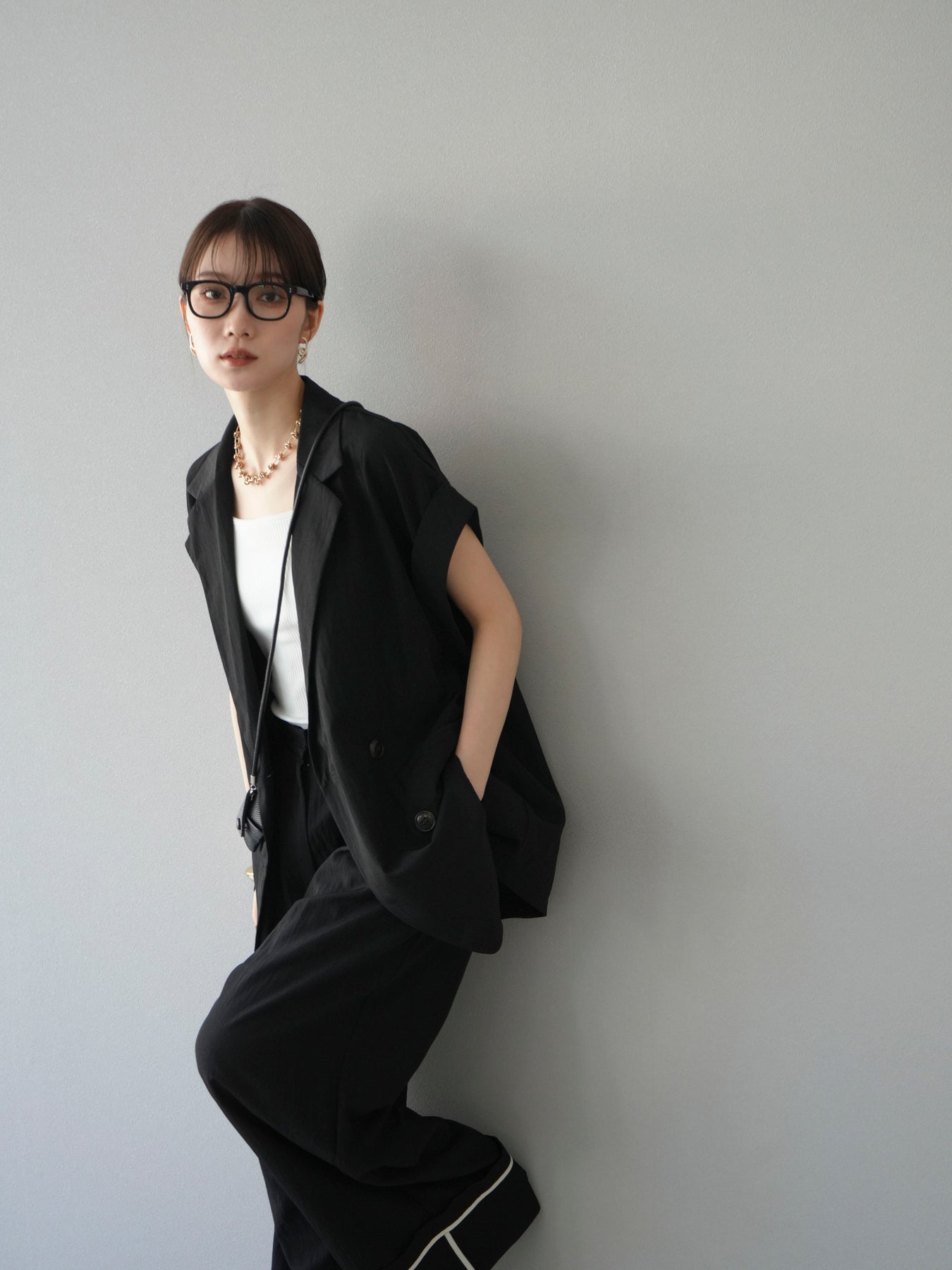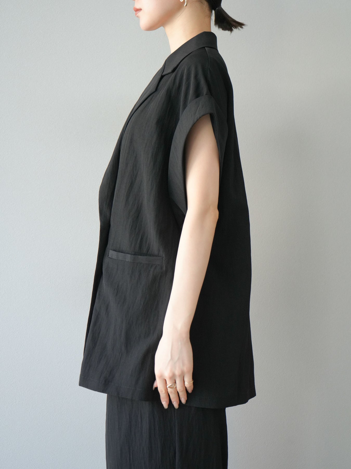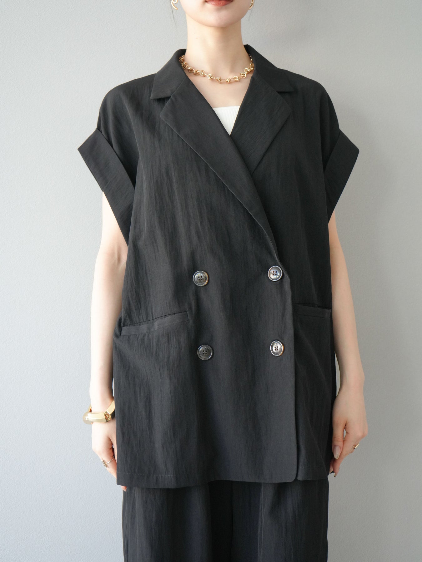 [予約]リネンライクノースリーブダブルジレ/ブラック