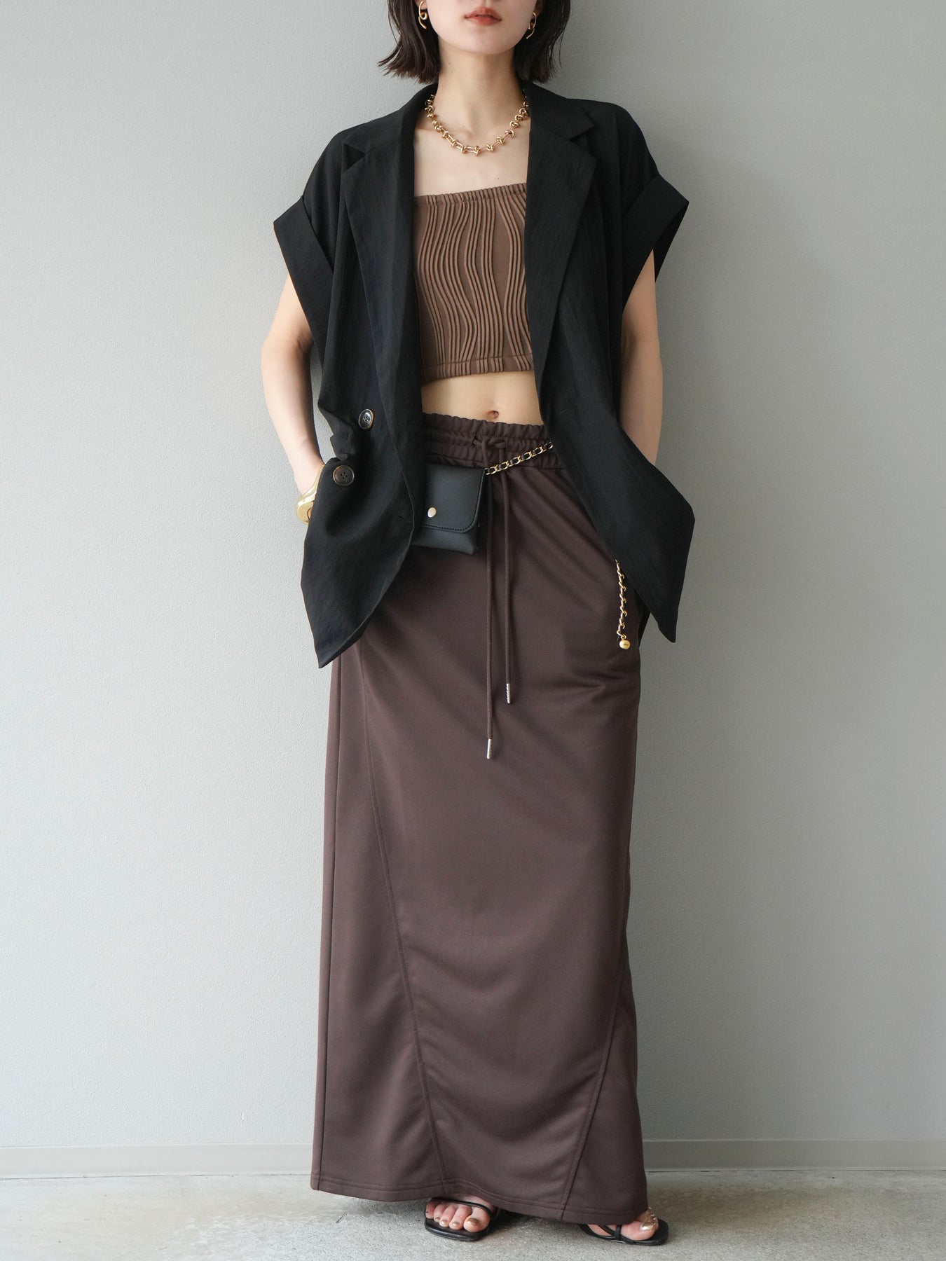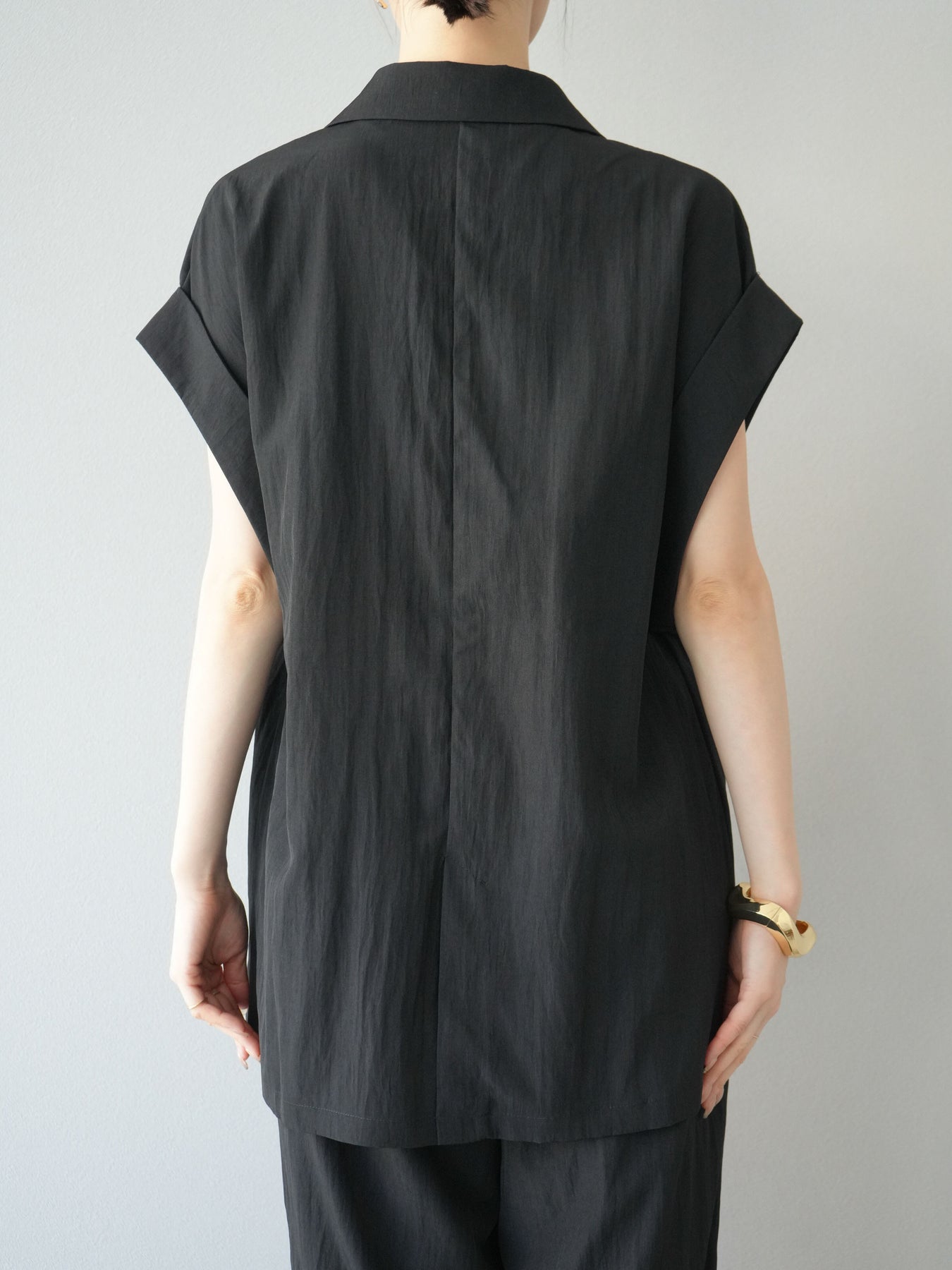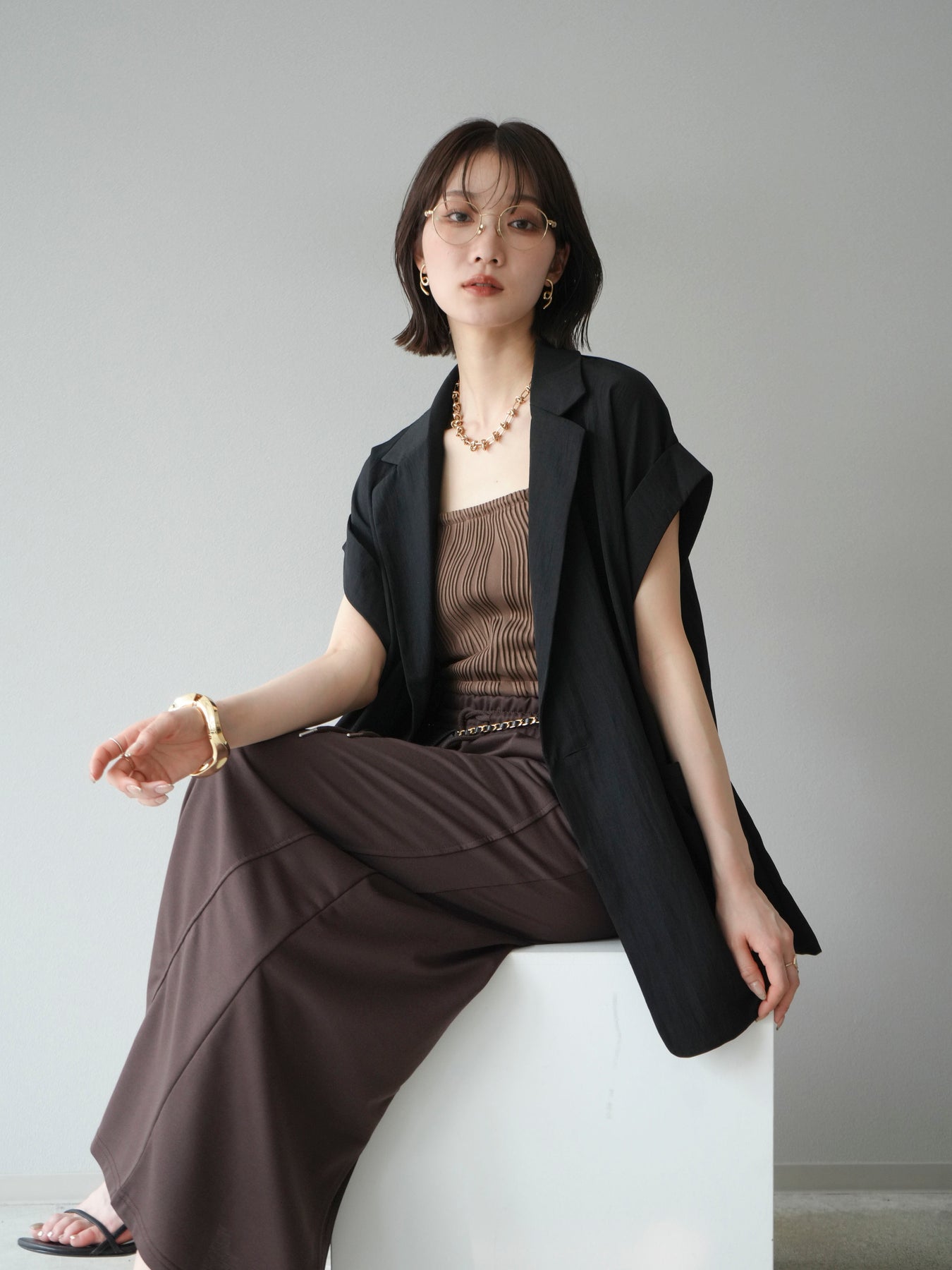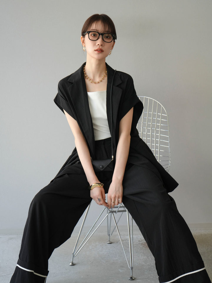 [予約]リネンライクノースリーブダブルジレ/ブラック