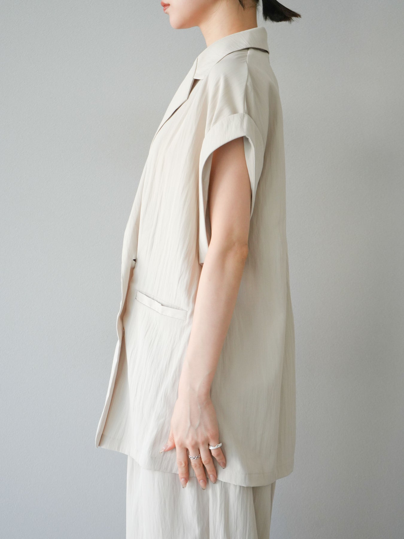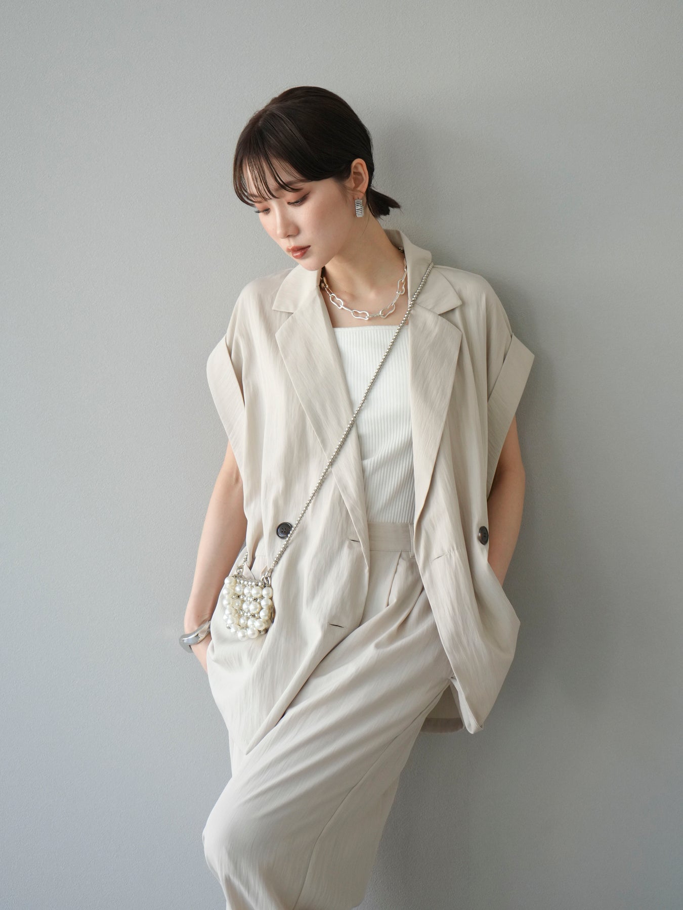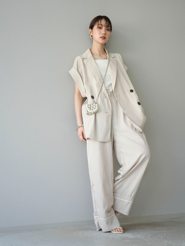 [予約]リネンライクノースリーブダブルジレ/エクリュ