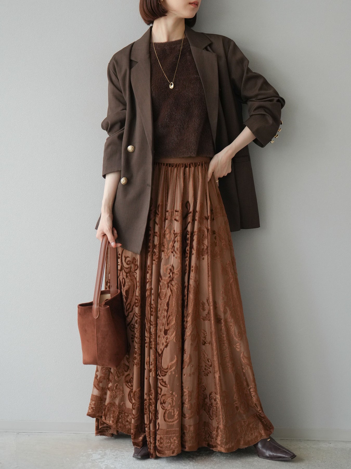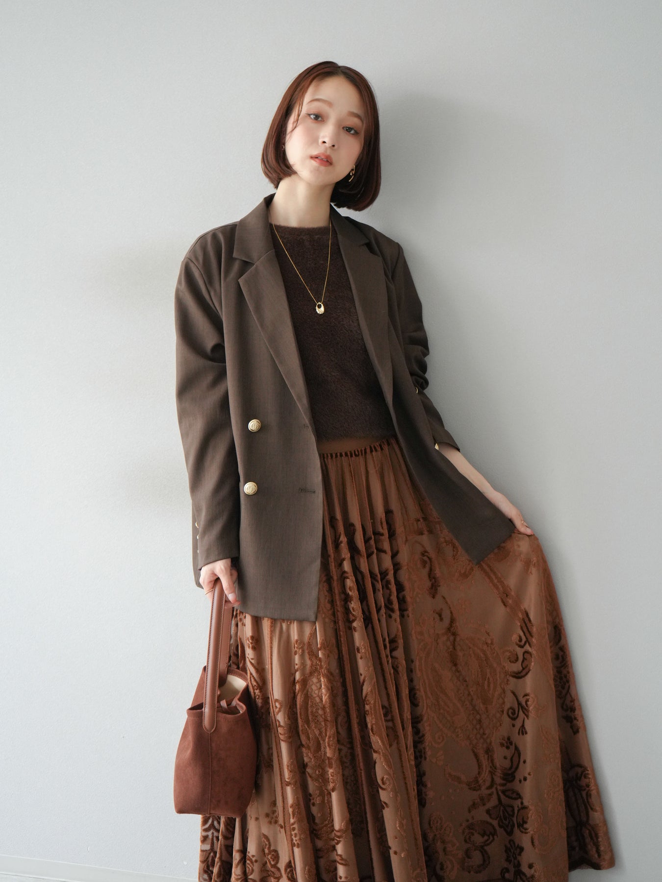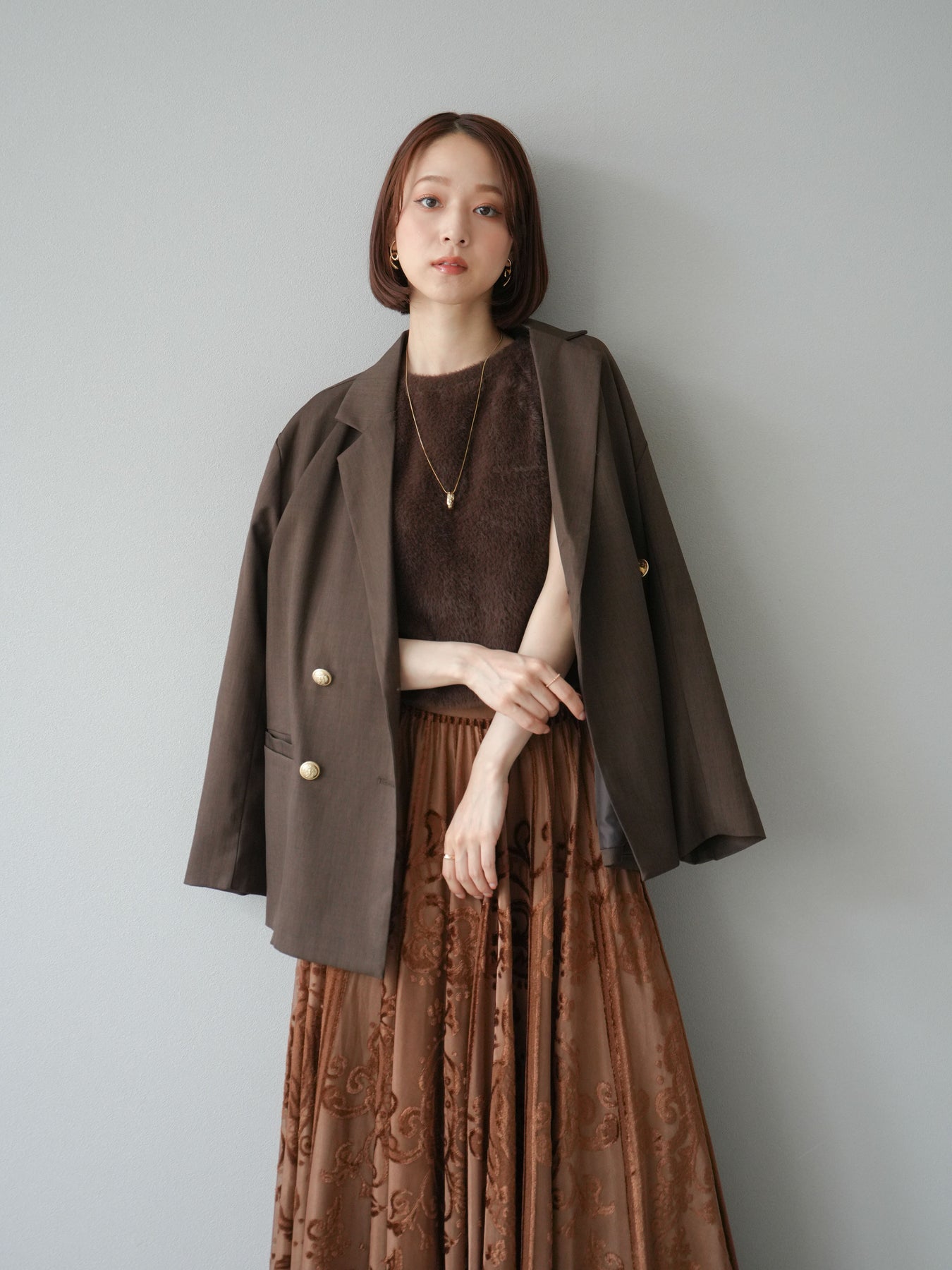 [予約]ゴールドボタンツイルダブルテーラードジャケット/ブラウン