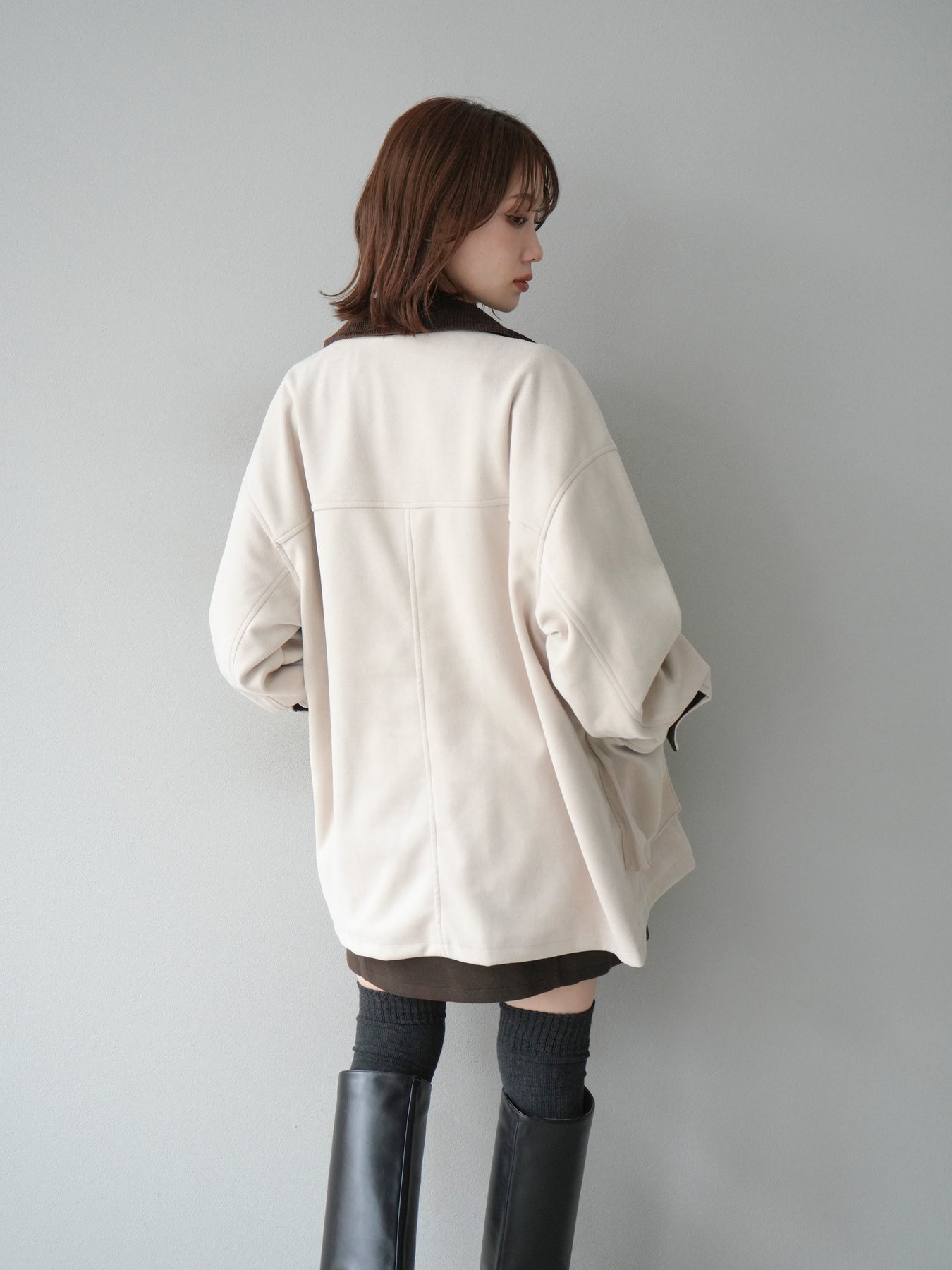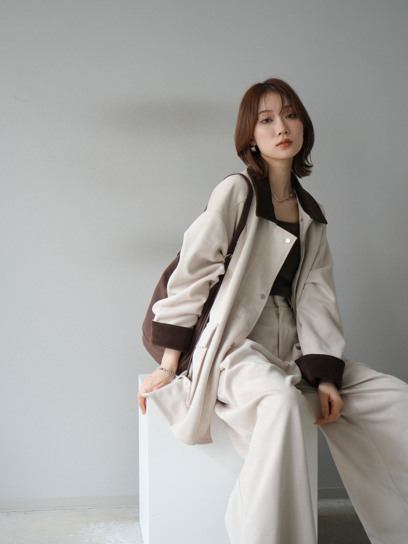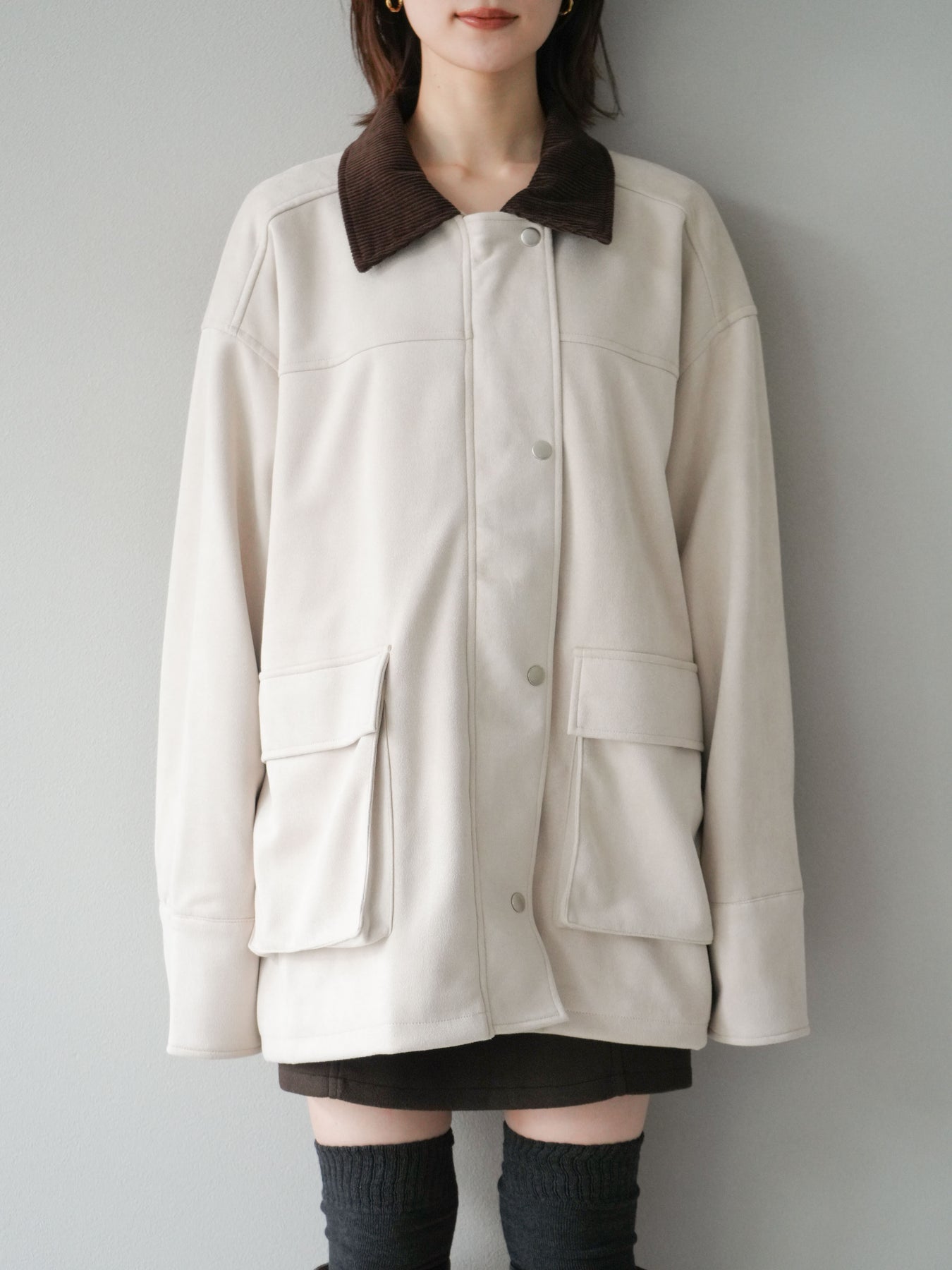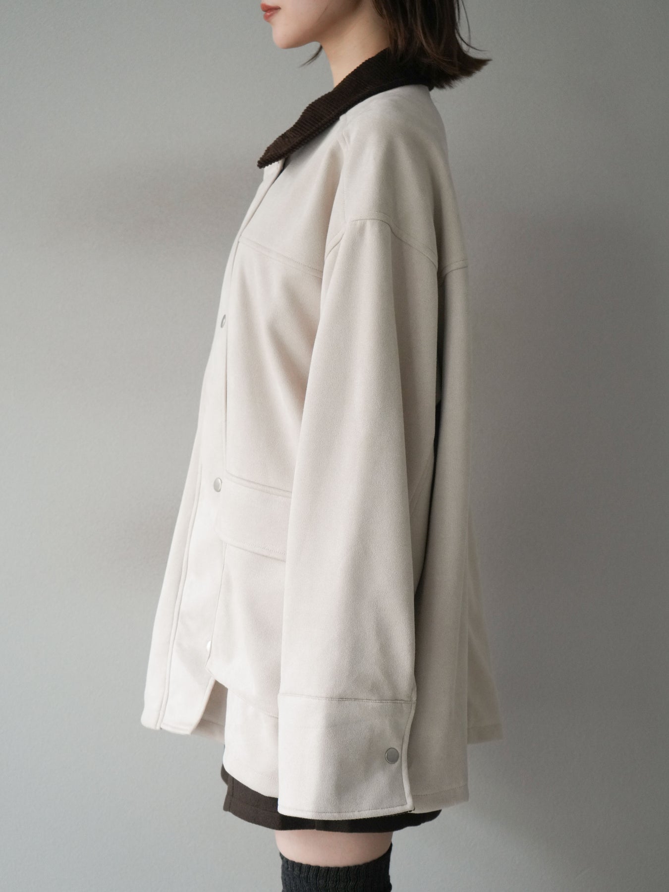 [予約]コーデュロイ襟スウェードミドルジャケット /エクリュ