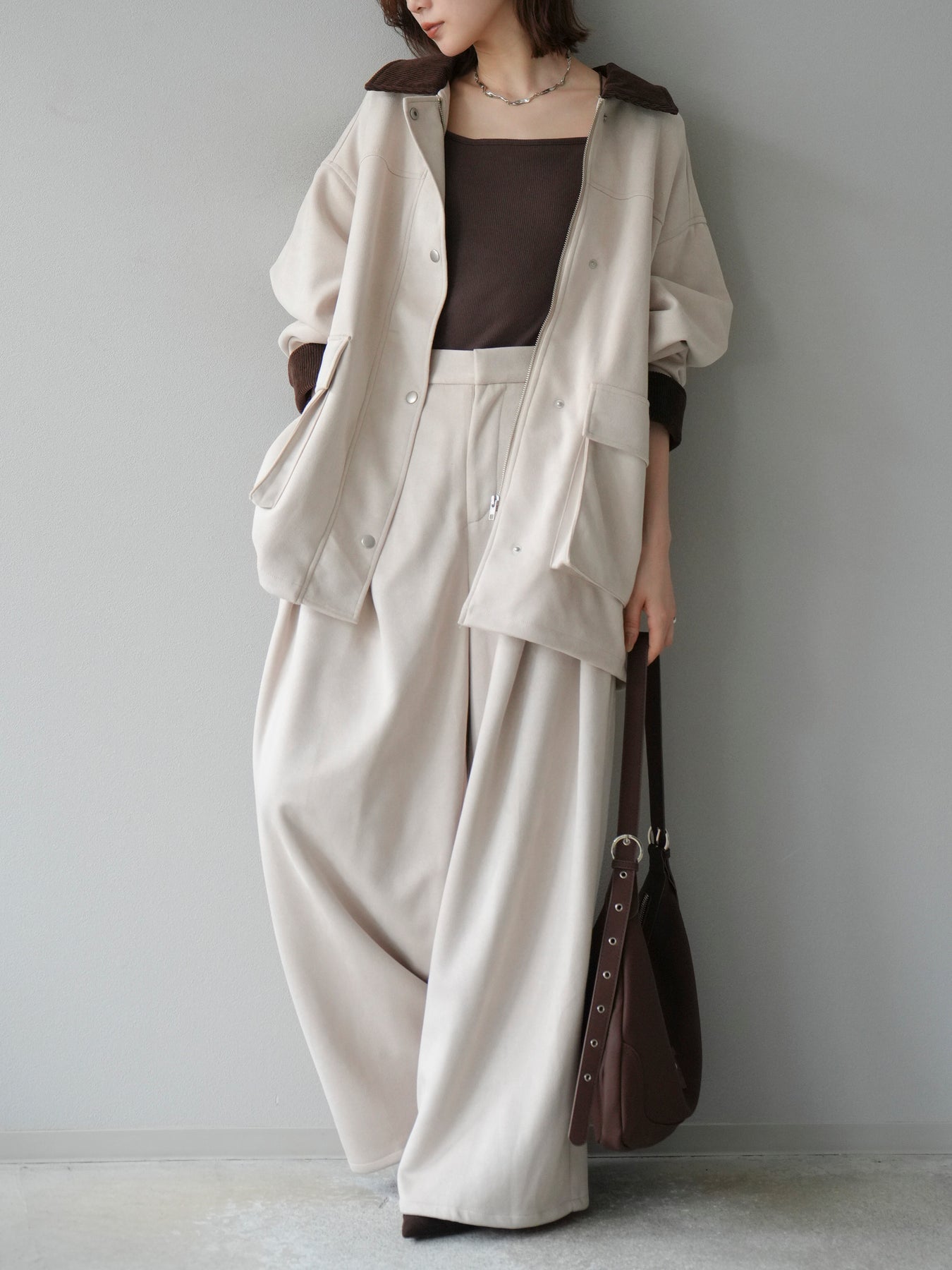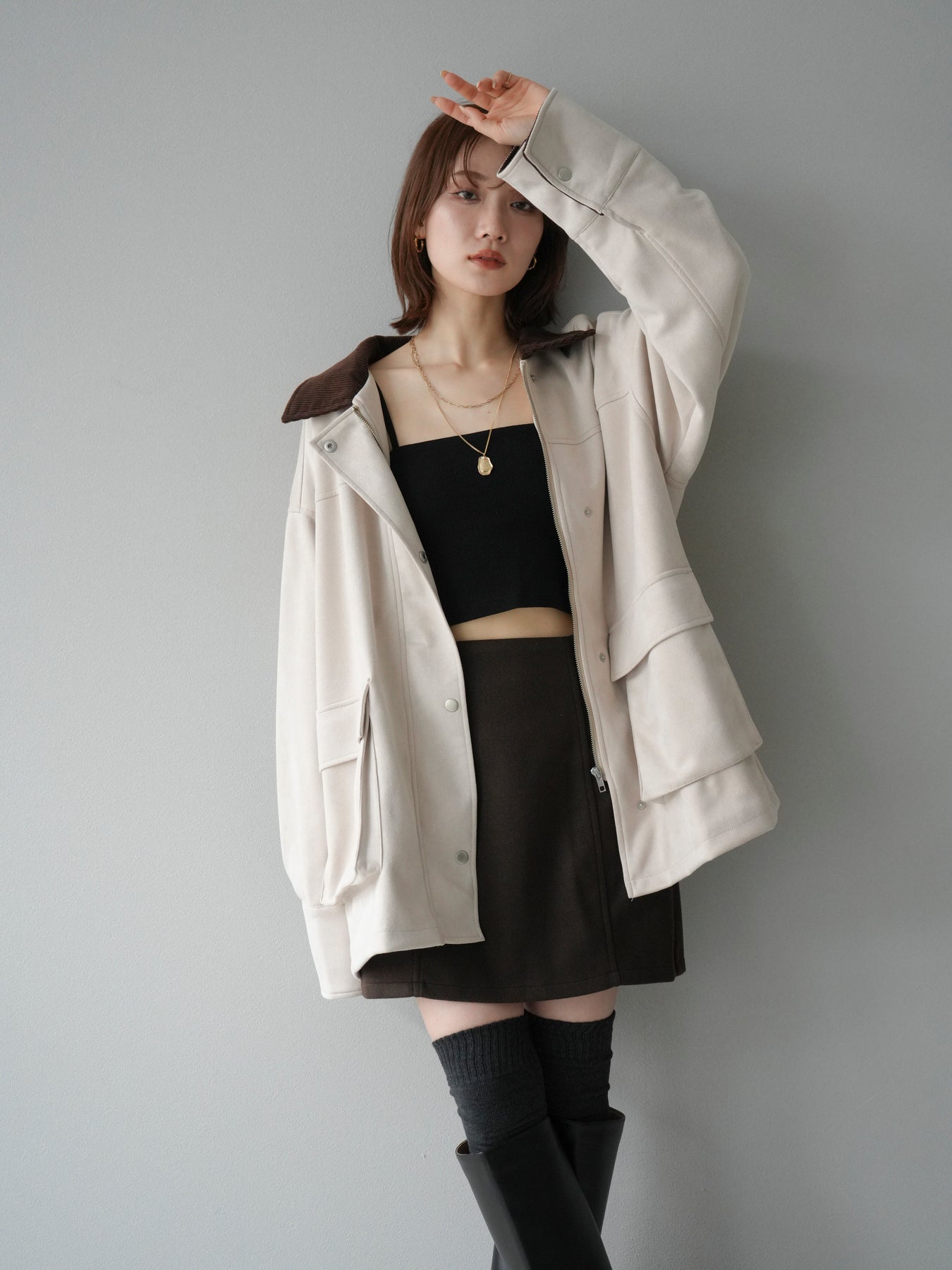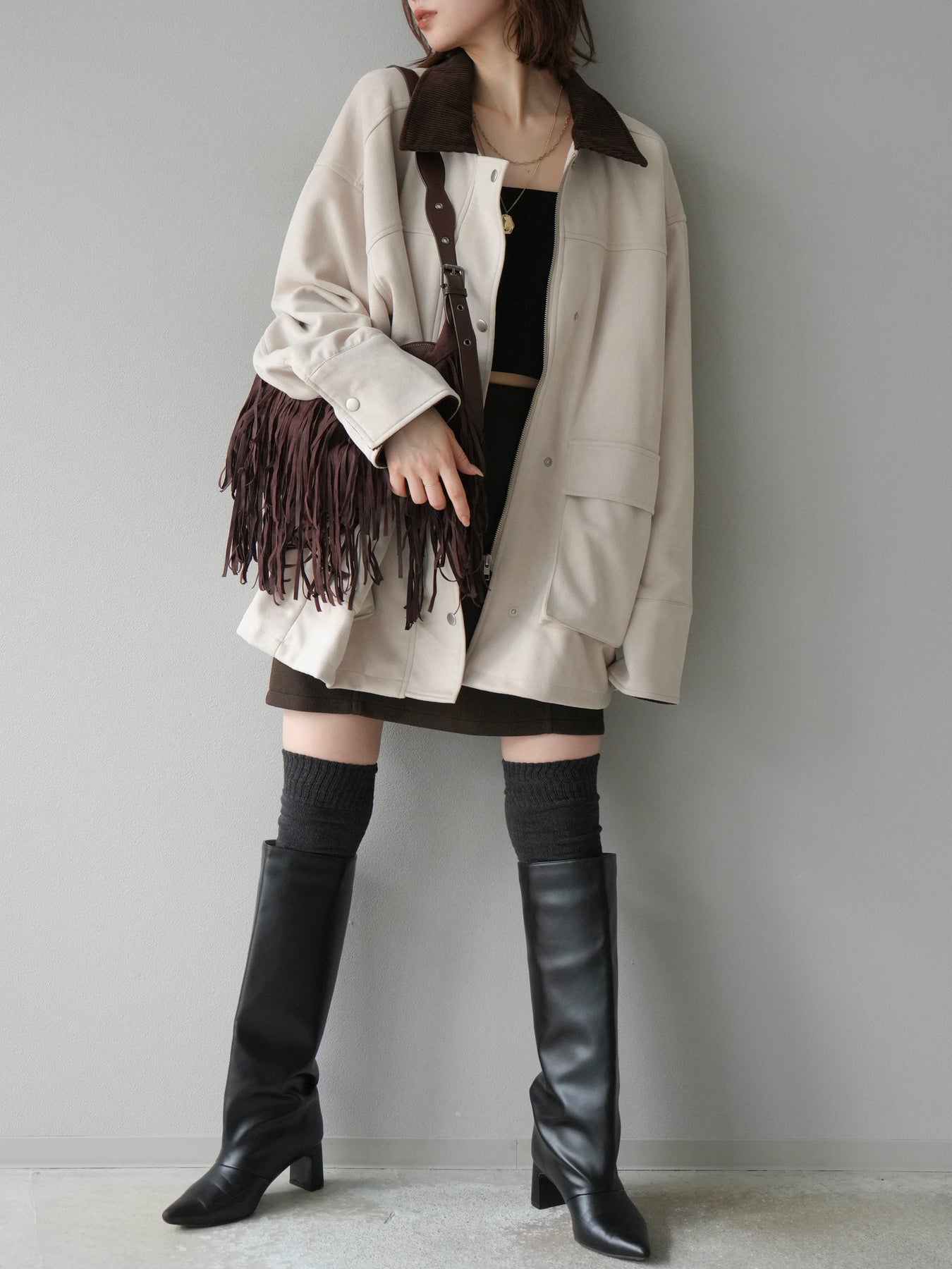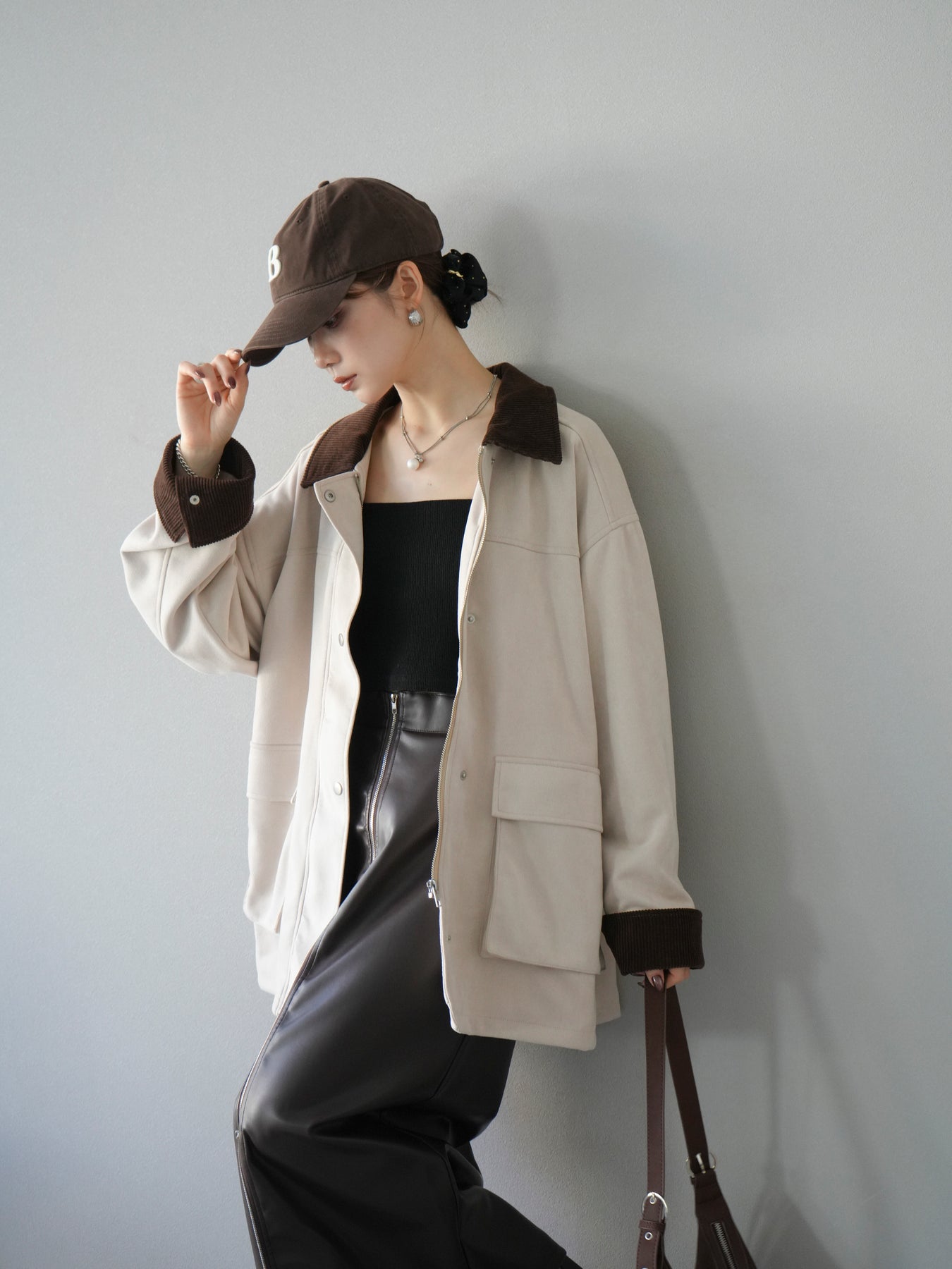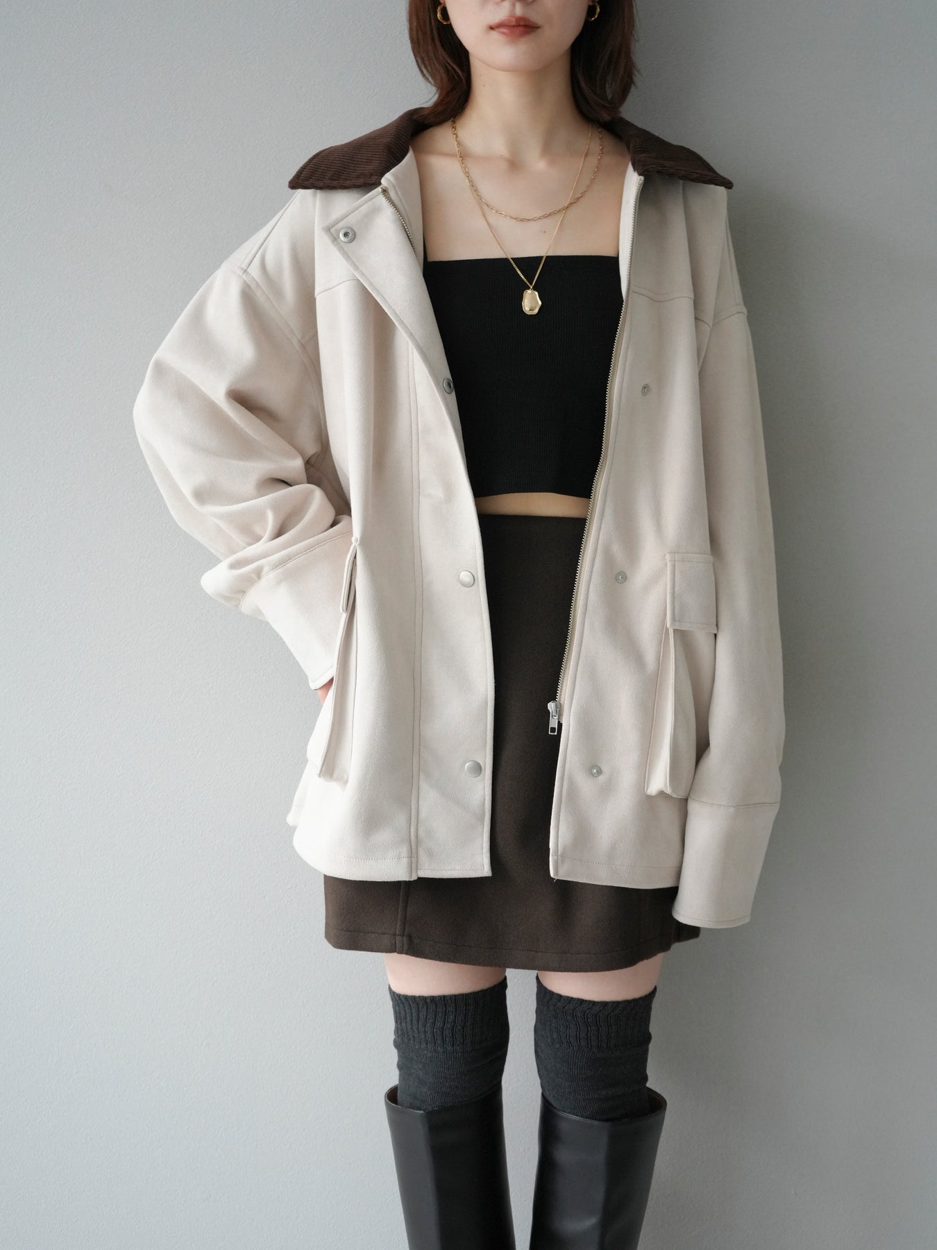 [予約]コーデュロイ襟スウェードミドルジャケット /エクリュ