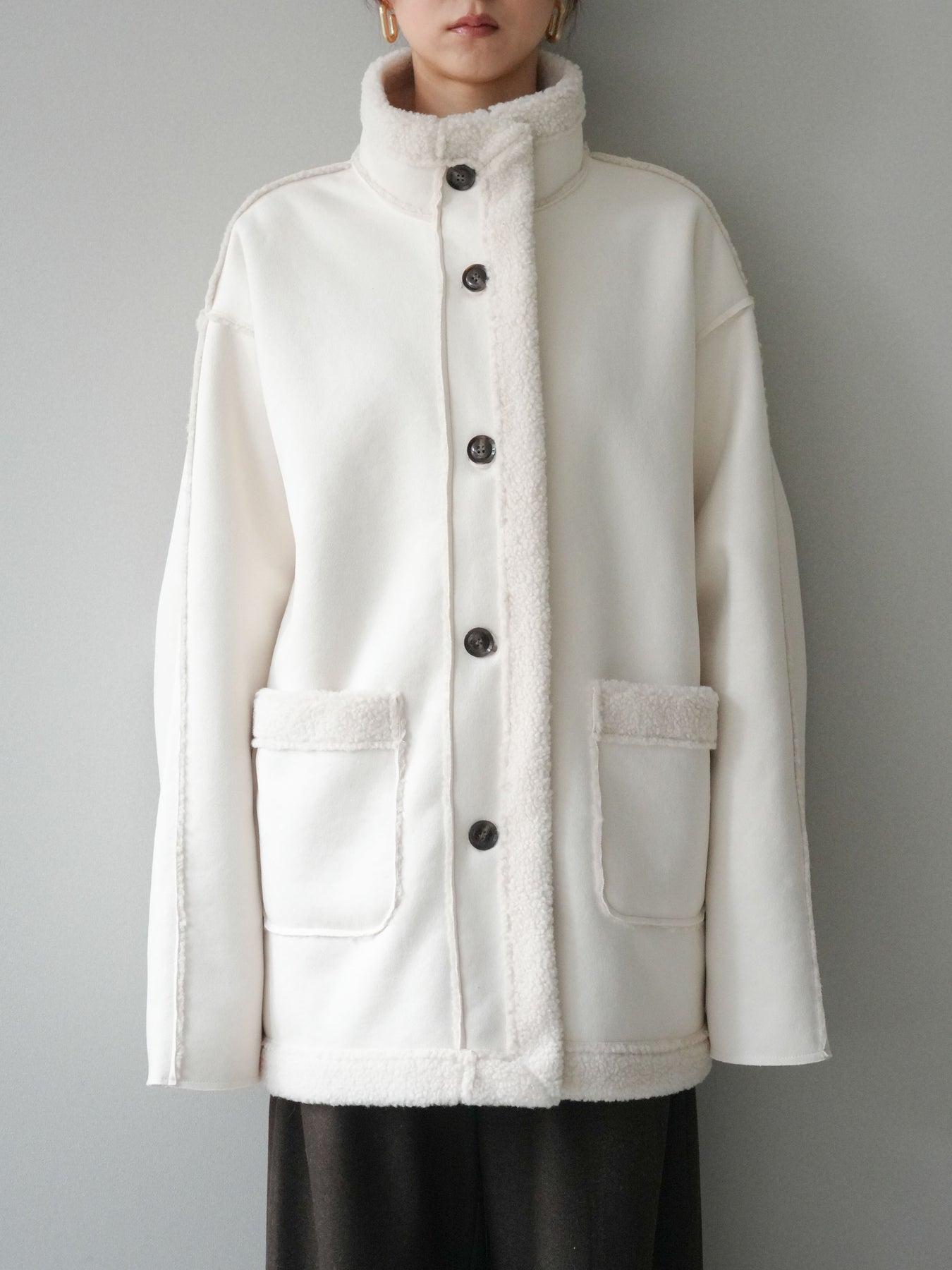 [予約]スタンドネックフェイクムートンミディアムコート/ivory