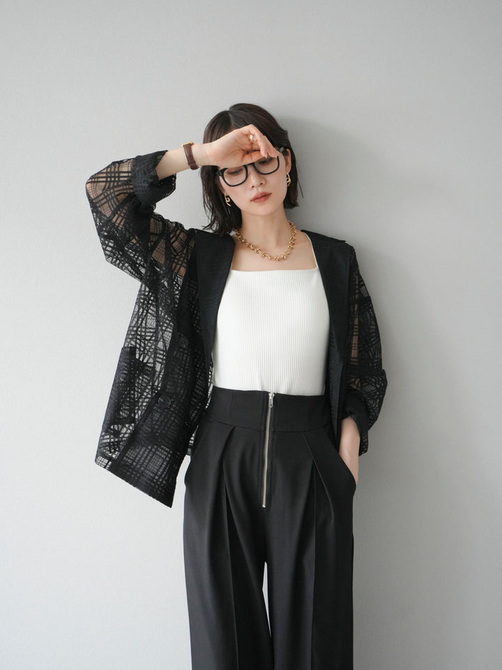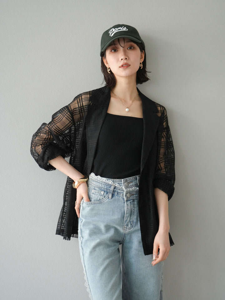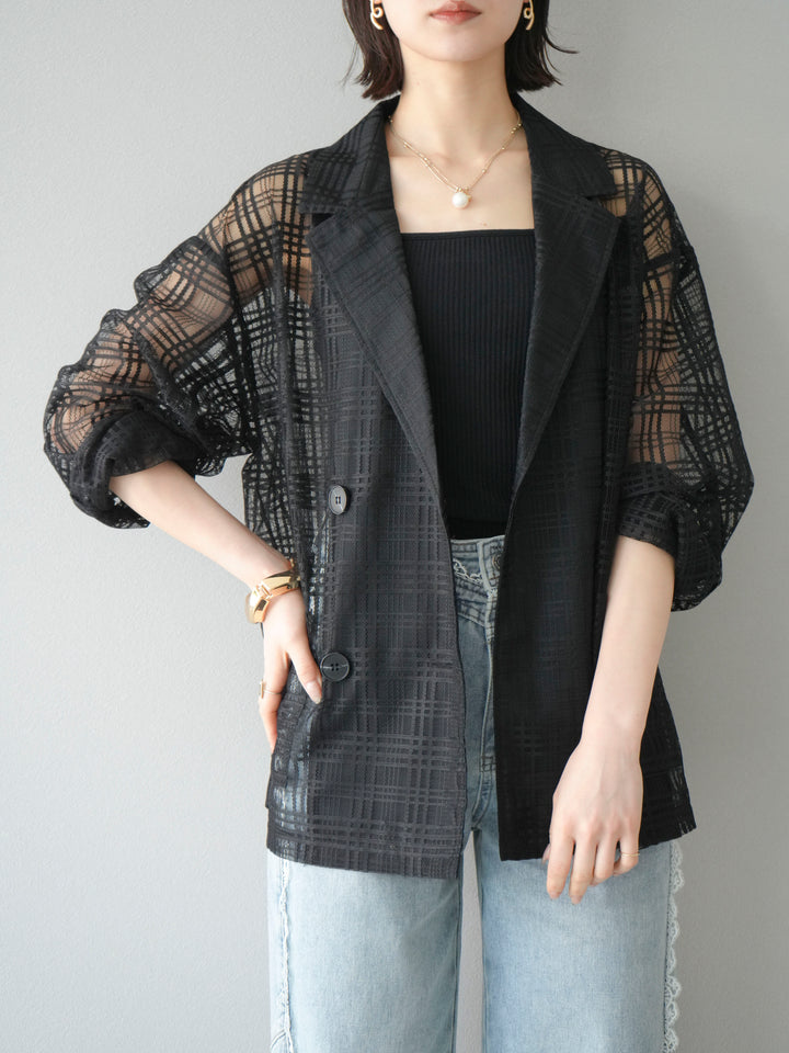 [予約]チェック柄チュールジャケット/ブラック