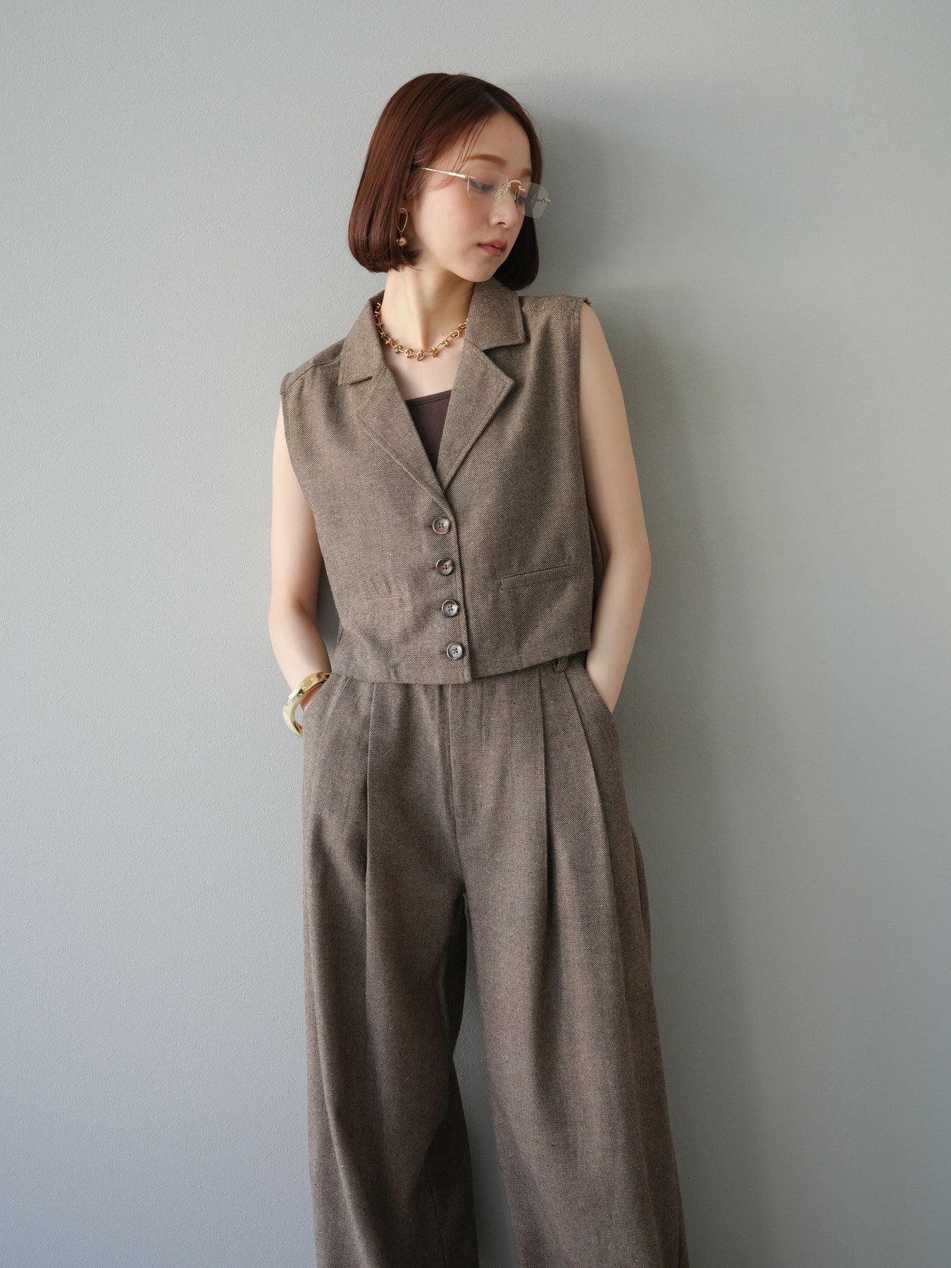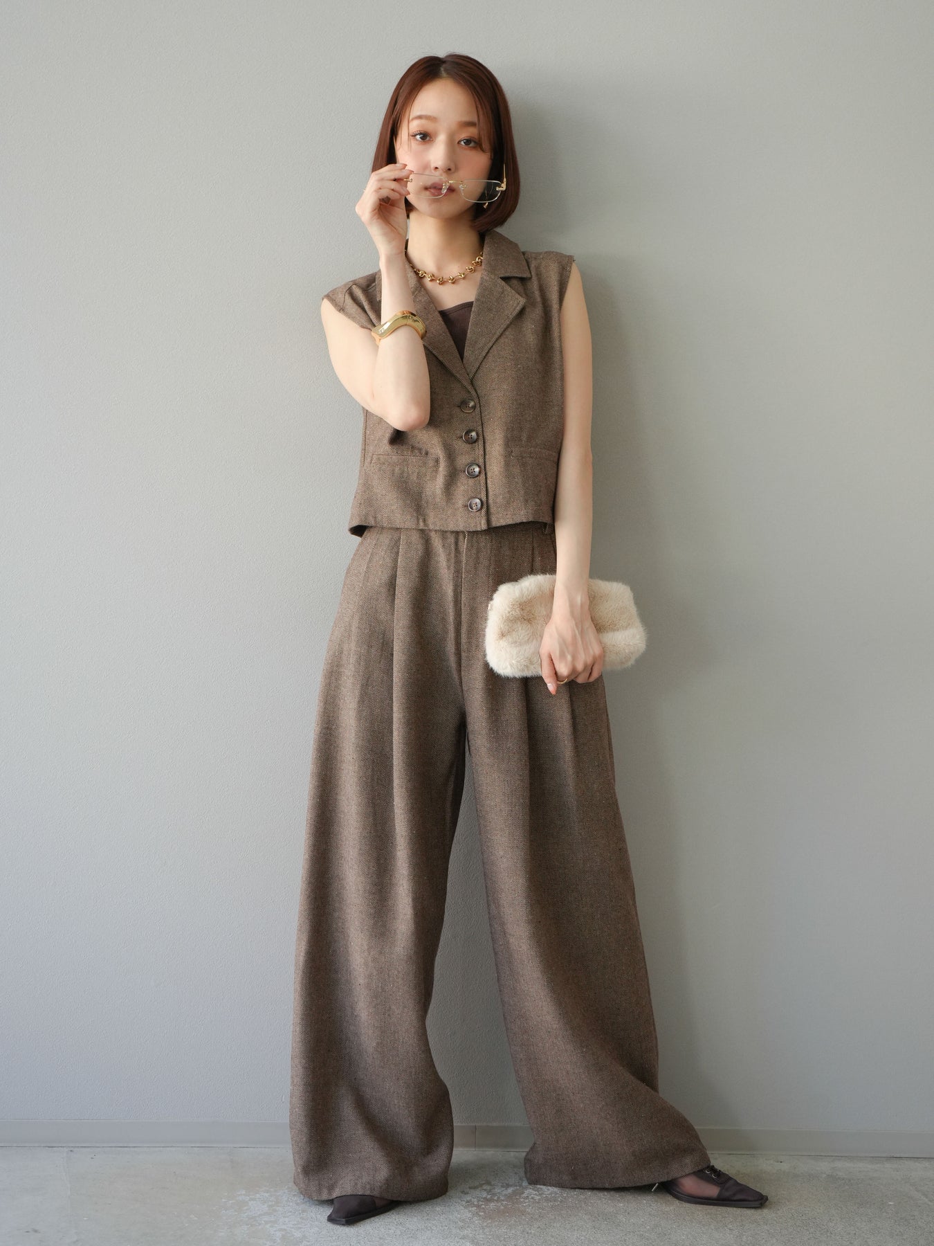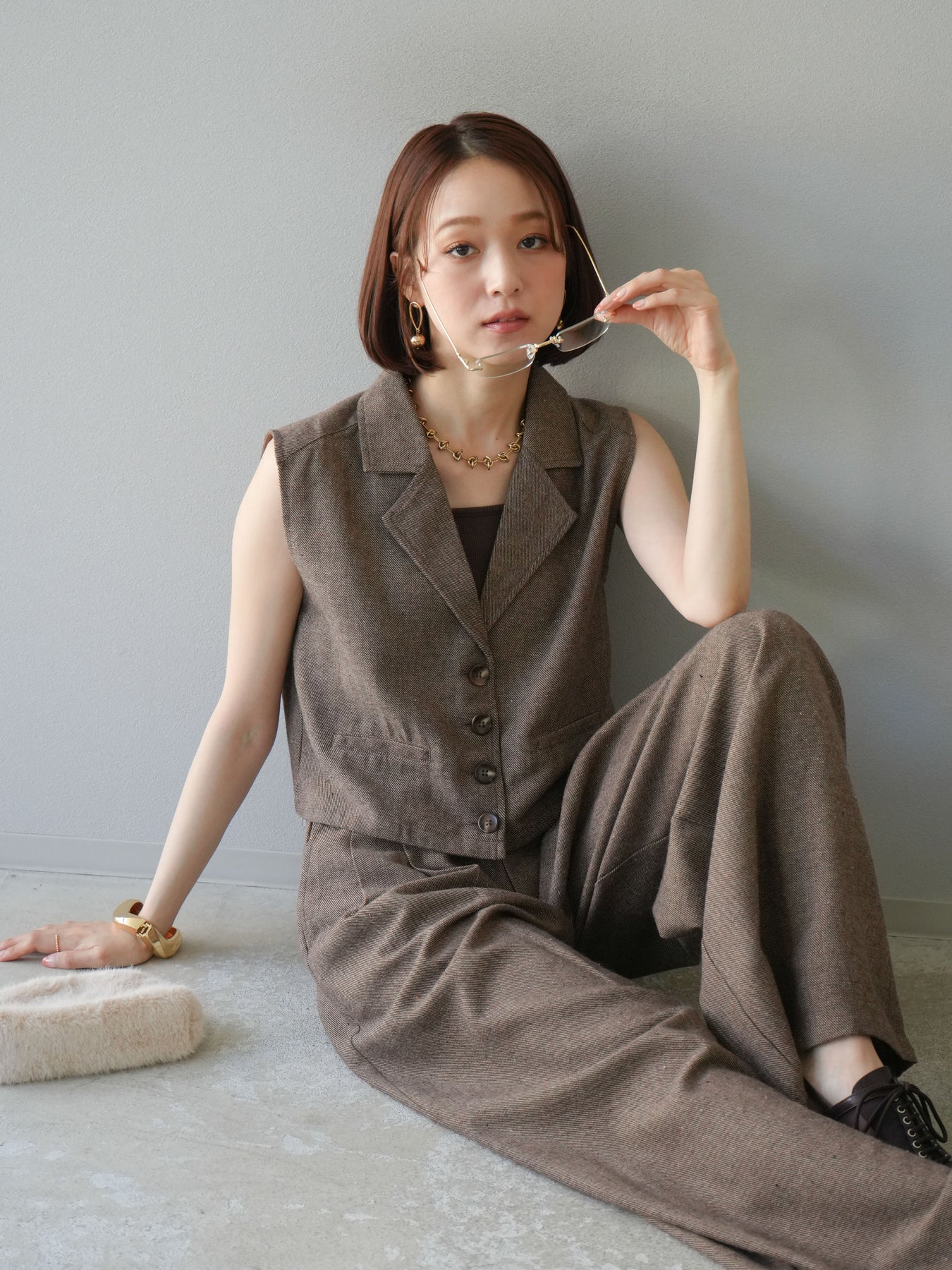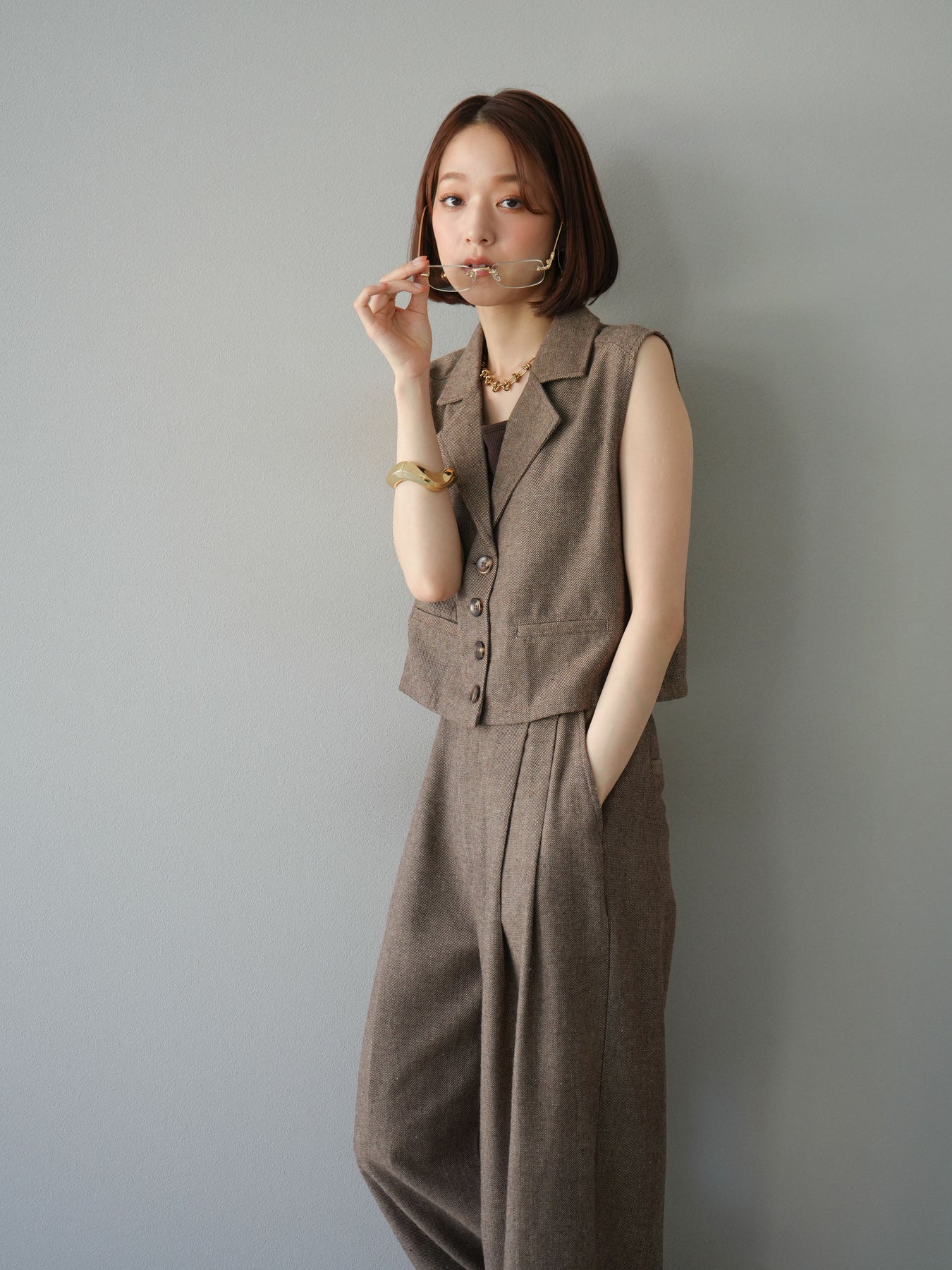[予約]ツイードタッチテーラードジレ/ブラウン